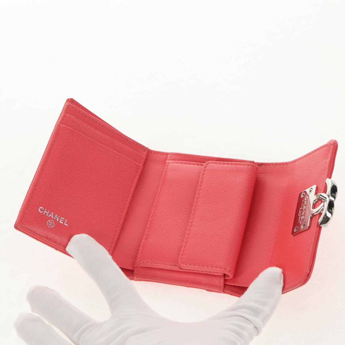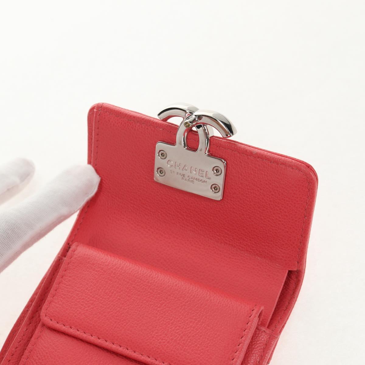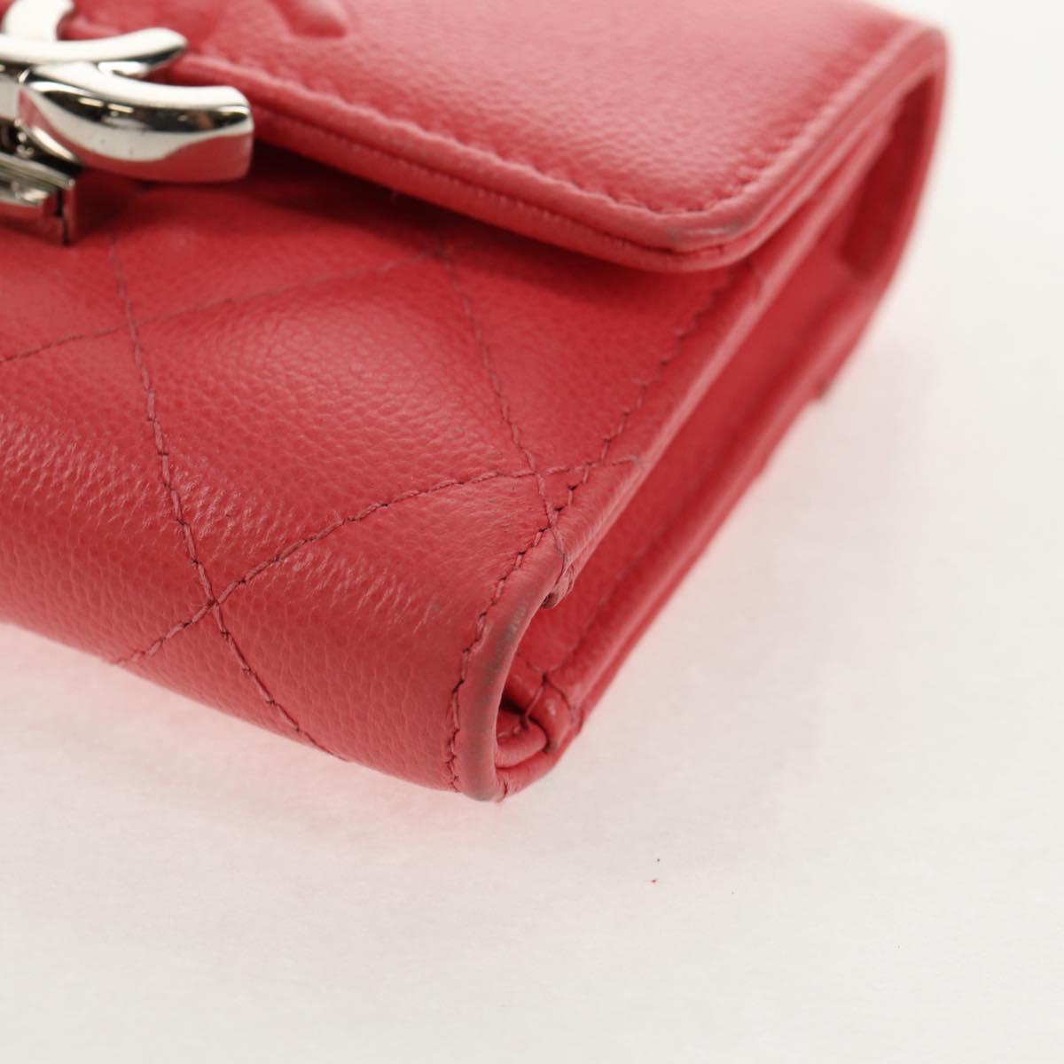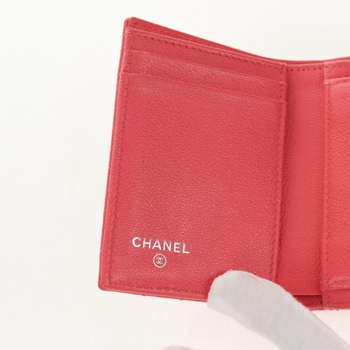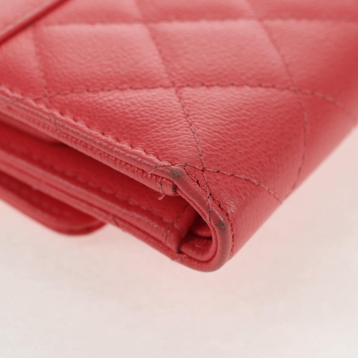 CHANEL Matelasse Compact Wallet Caviar Skin Pink CC Auth 143012M