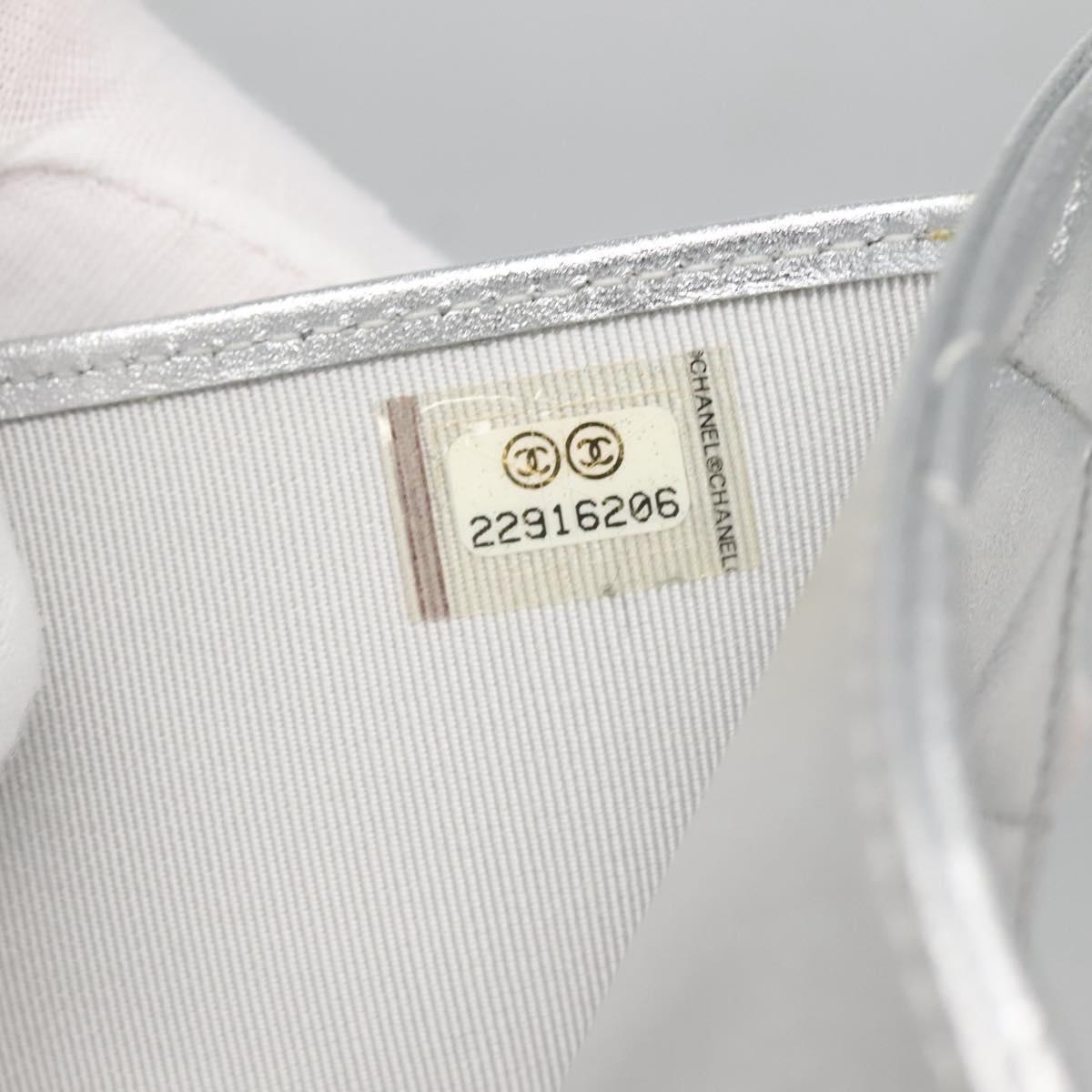 CHANEL Matelasse Compact Wallet Lamb Skin Silver CC Auth 142378M