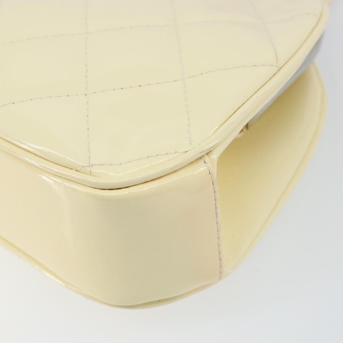 CHANEL Matelasse Gamaguchi Hand Bag Enamel White Silver CC Auth 128927
