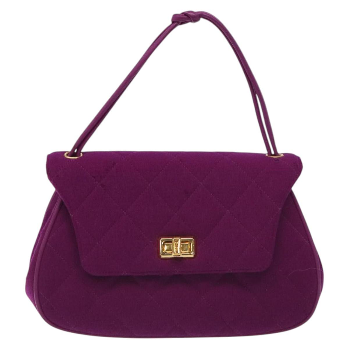 CHANEL Matelasse Hand Bag cotton Purple Gold CC Auth 131194
