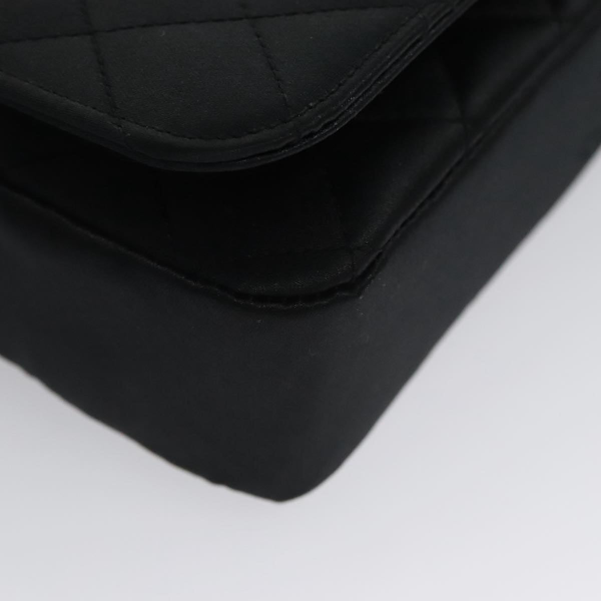 CHANEL Matelasse Sequin Flower Shoulder Bag Satin Black CC Auth 99855V