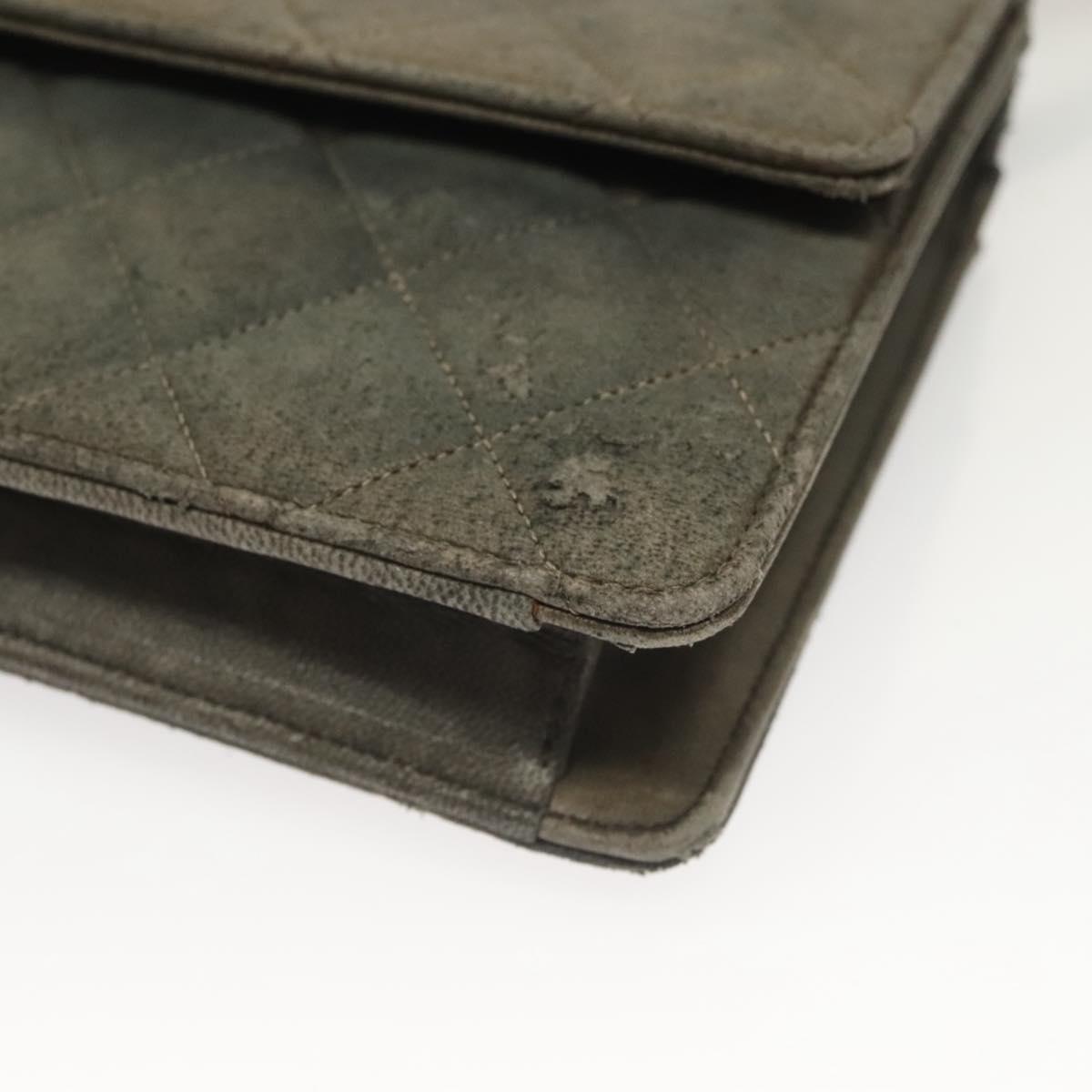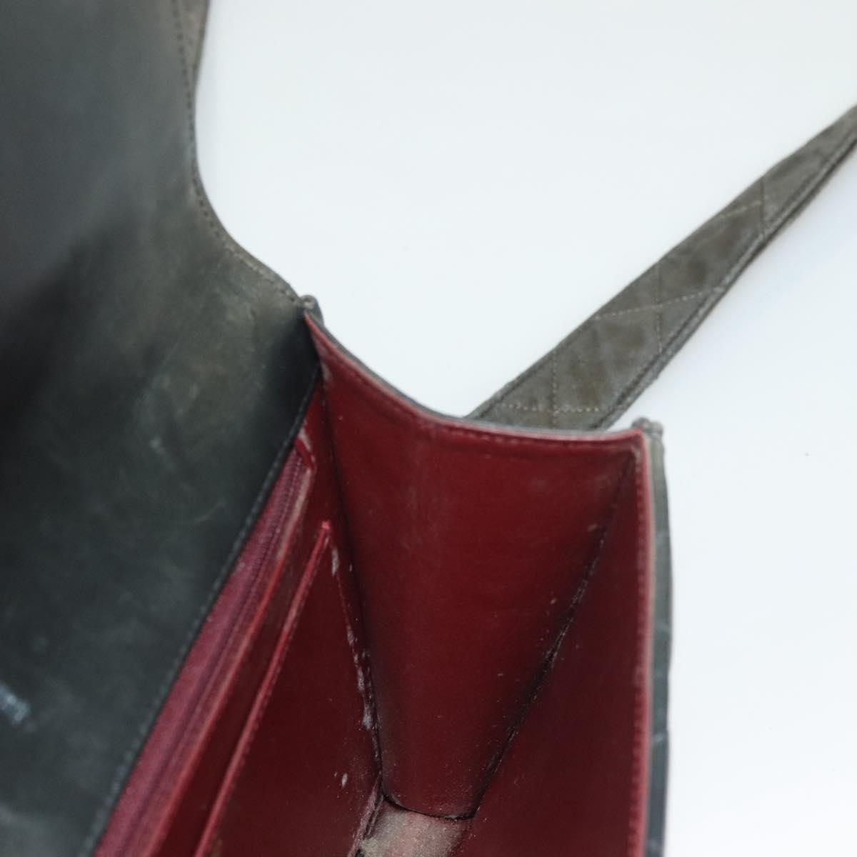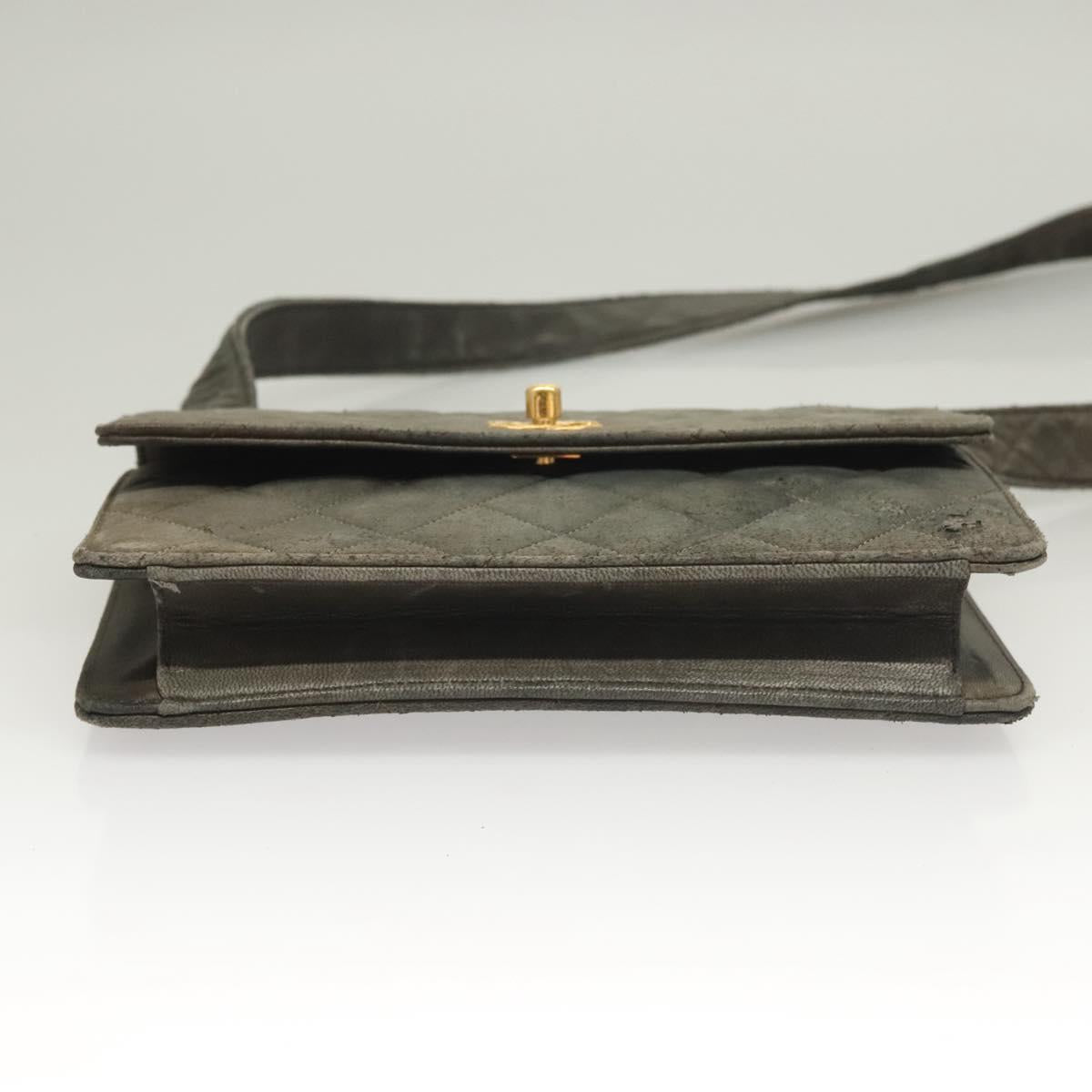 CHANEL Matelasse Shoulder Bag Lamb Skin Gray Gold CC Auth 130947