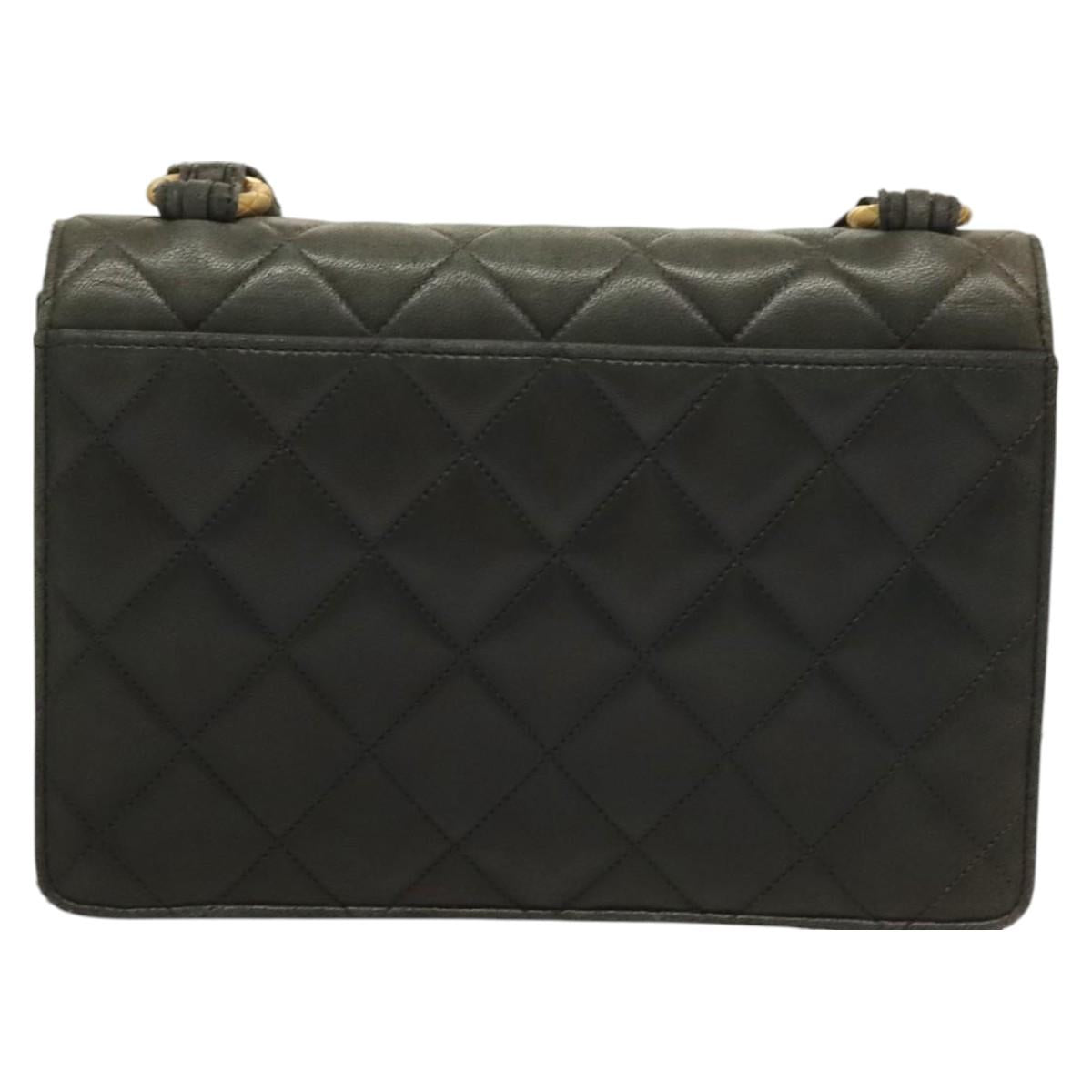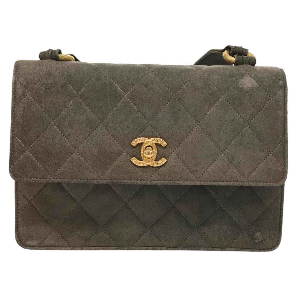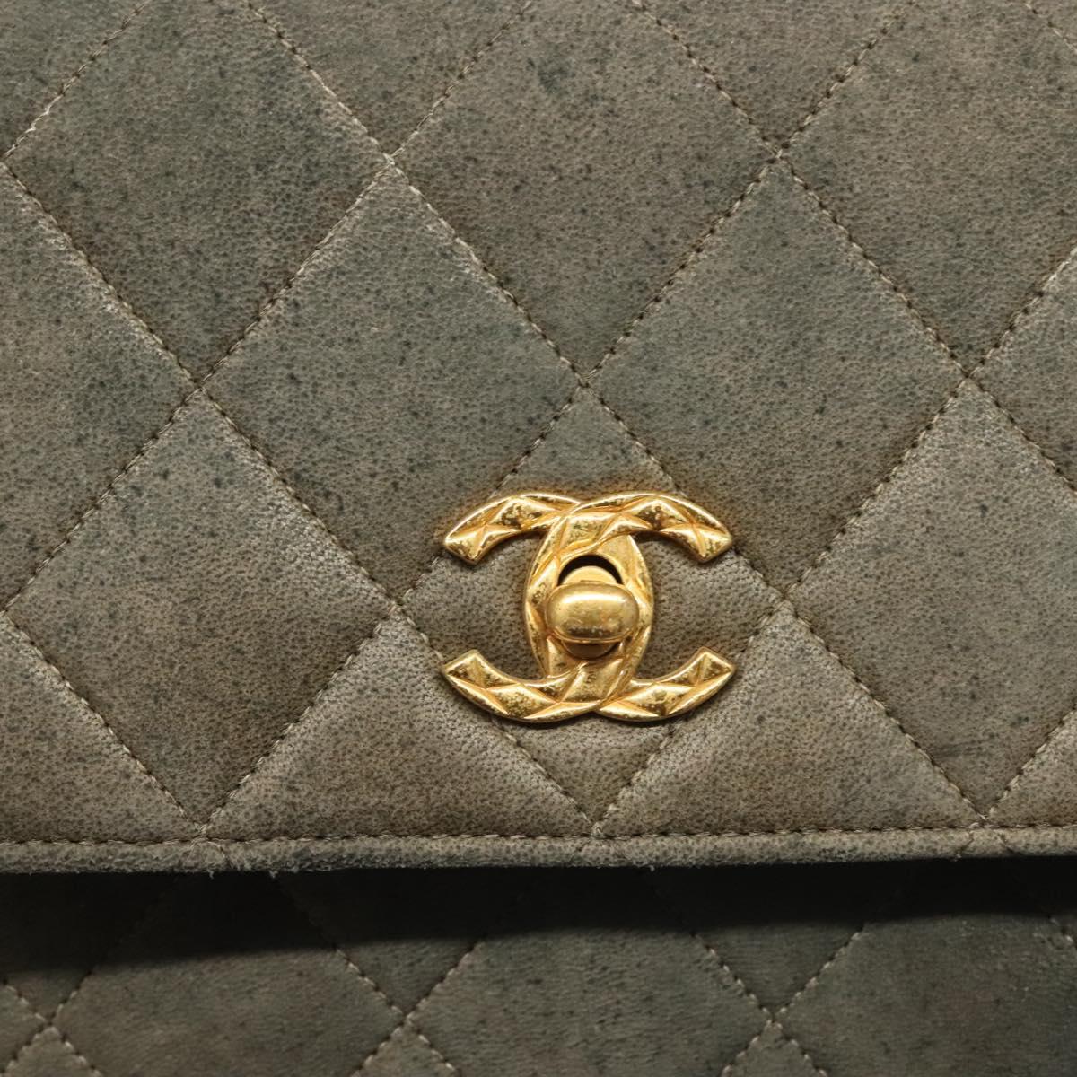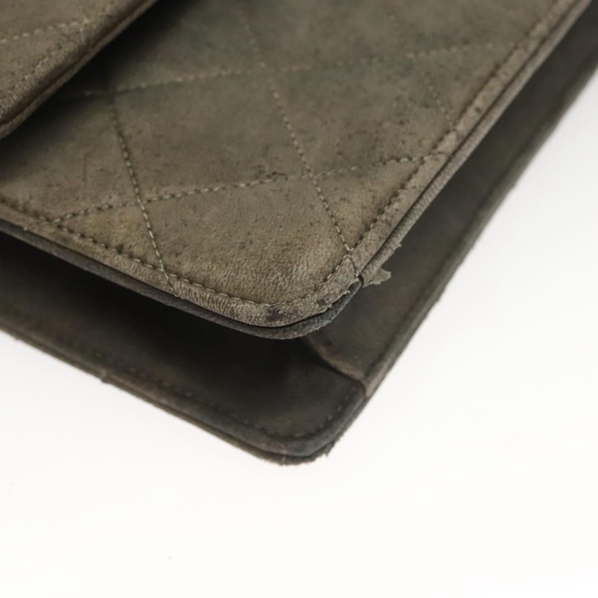 CHANEL Matelasse Shoulder Bag Lamb Skin Gray Gold CC Auth 130947