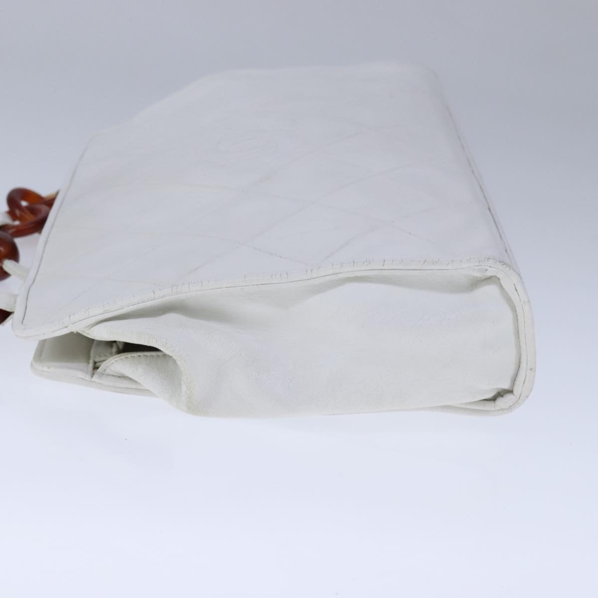 CHANEL Matelasse Shoulder Bag Leather White CC Auth 106385