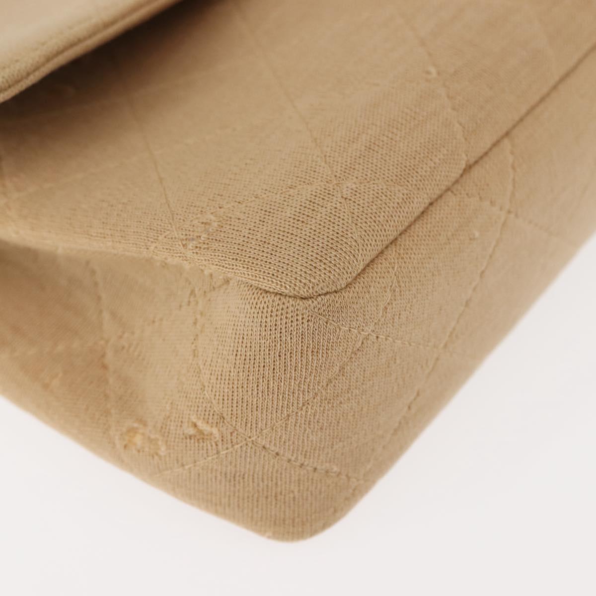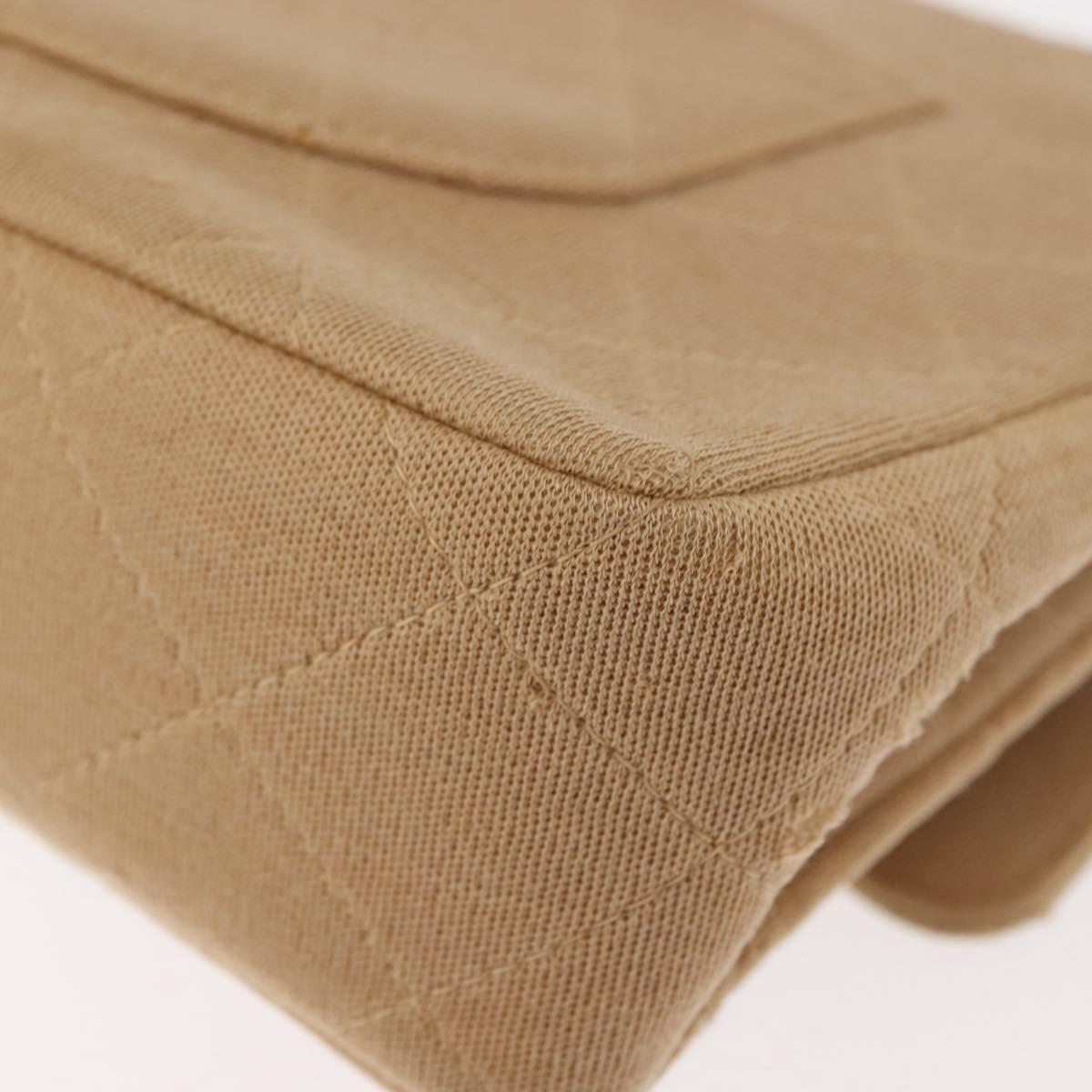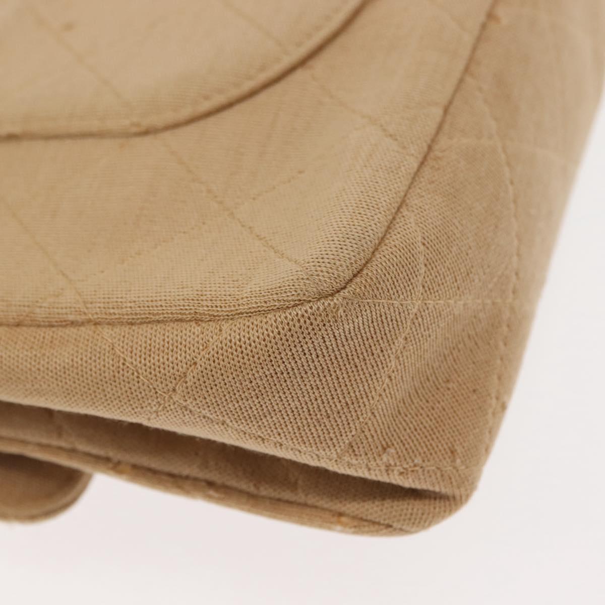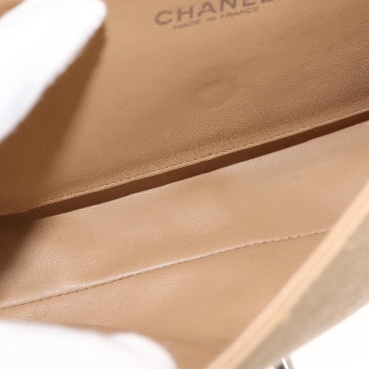 CHANEL Matelasse25 Chain Shoulder Bag cotton Beige Silver CC Auth 147227