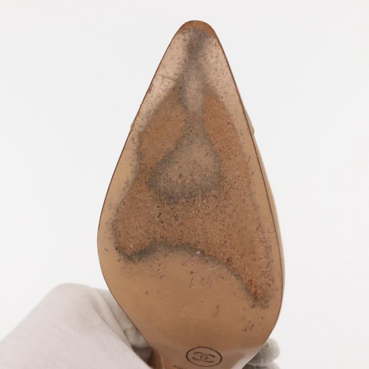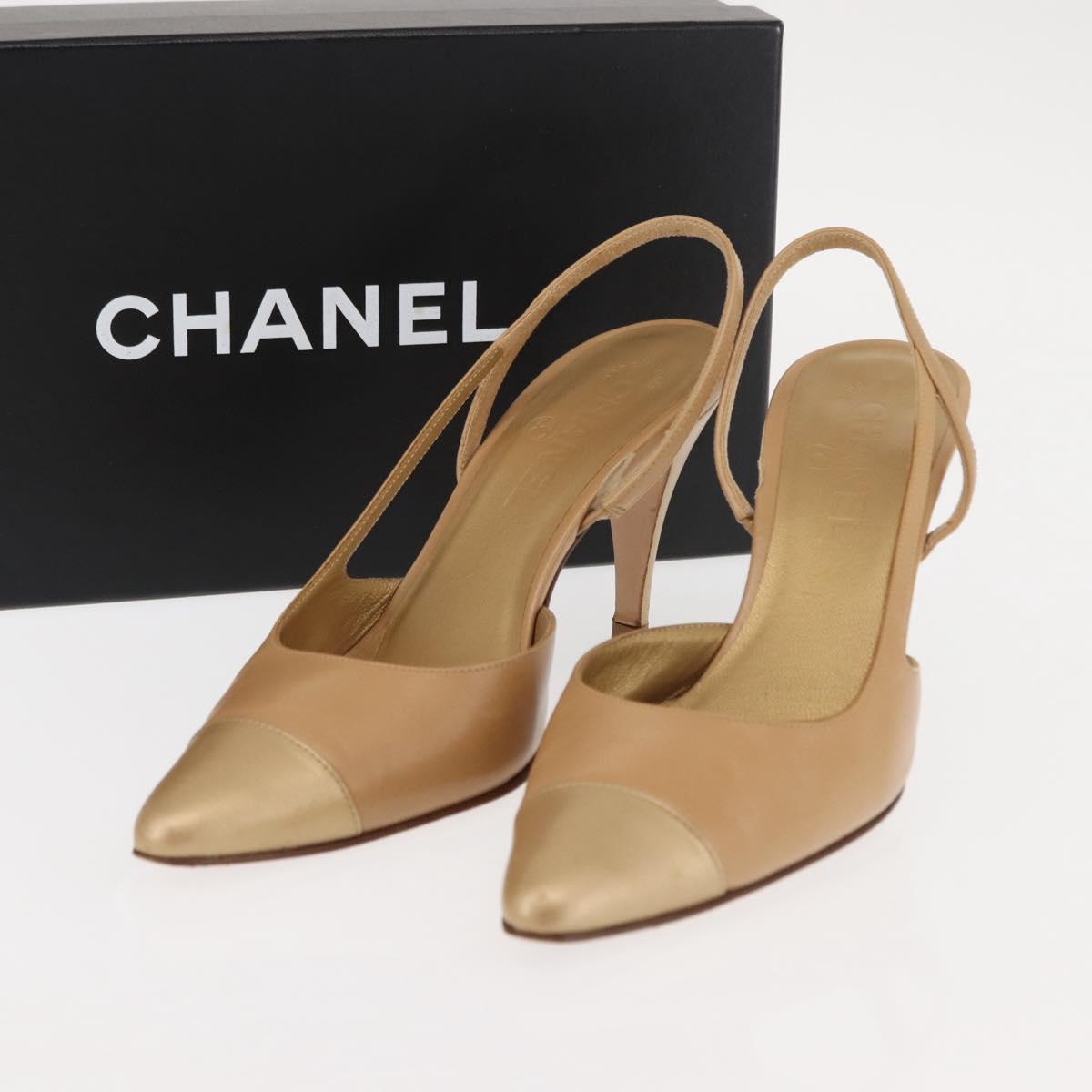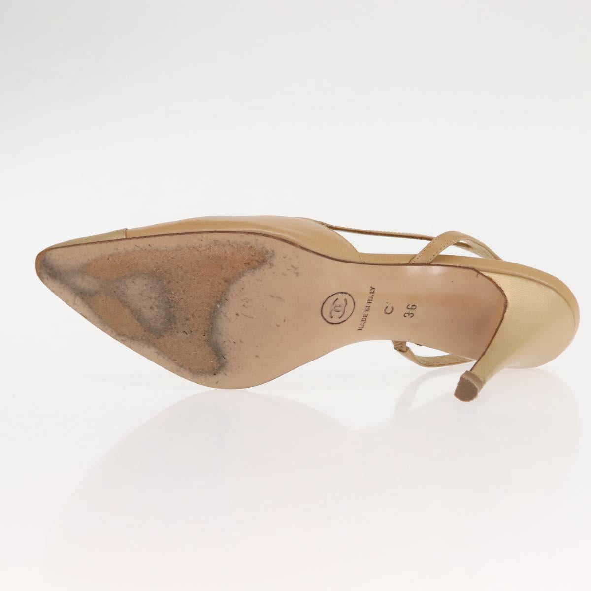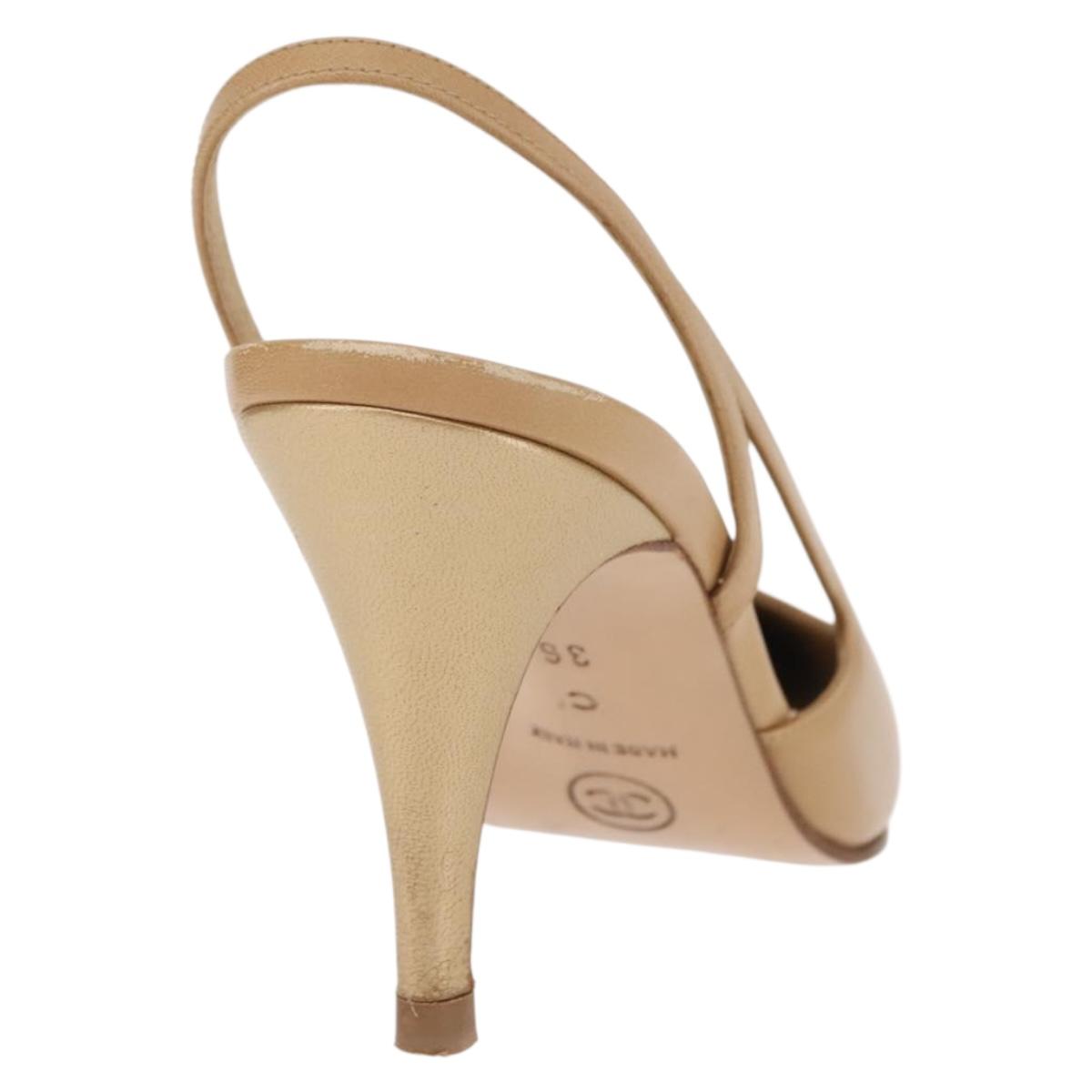 CHANEL Mule High heels Leather Gold CC Auth am9187