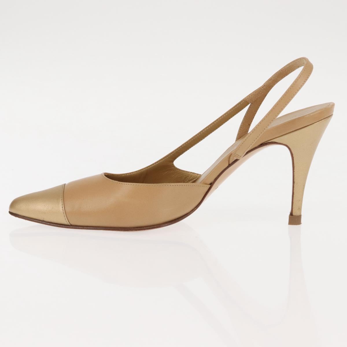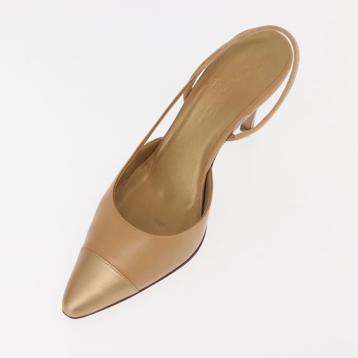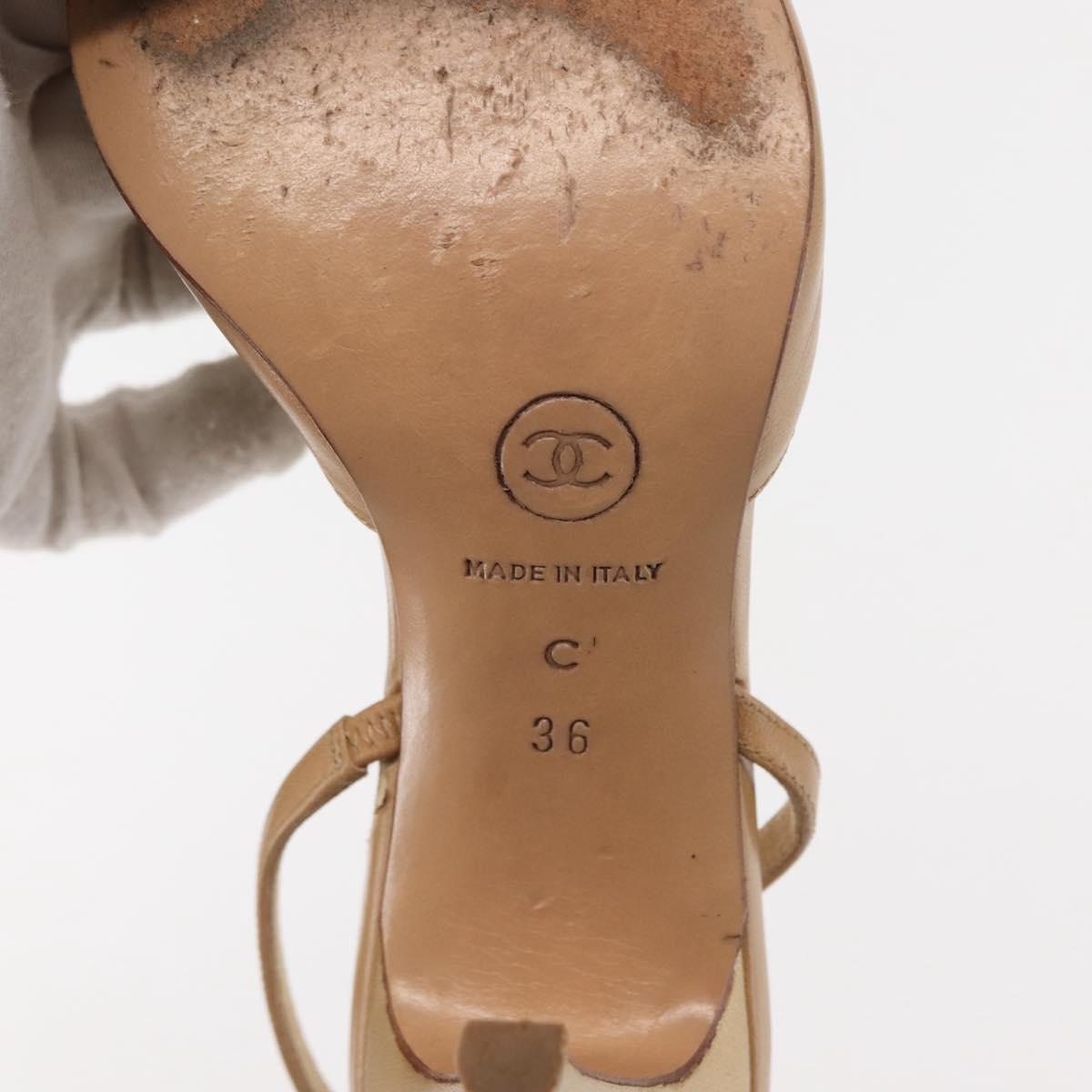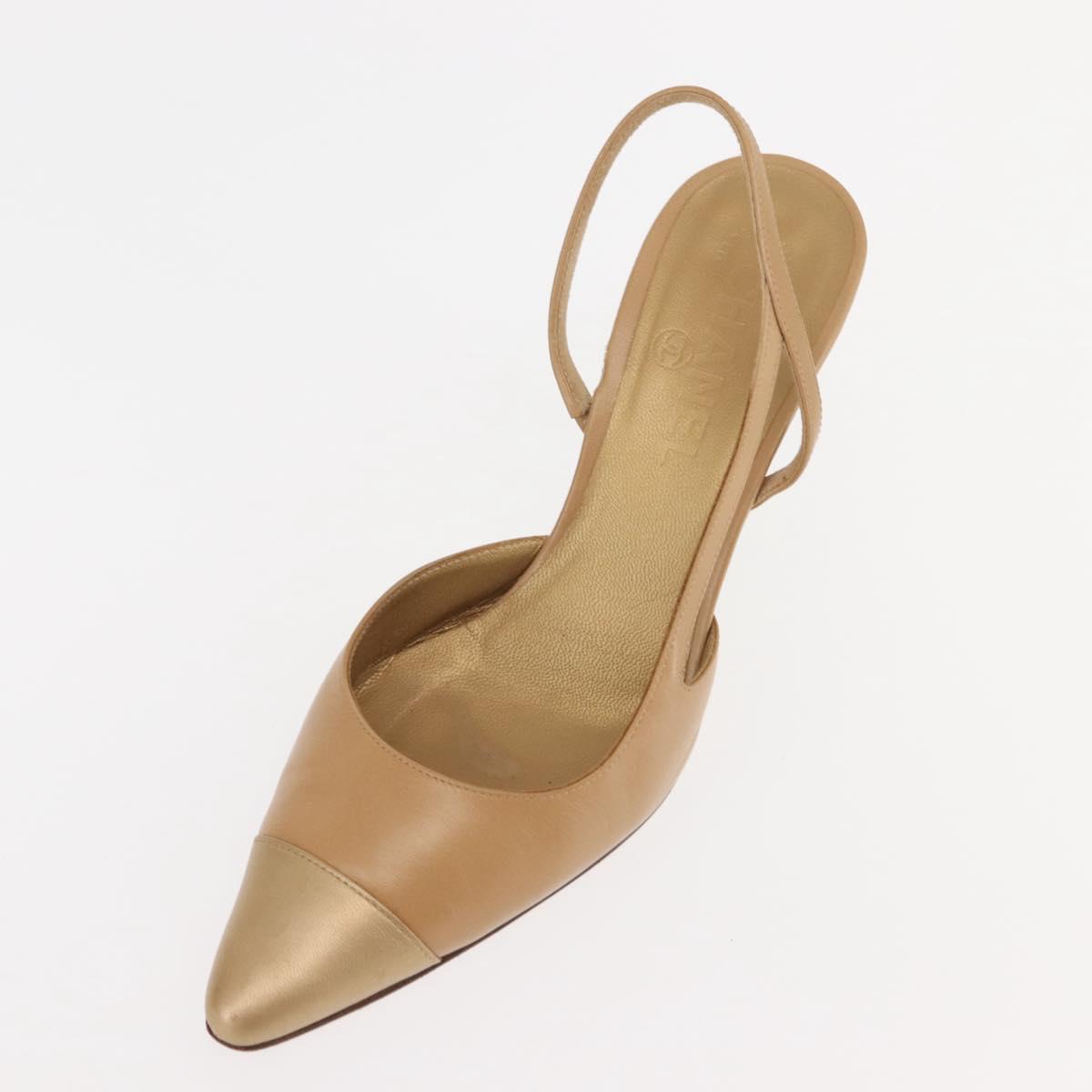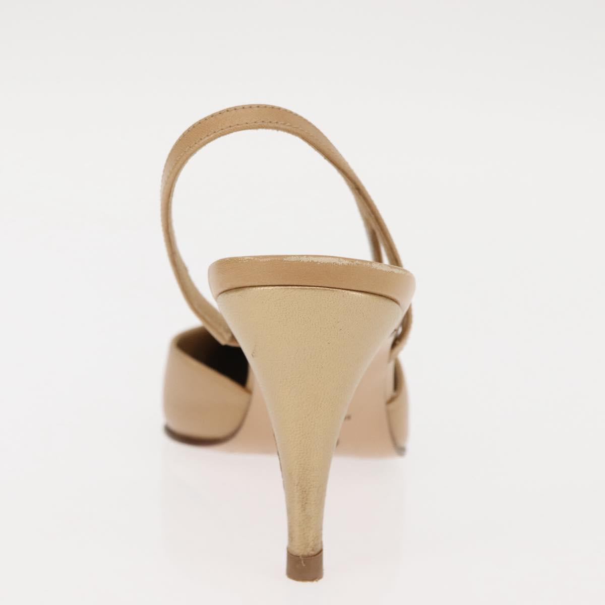 CHANEL Mule High heels Leather Gold CC Auth am9187