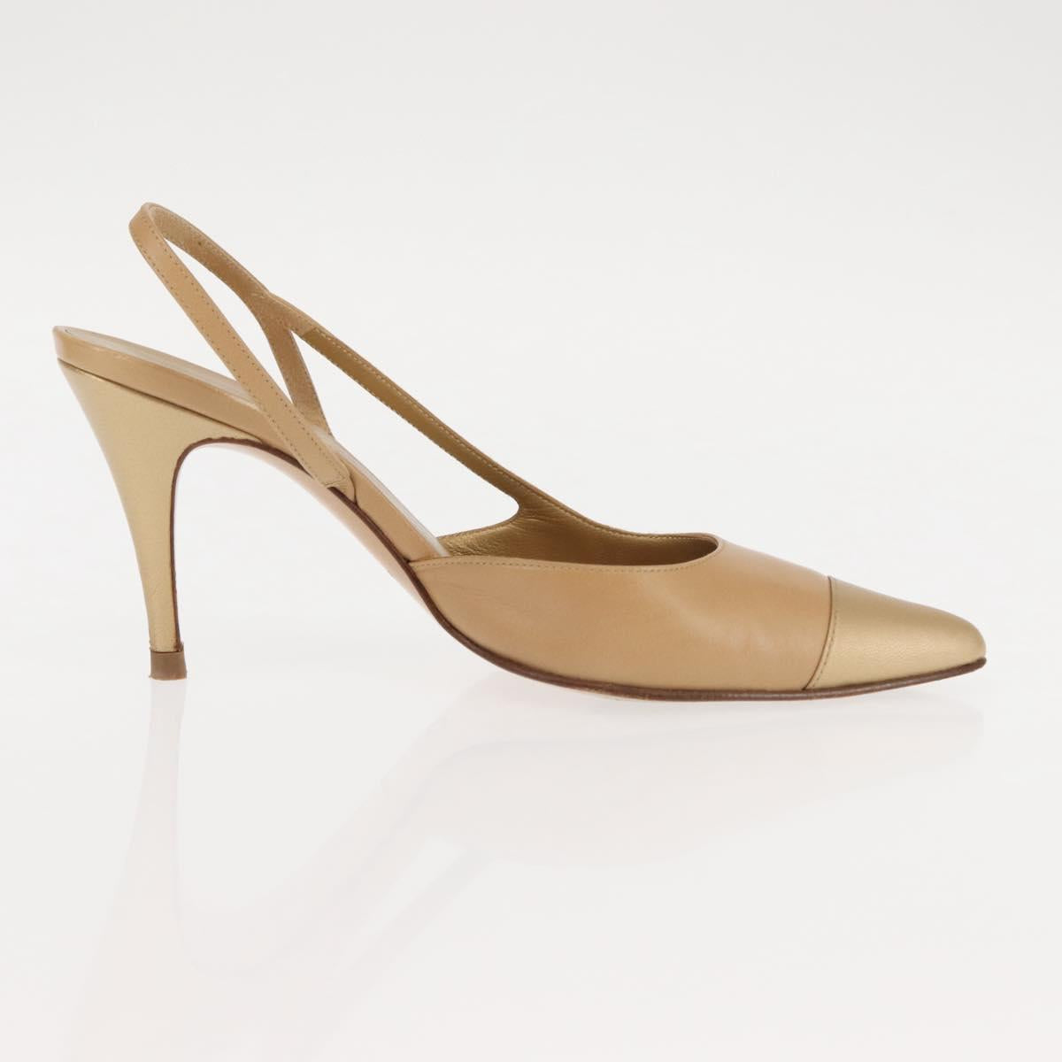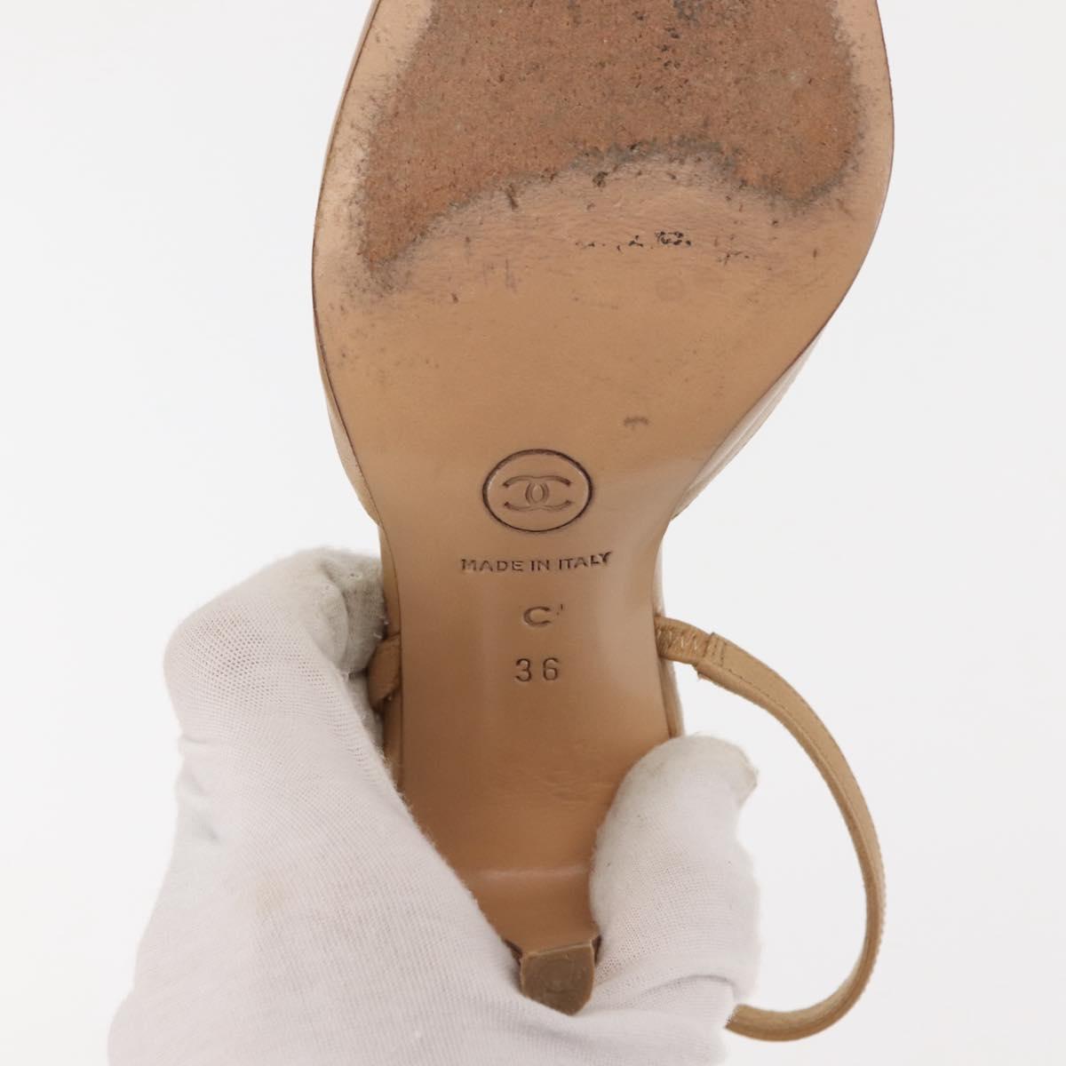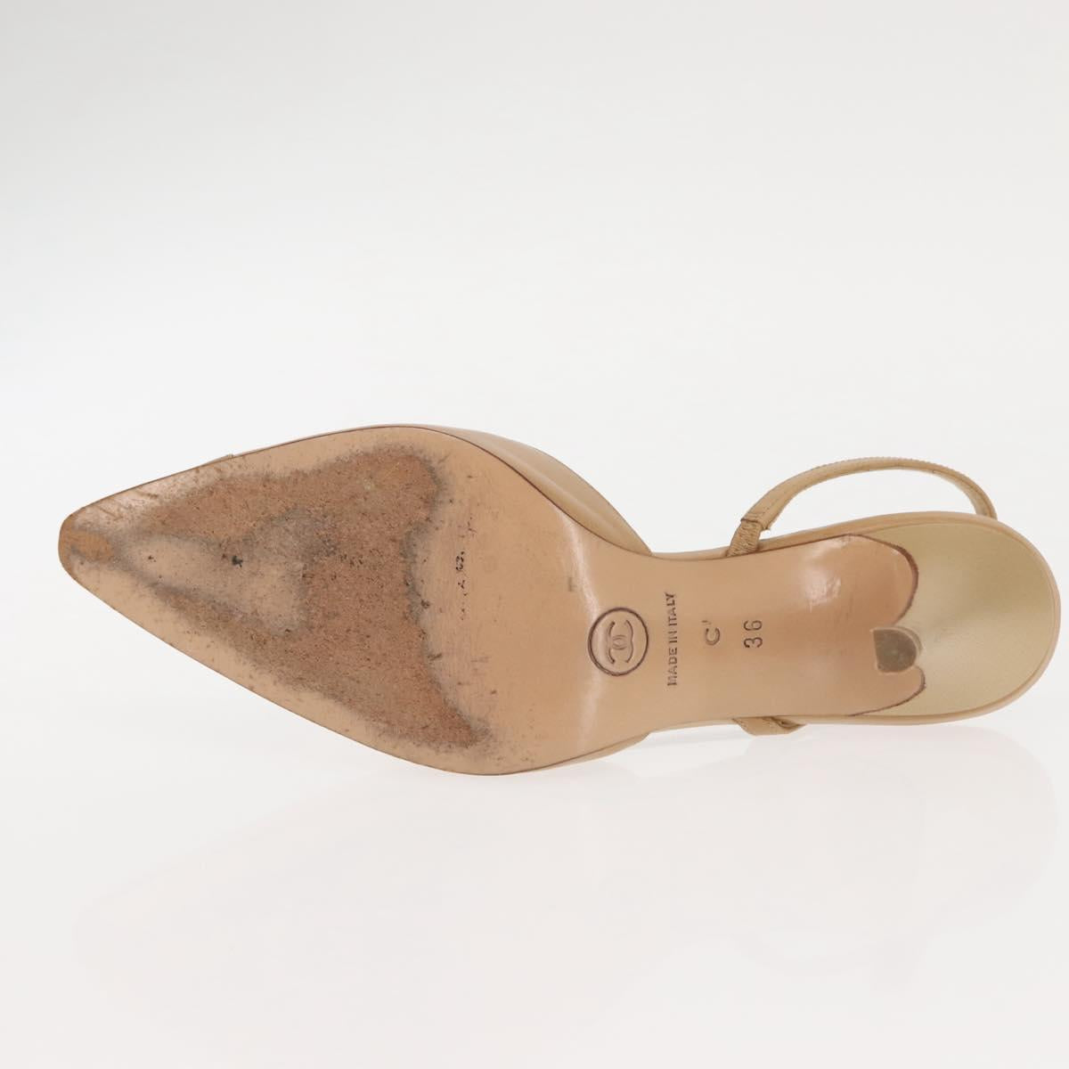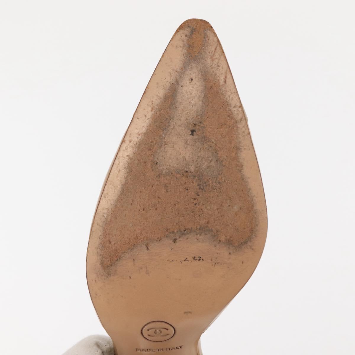 CHANEL Mule High heels Leather Gold CC Auth am9187