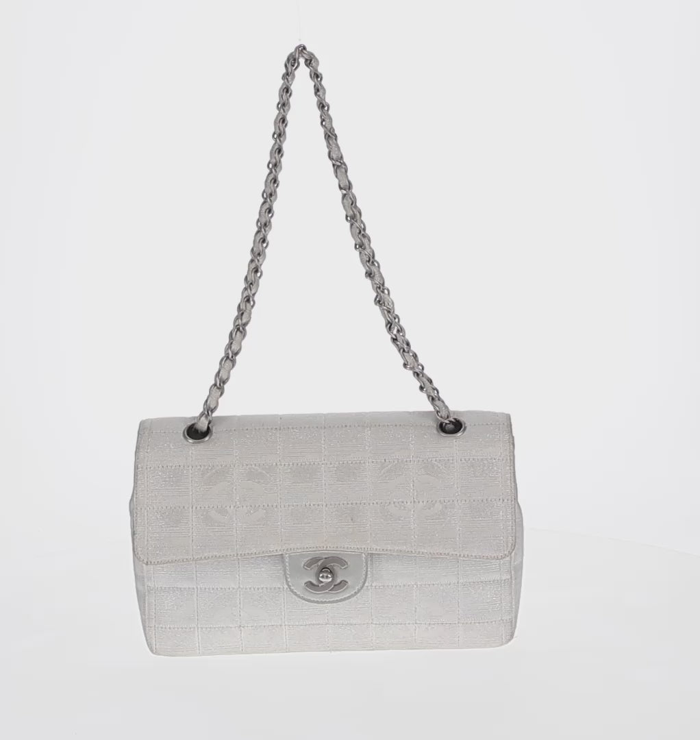 CHANEL New Travel line Choco Bar 25 Chain Bag Nylon Silver CC Auth 165427V