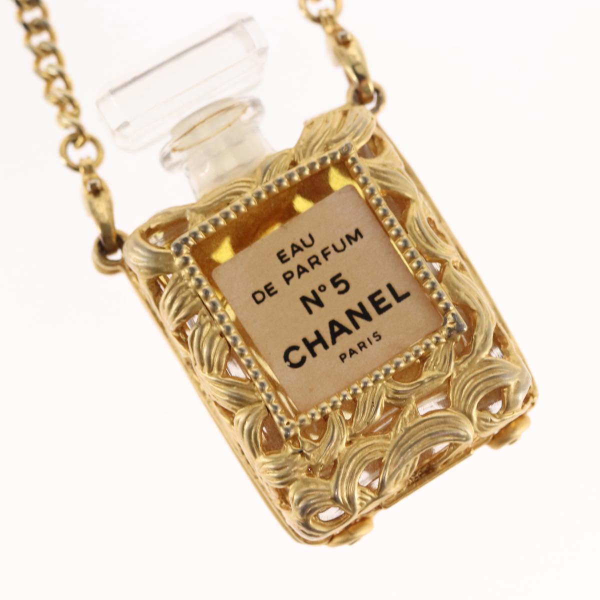 CHANEL Perfume Necklace metal Gold CC Auth 144685