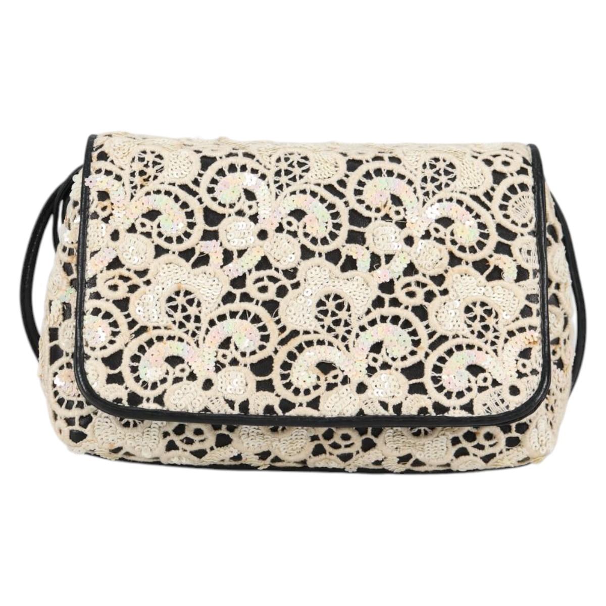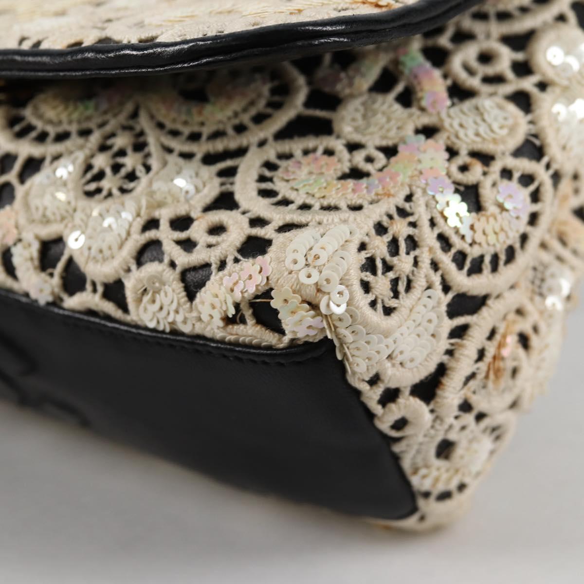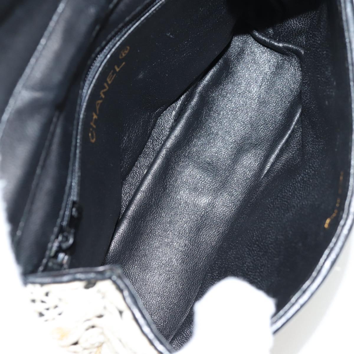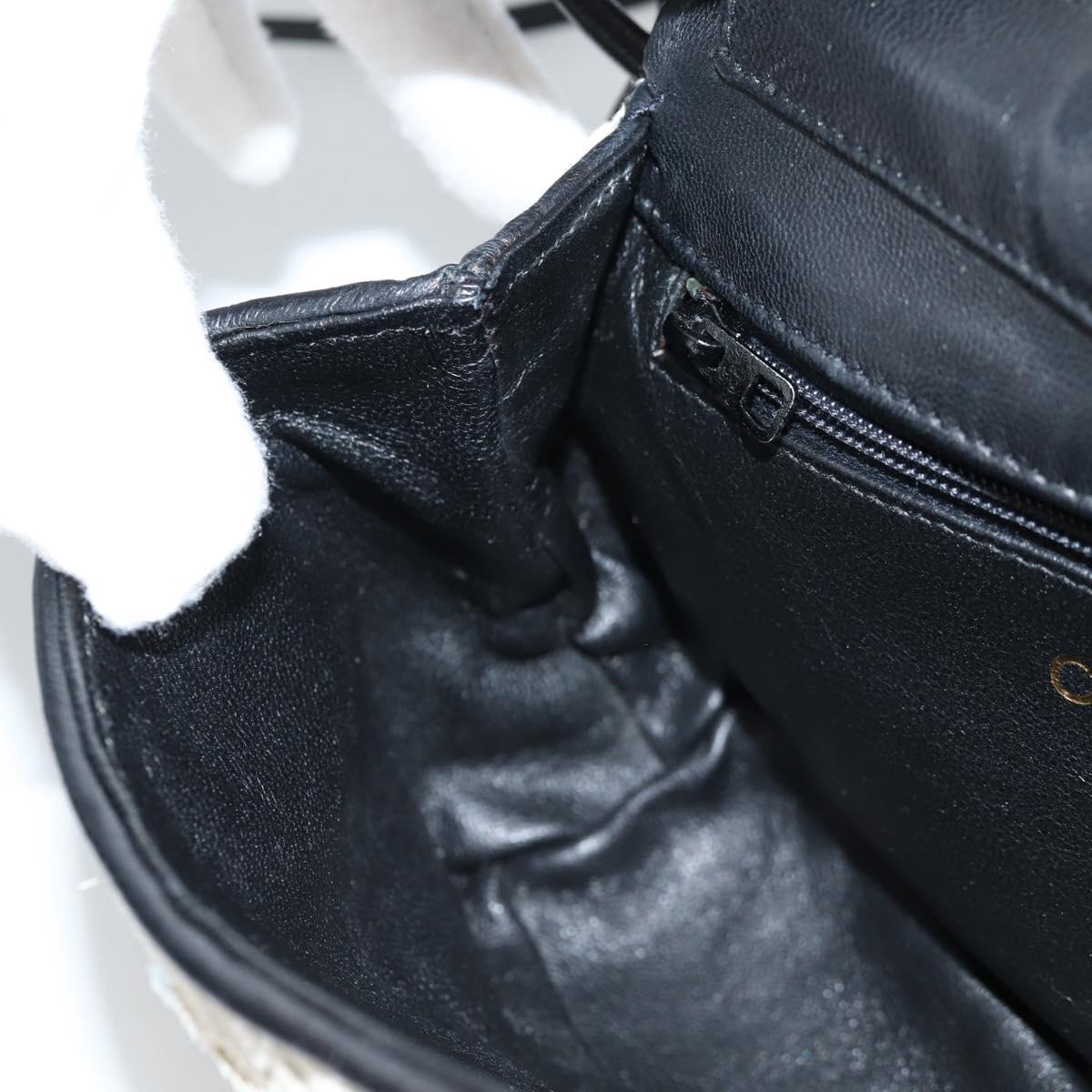 CHANEL Sequin Shoulder Bag Leather White Gold CC Auth 140995