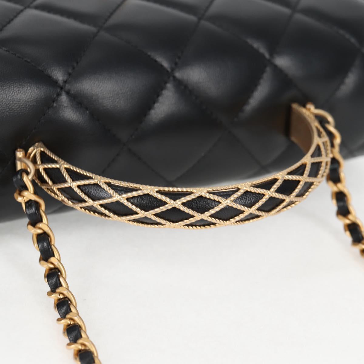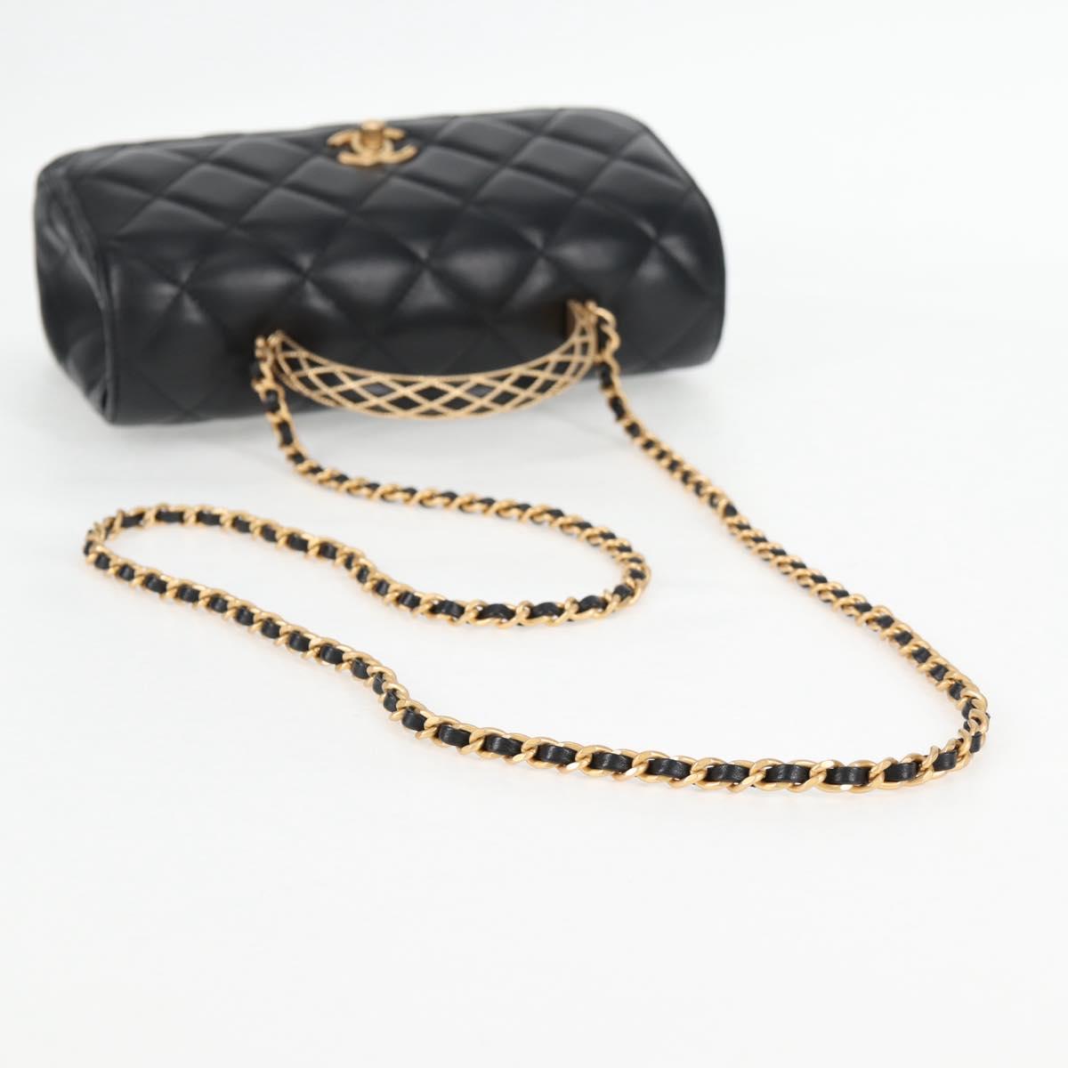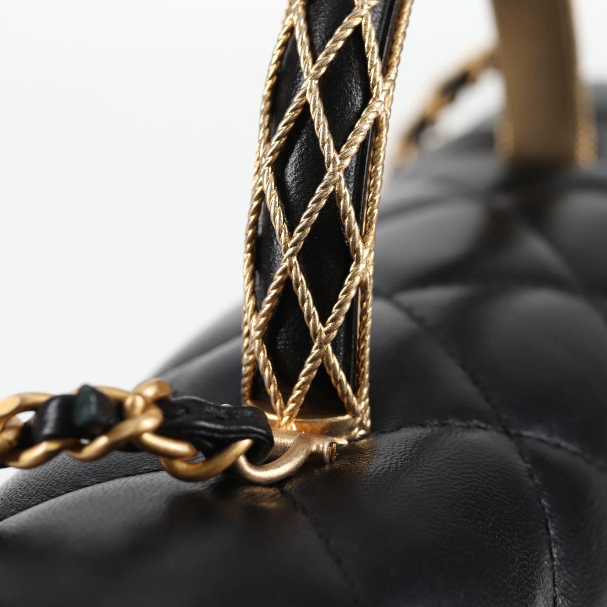 CHANEL Matelasse 2WAY Handbag Top Handle Bag 2021 Shoulder Bag Black Gold Lambskin