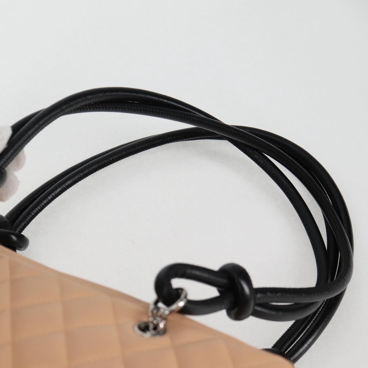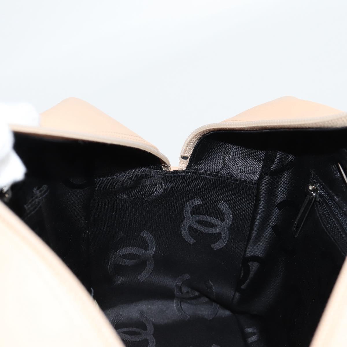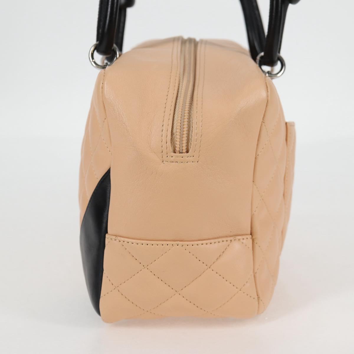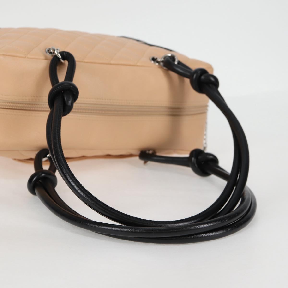 CHANEL Cambon Boston 2004 Tote Bag Beige Black Silver Lambskin