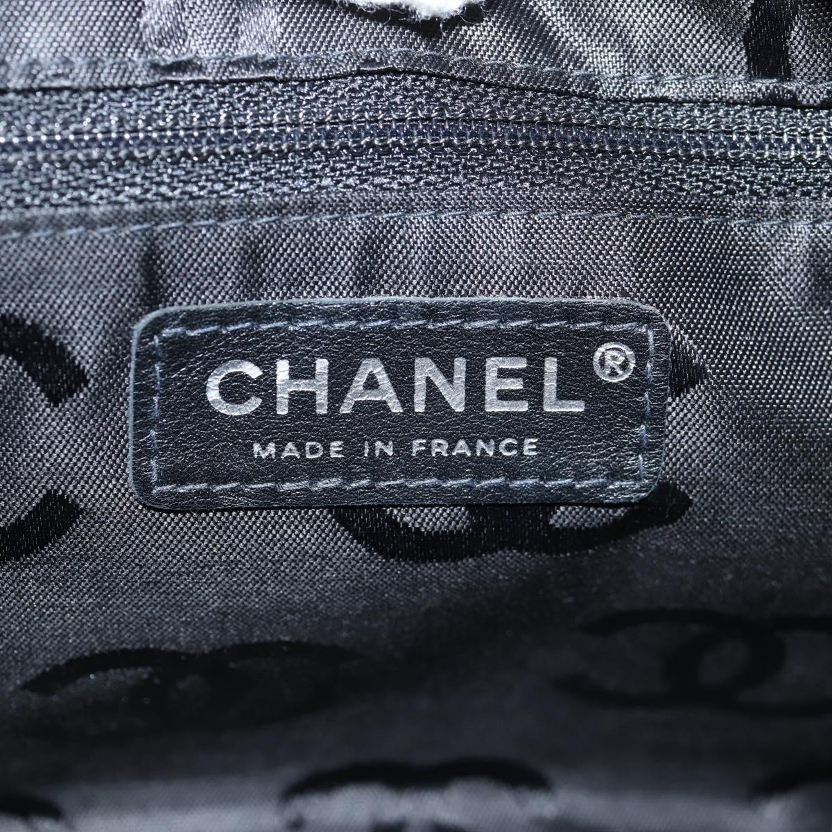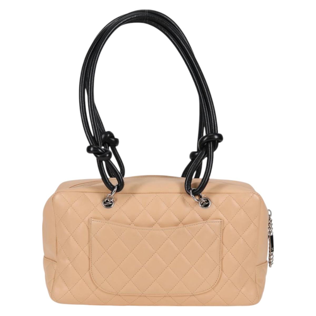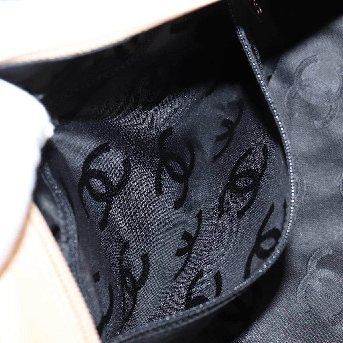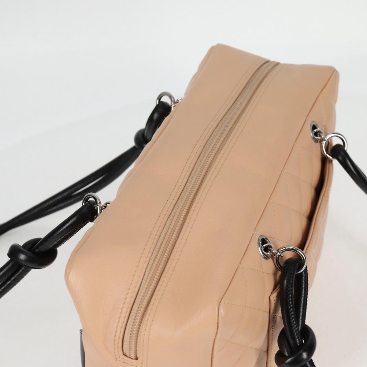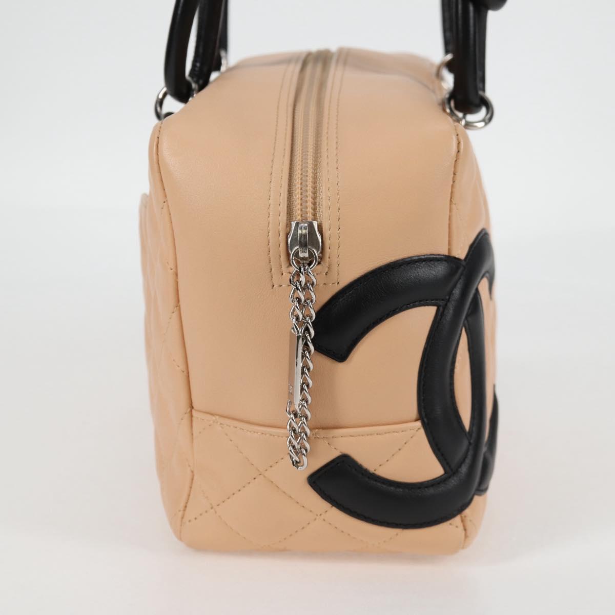 CHANEL Cambon Boston 2004 Tote Bag Beige Black Silver Lambskin