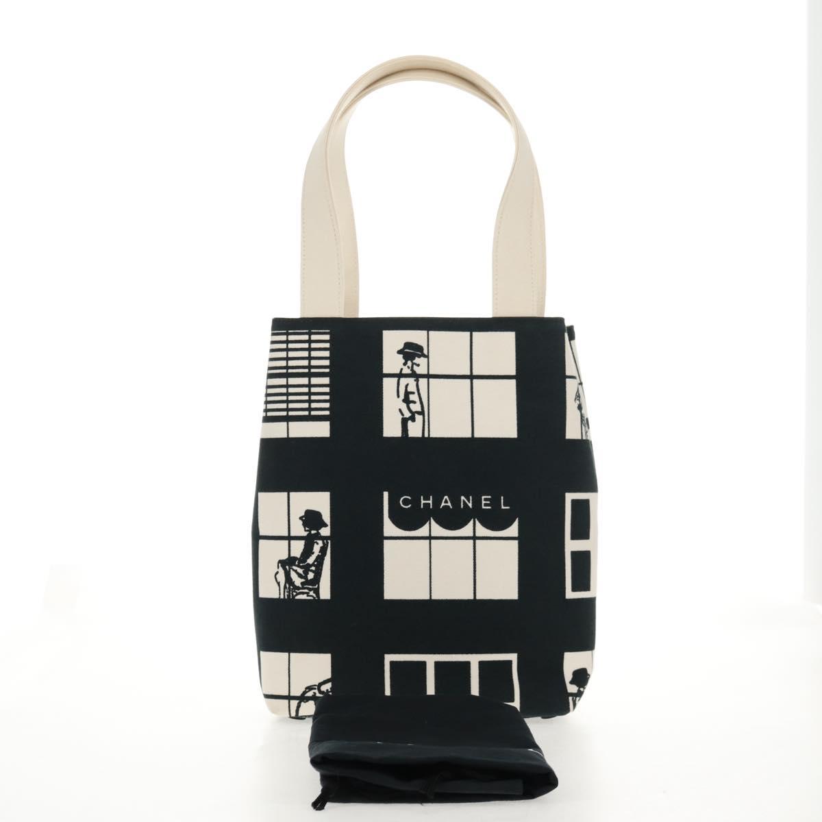 CHANEL Tote Bag Canvas Black Gold CC Auth 145125V