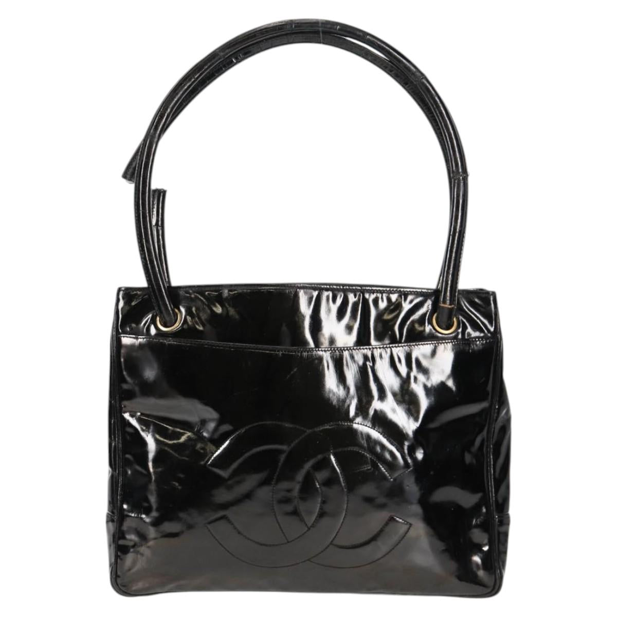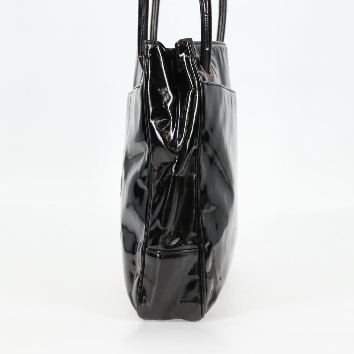 CHANEL Tote Bag Patent Leather Black Gold CC Auth bs19813