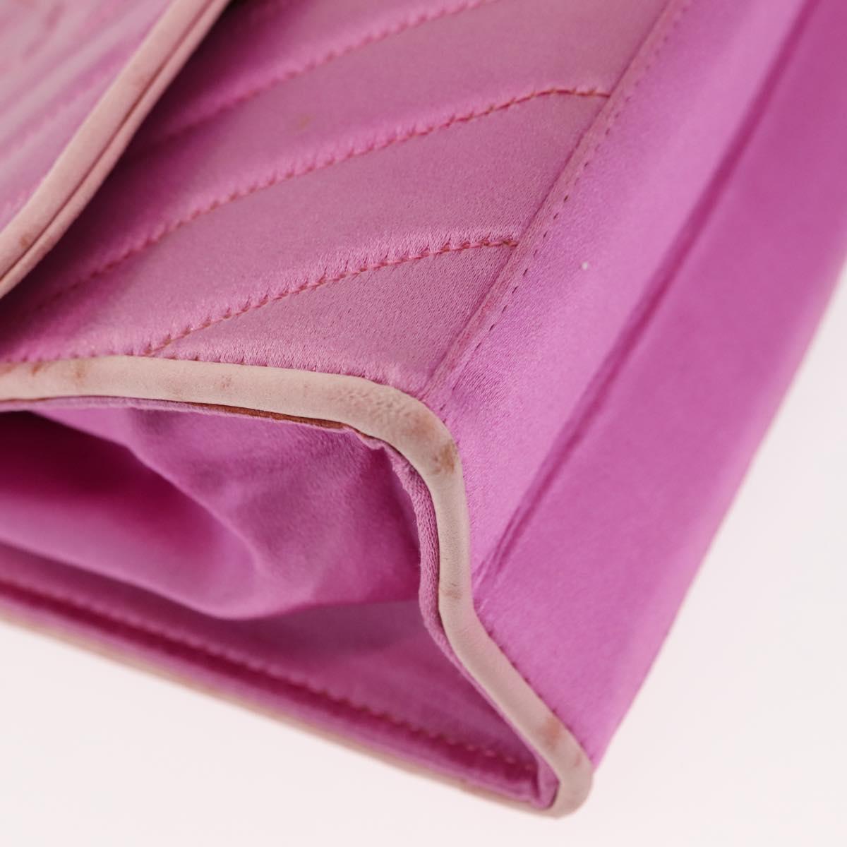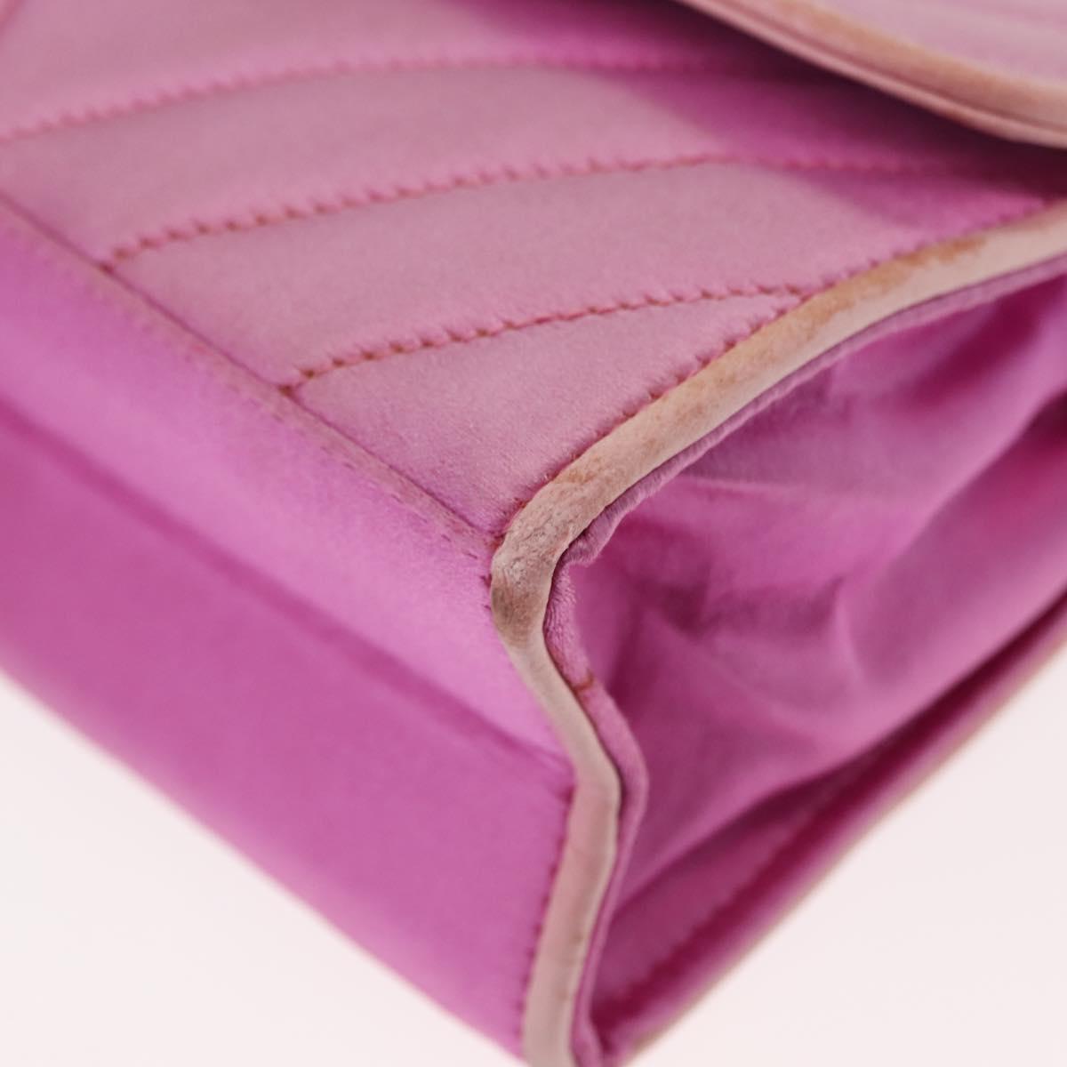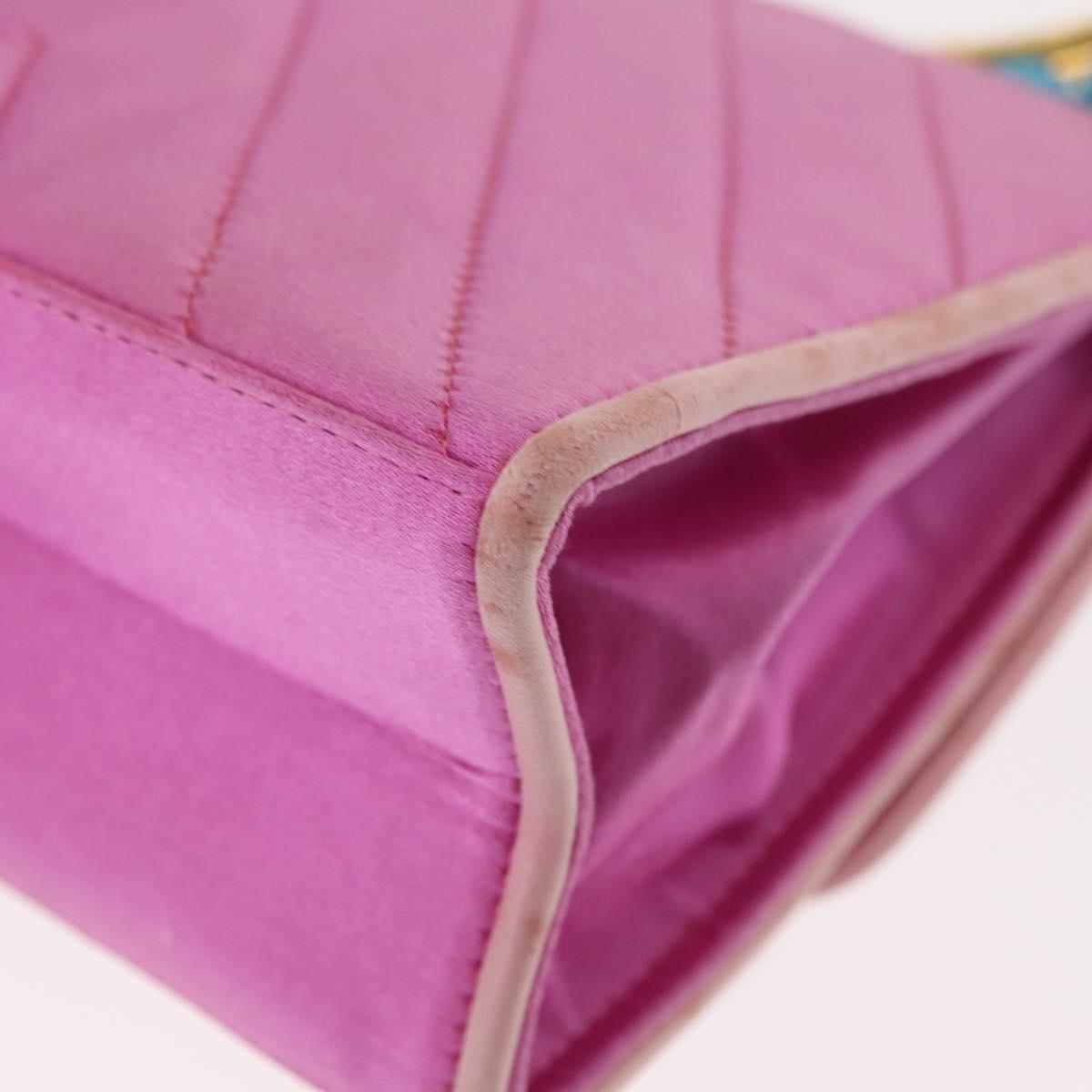 CHANEL V Stitch Hand Bag Satin Pink Gold CC Auth 146447