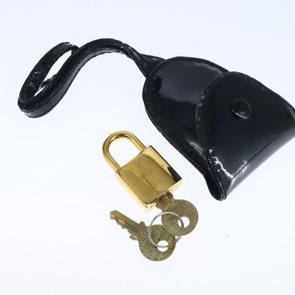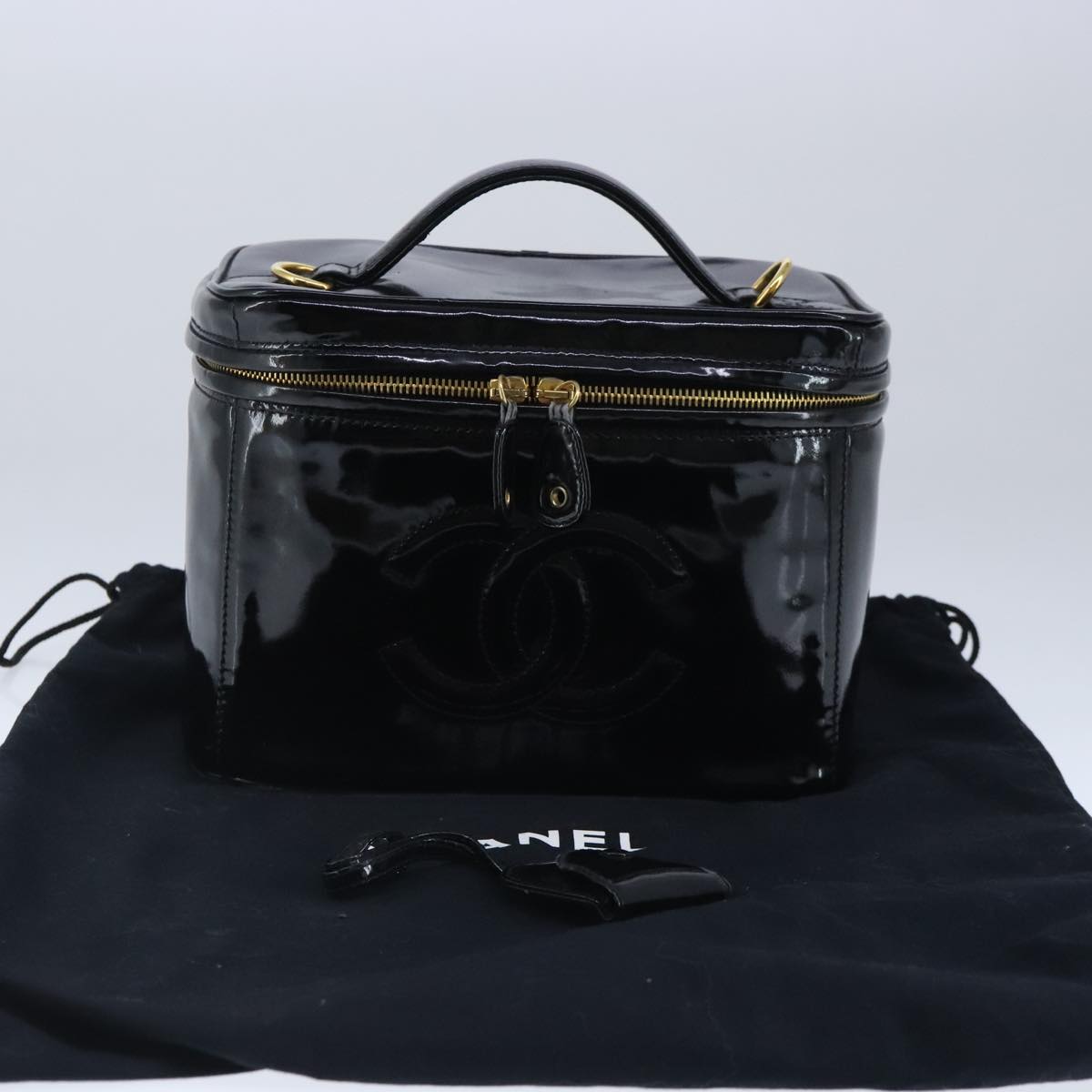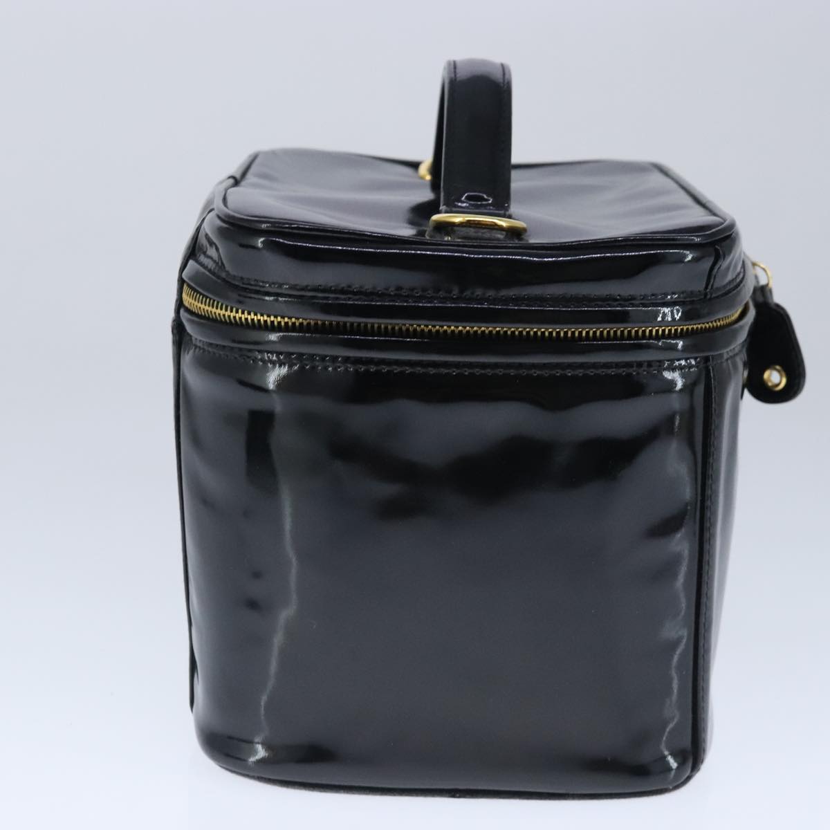 CHANEL Vanity Pouch Enamel Black Gold CC Auth bs20242