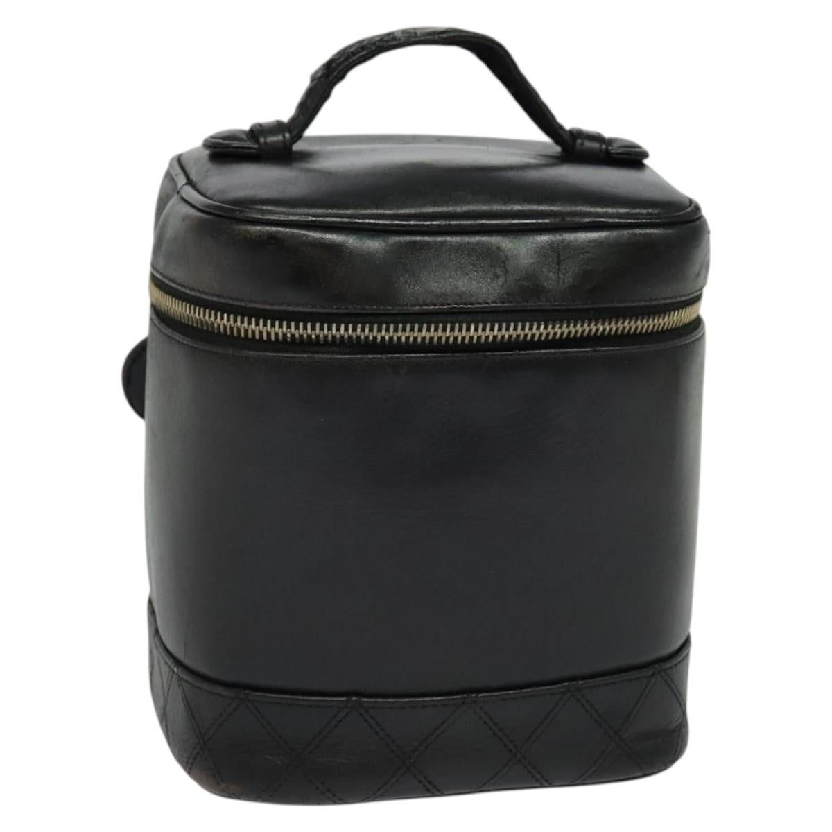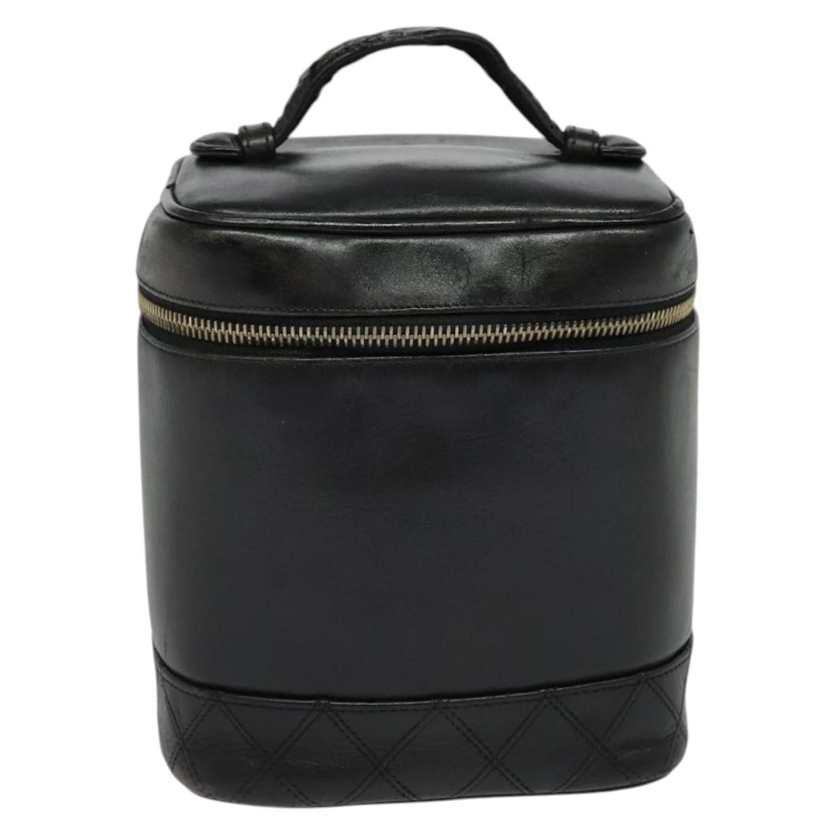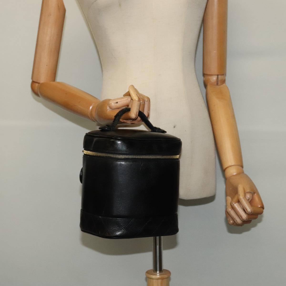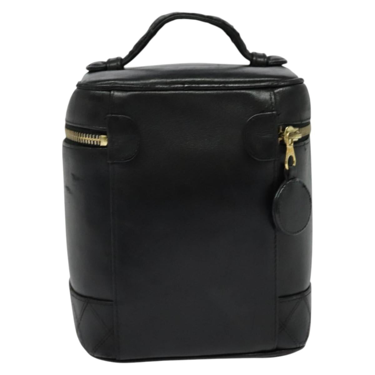 CHANEL Vanity Pouch Leather Black Gold CC Auth bs29211