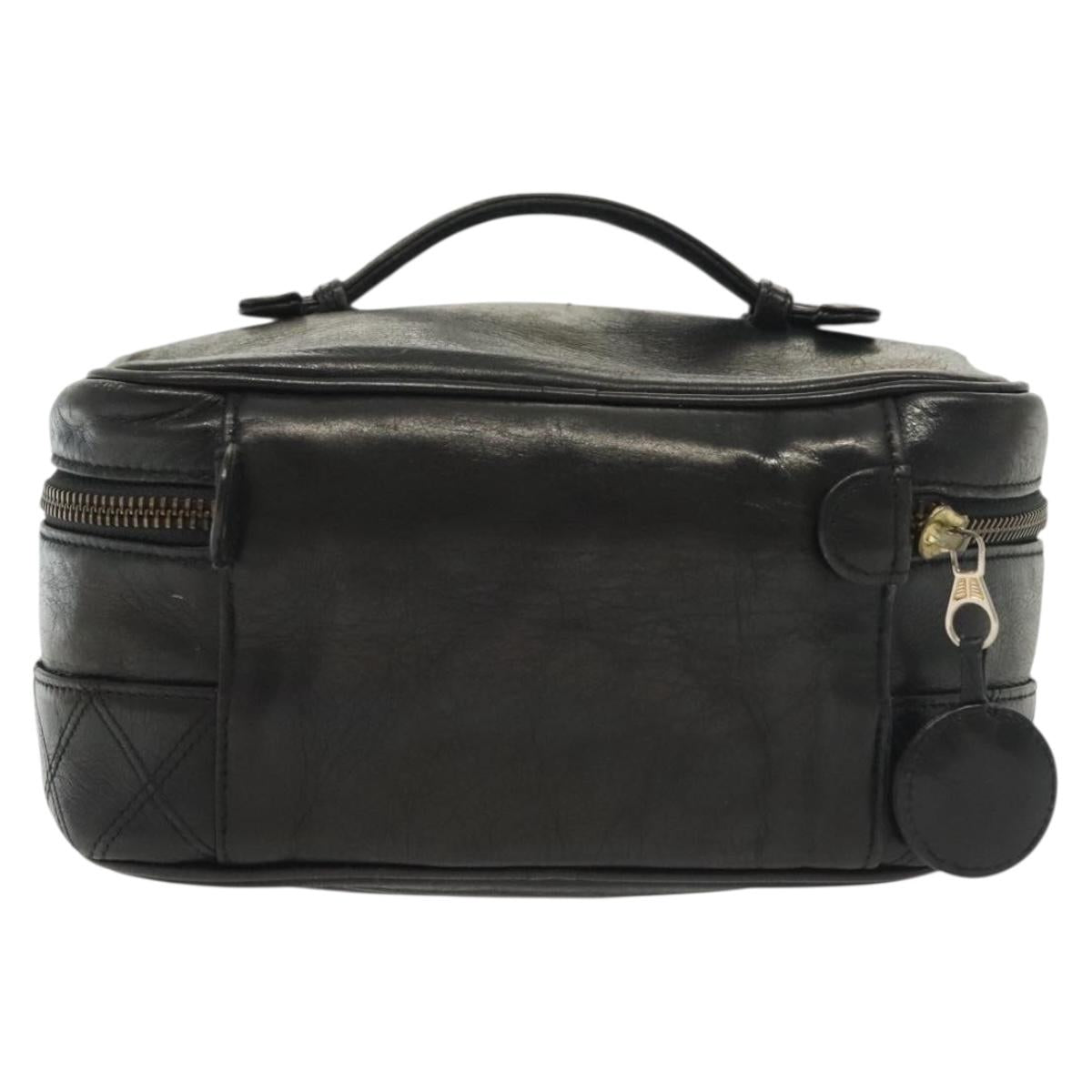 CHANEL Vanity Pouch Leather Black Gold CC Auth bs29212