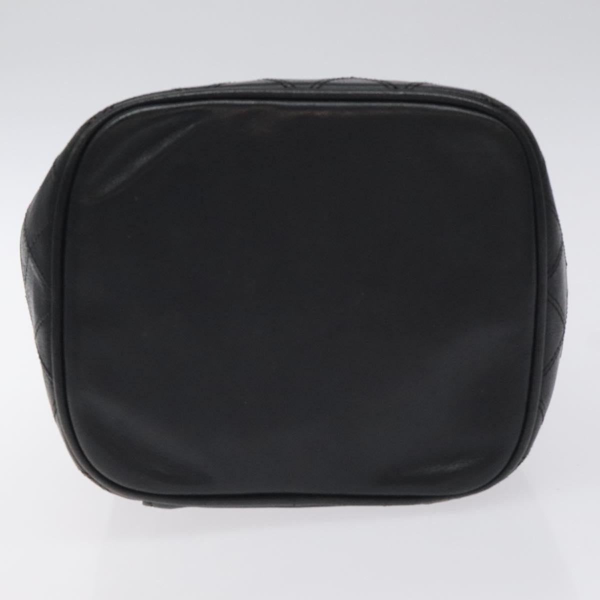 CHANEL Vanity Pouch Lamb Skin Black Gold CC Auth bs26985