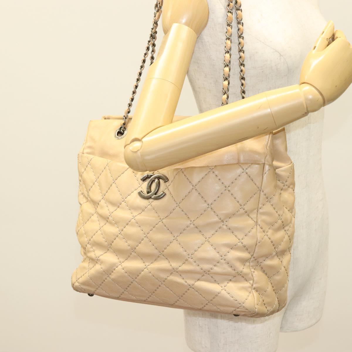 CHANEL Wild Stitch Chain Shoulder Bag Leather Beige CC Auth 131489