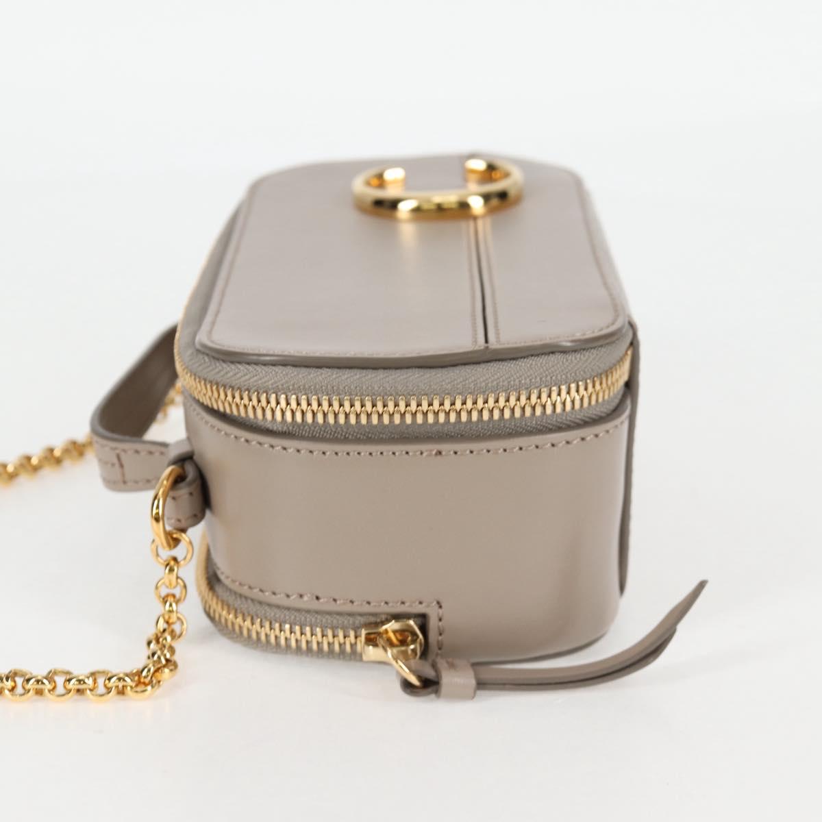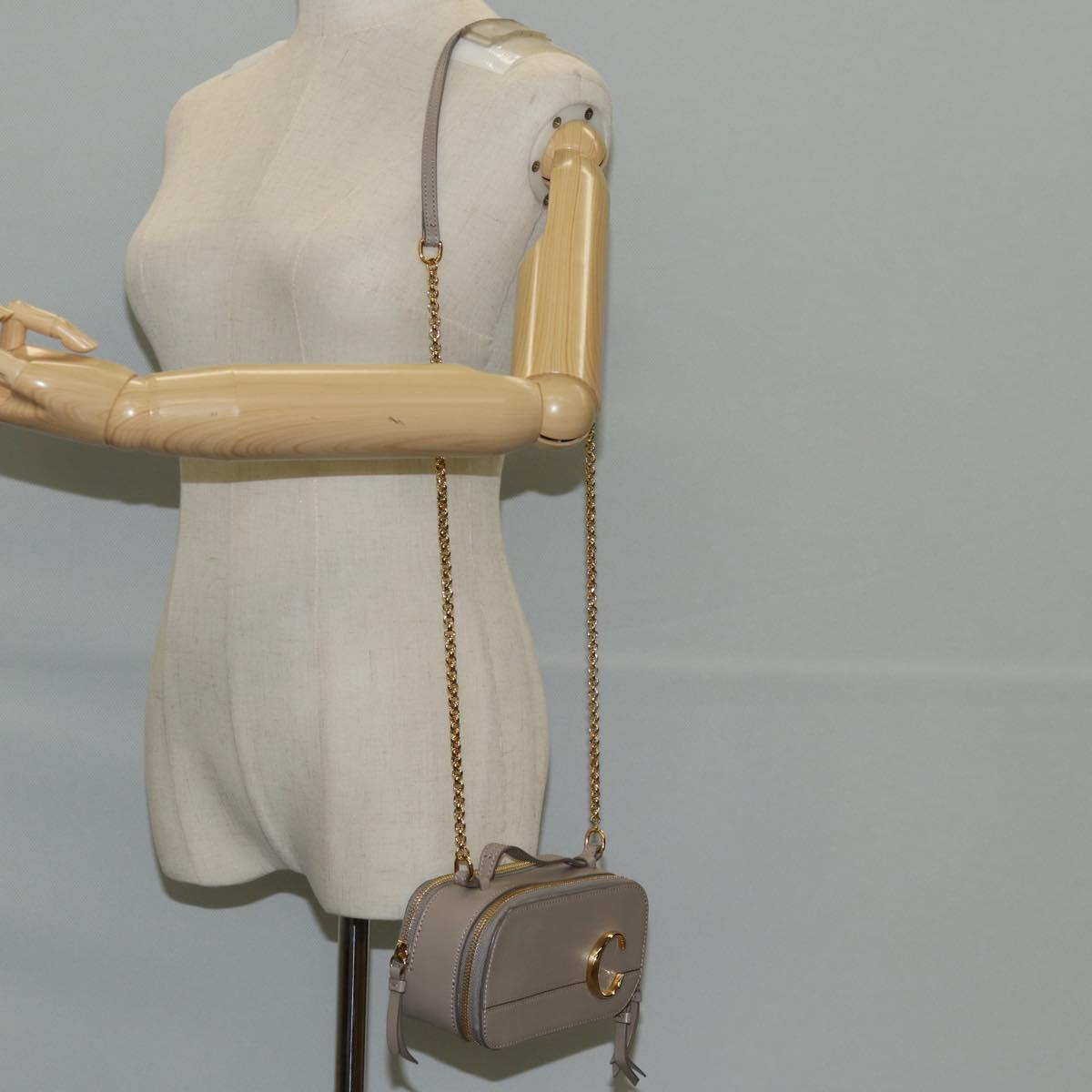 Chloe Chain Shoulder Bag Leather Beige Gold Auth BA3317V