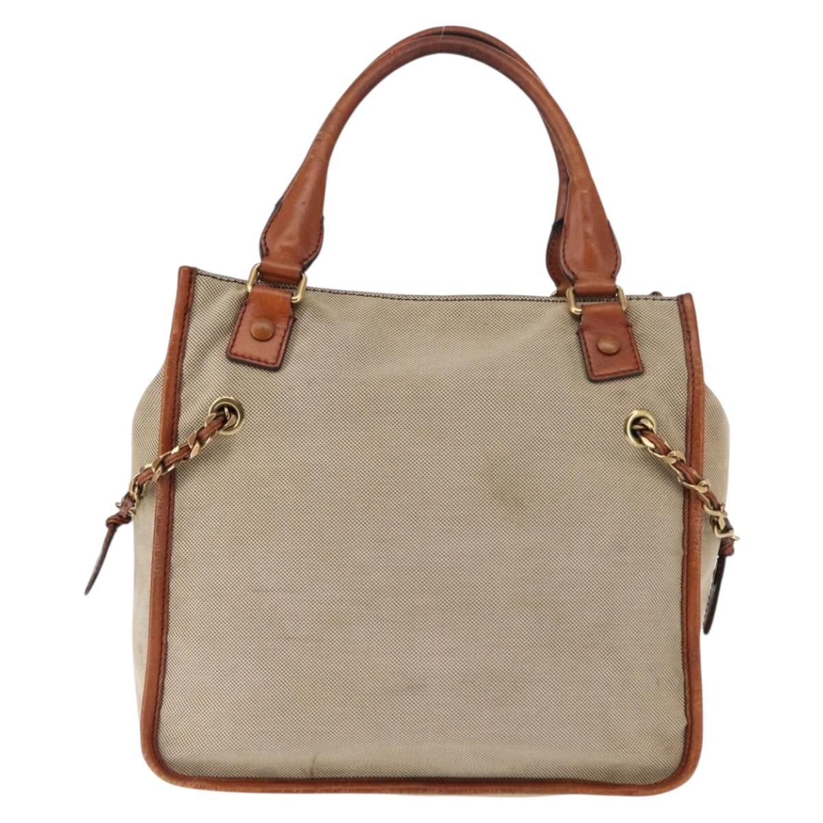 Chloe Harley Tote Bag Canvas Leather Beige Gold Auth fm4886