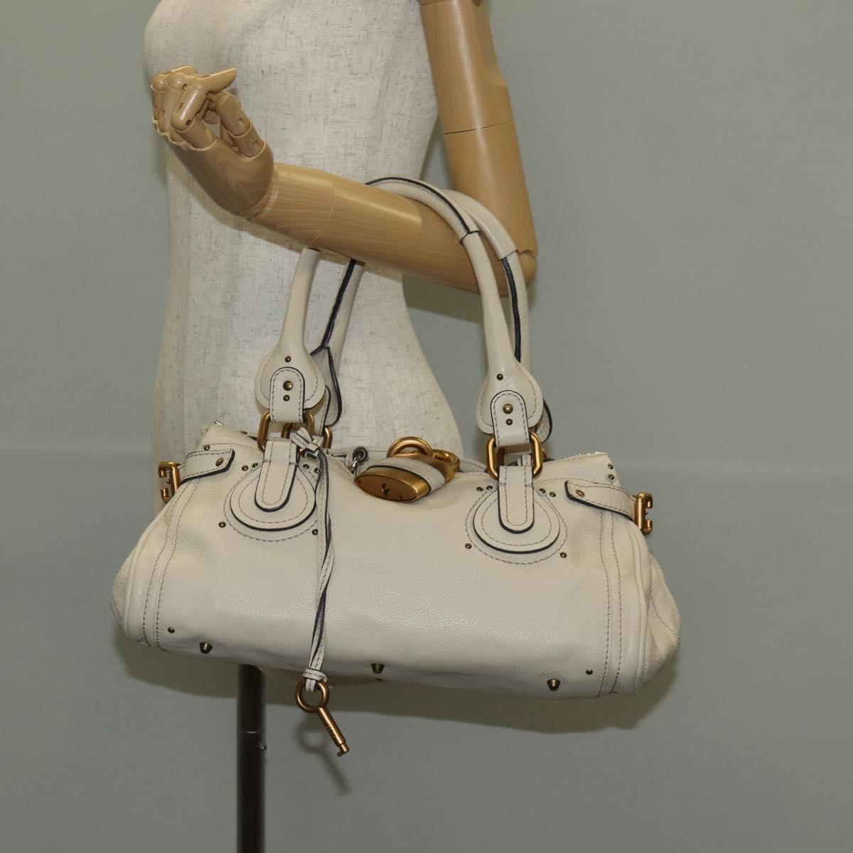 Chloe Paddington Hand Bag Leather White Auth am9183V