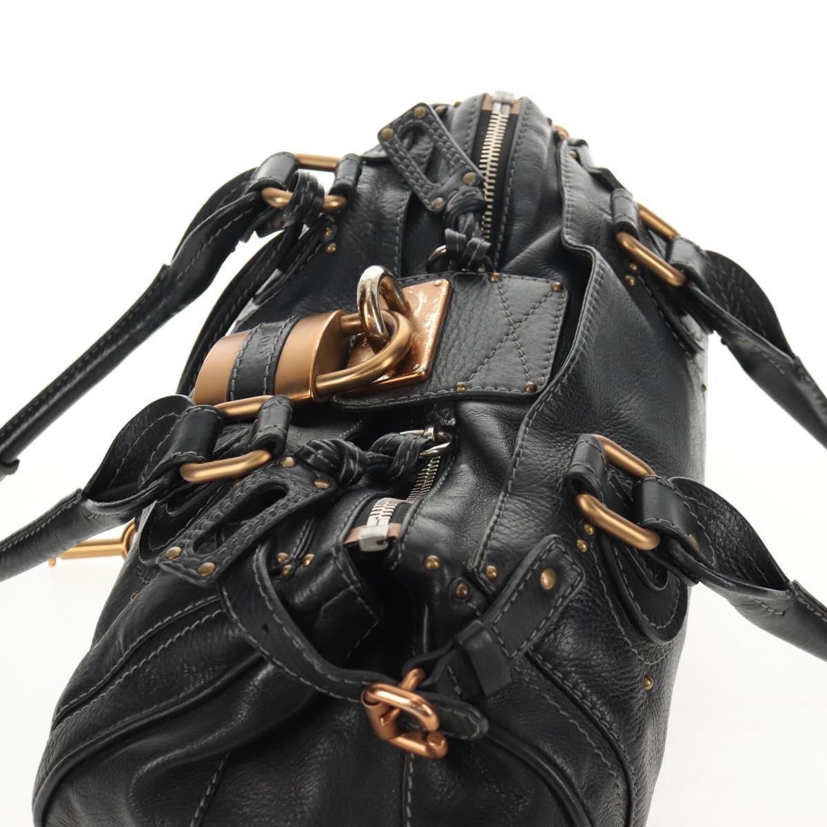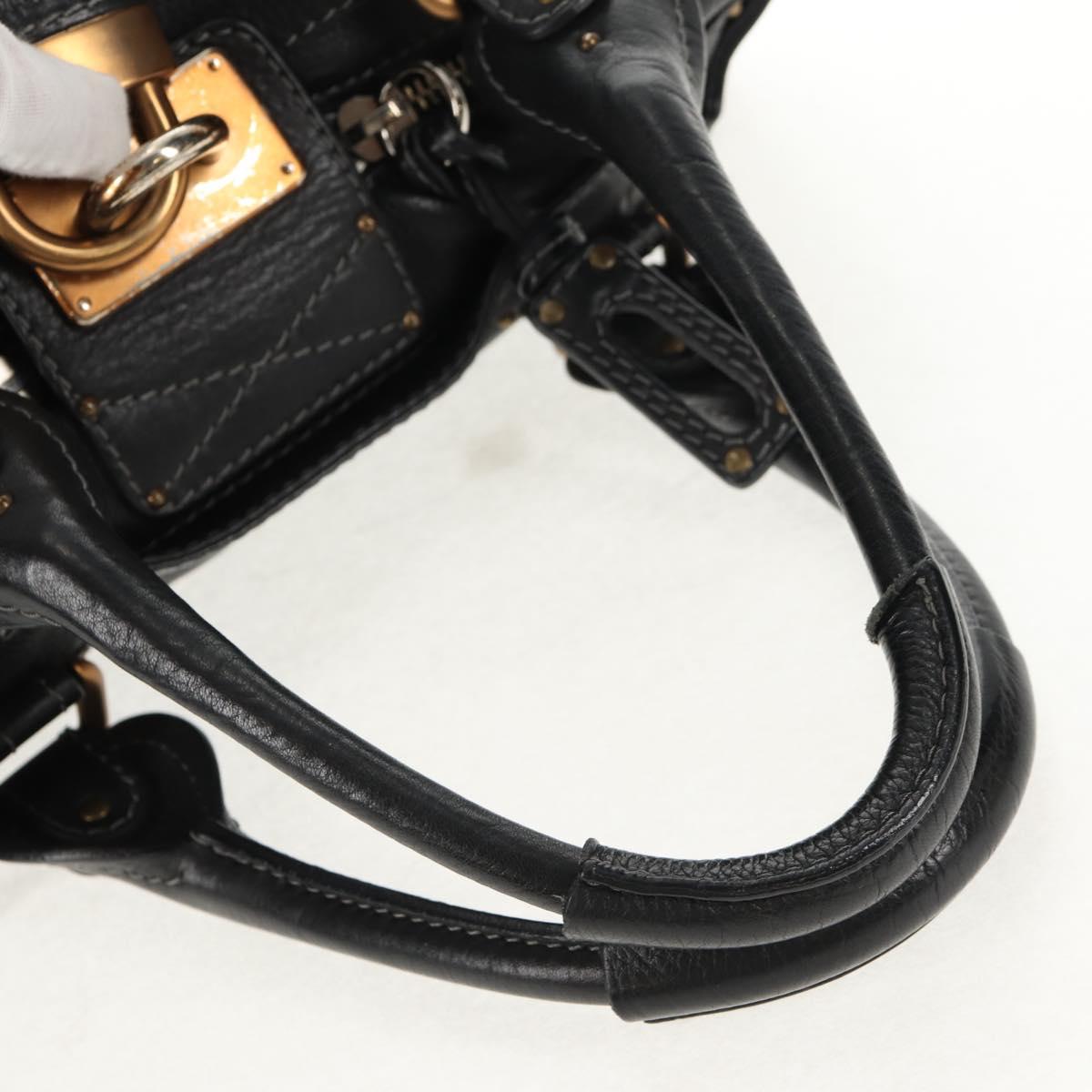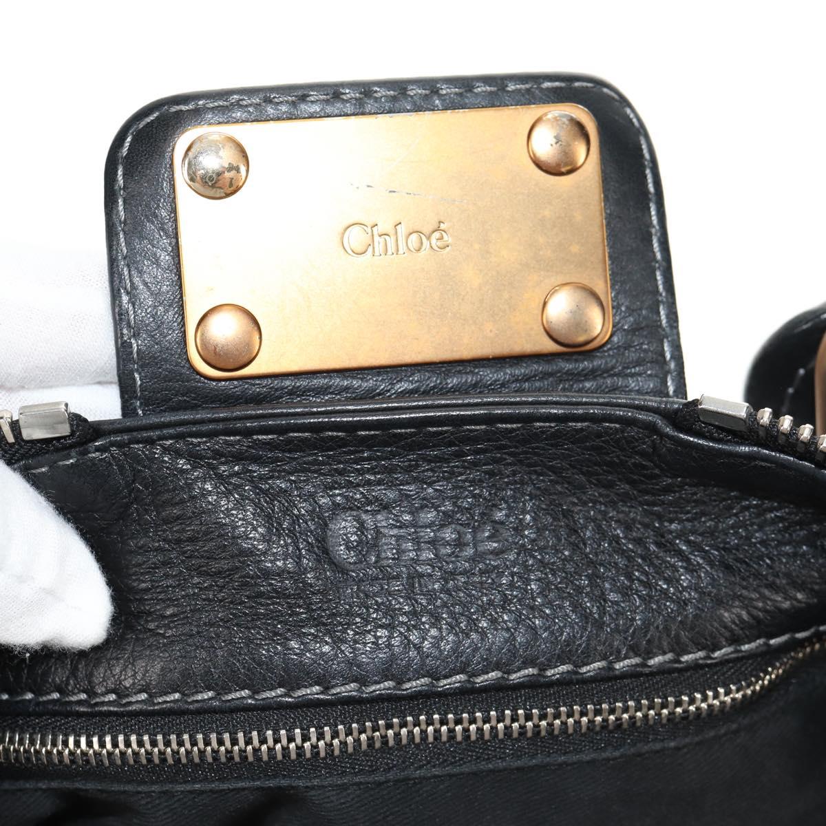 Chloe Paddington Shoulder Bag Leather Black Gold Auth am9291V