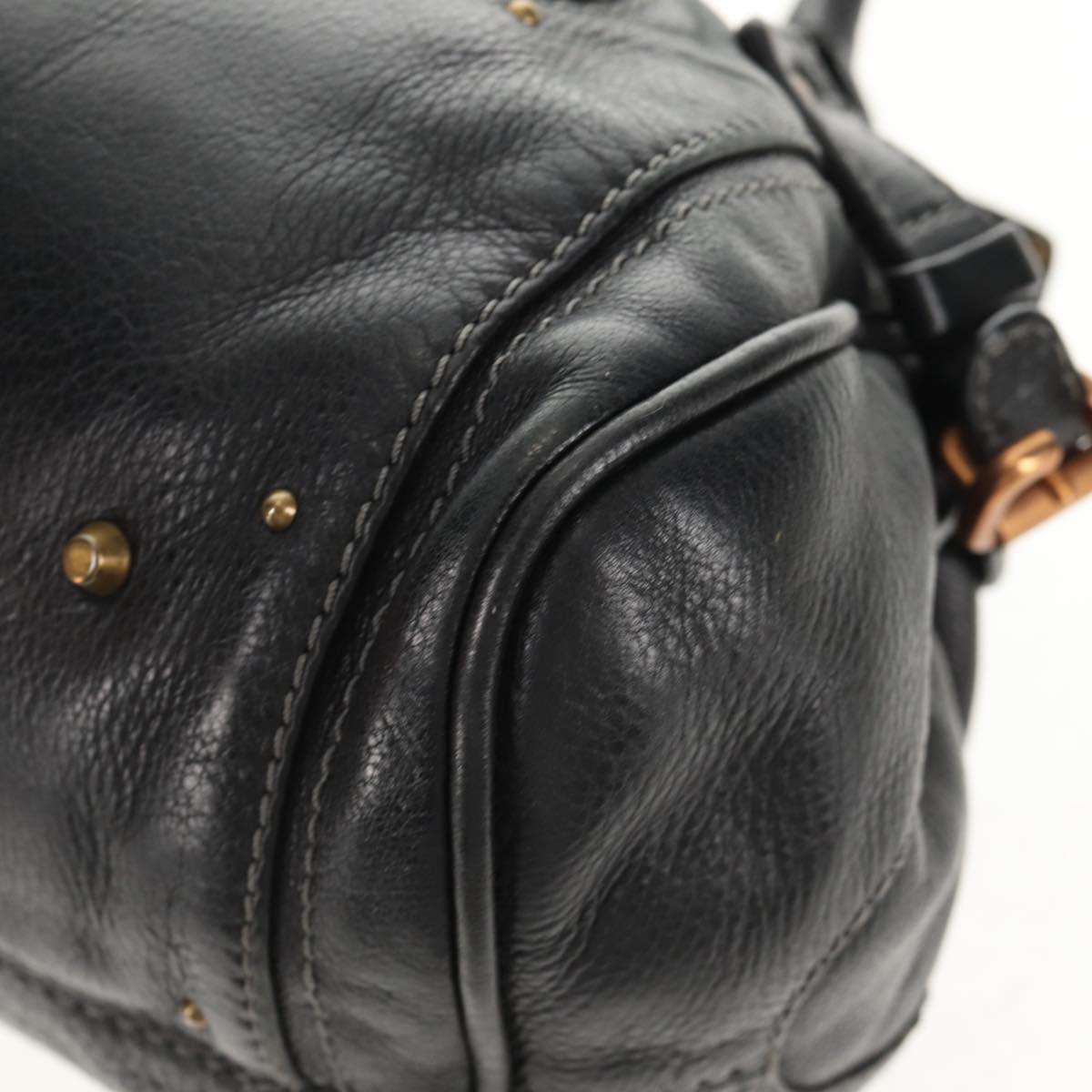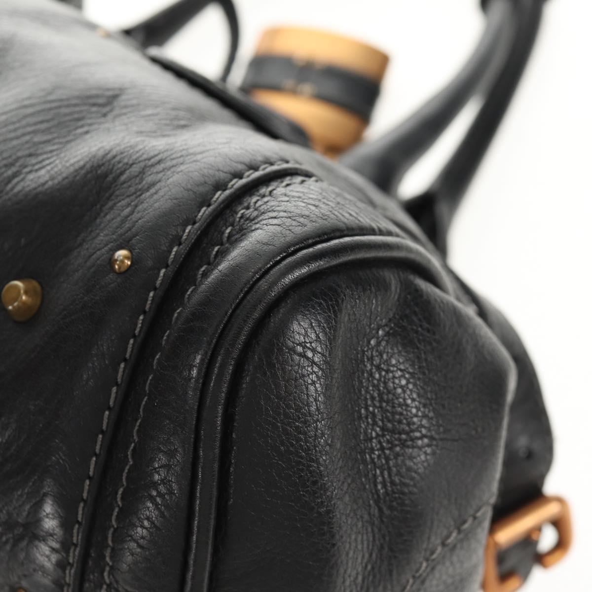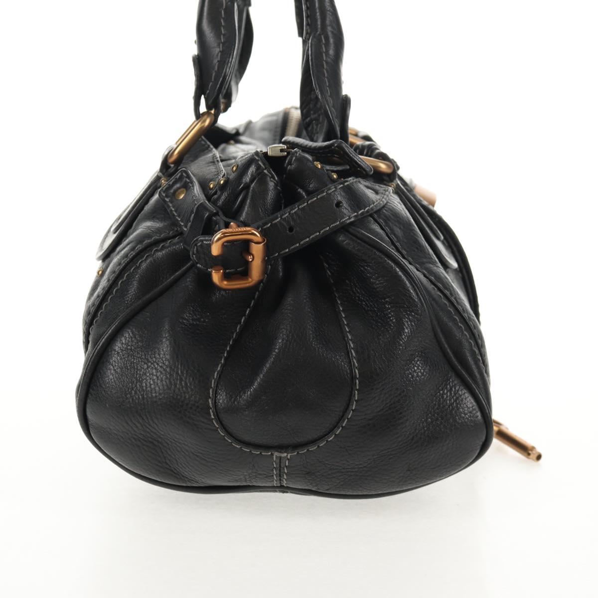 Chloe Paddington Shoulder Bag Leather Black Gold Auth am9291V