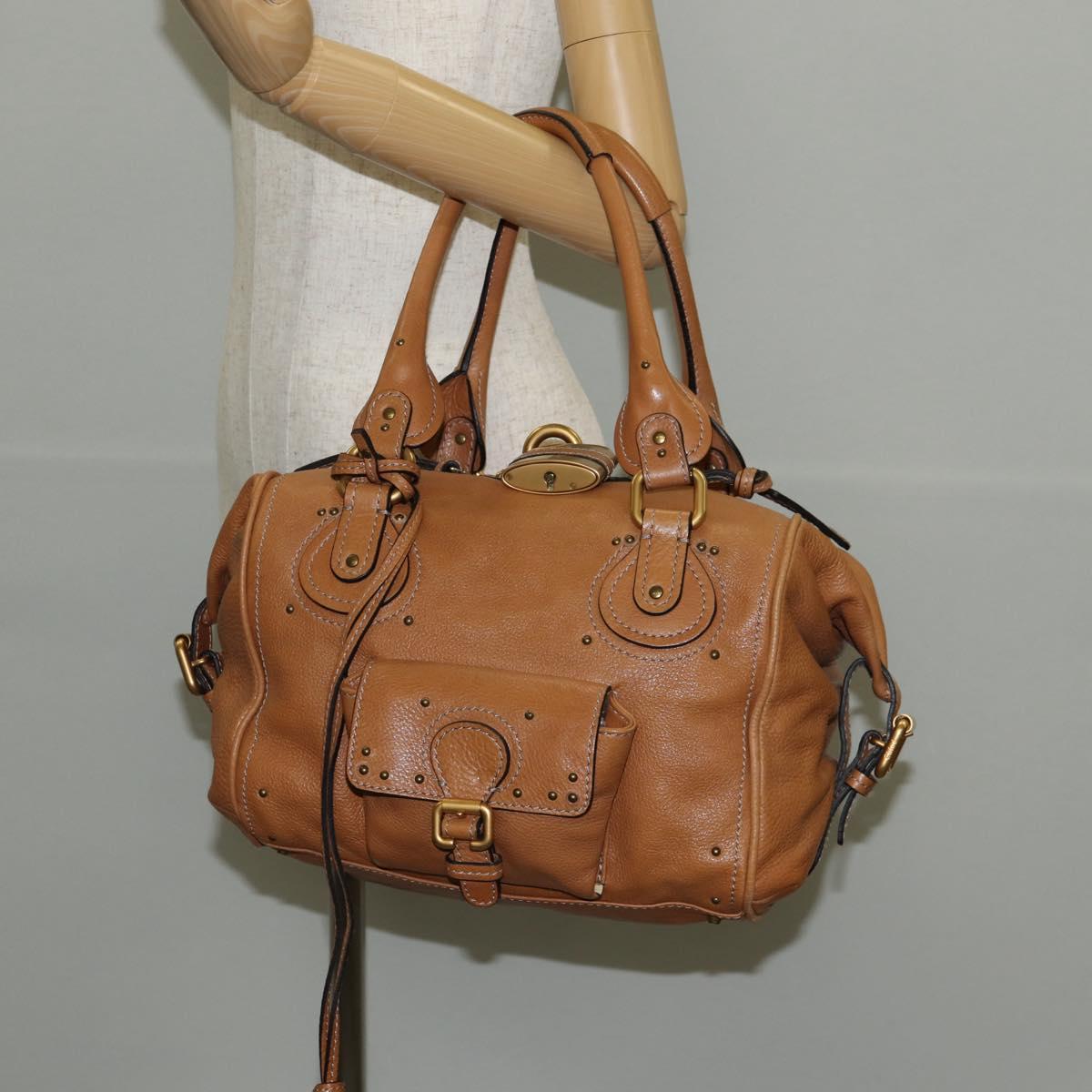 Chloe Paddington Shoulder Bag Leather Brown Gold Auth am9271V
