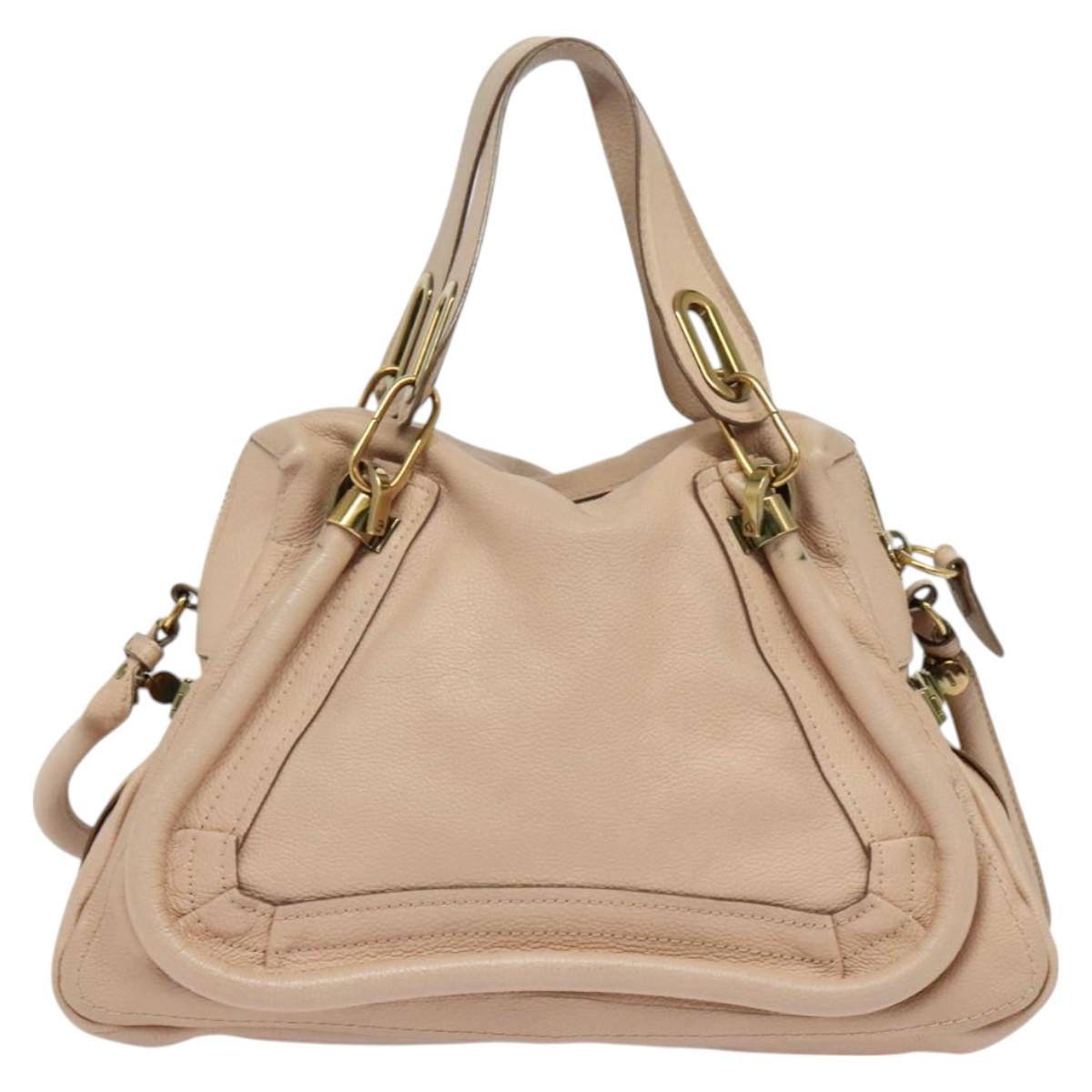 Chloe Paraty Hand Bag Leather 2way Beige Gold Auth 131001