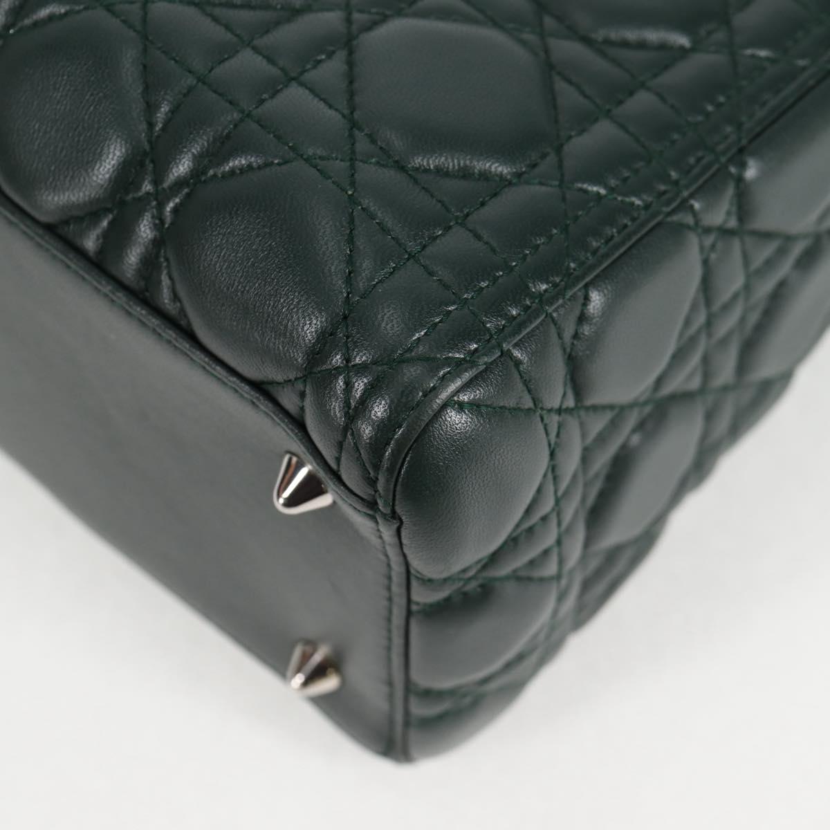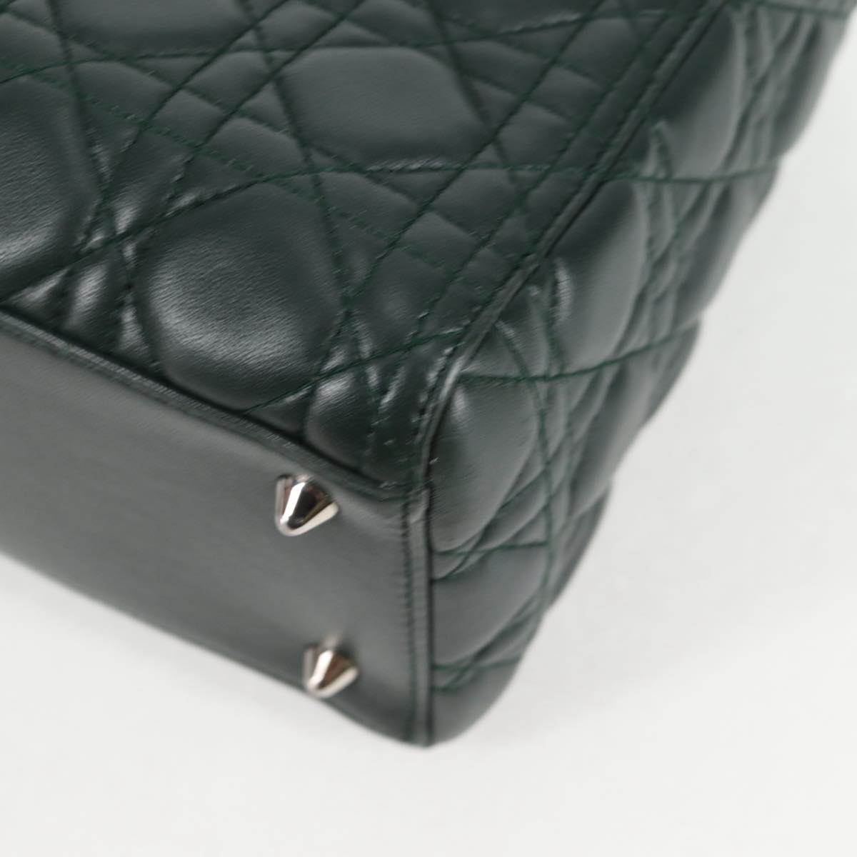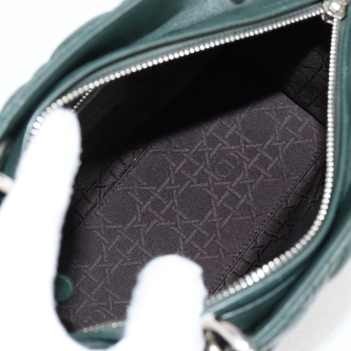 Christian Dior Canage Lady Dior Hand Bag Lamb Skin 2way Green Gold Auth PP653M