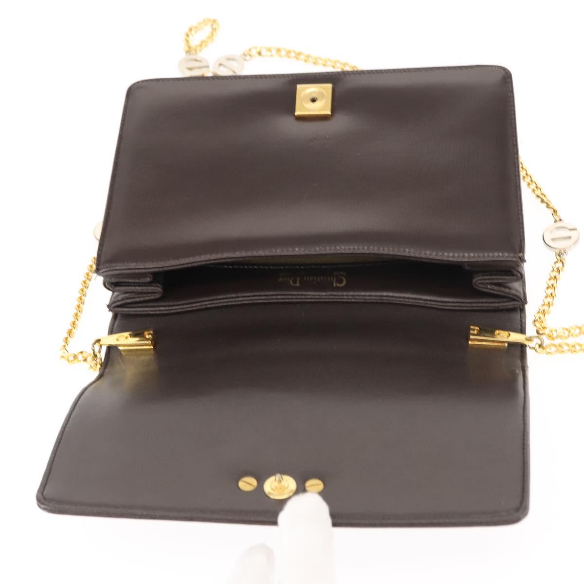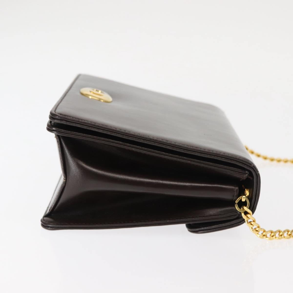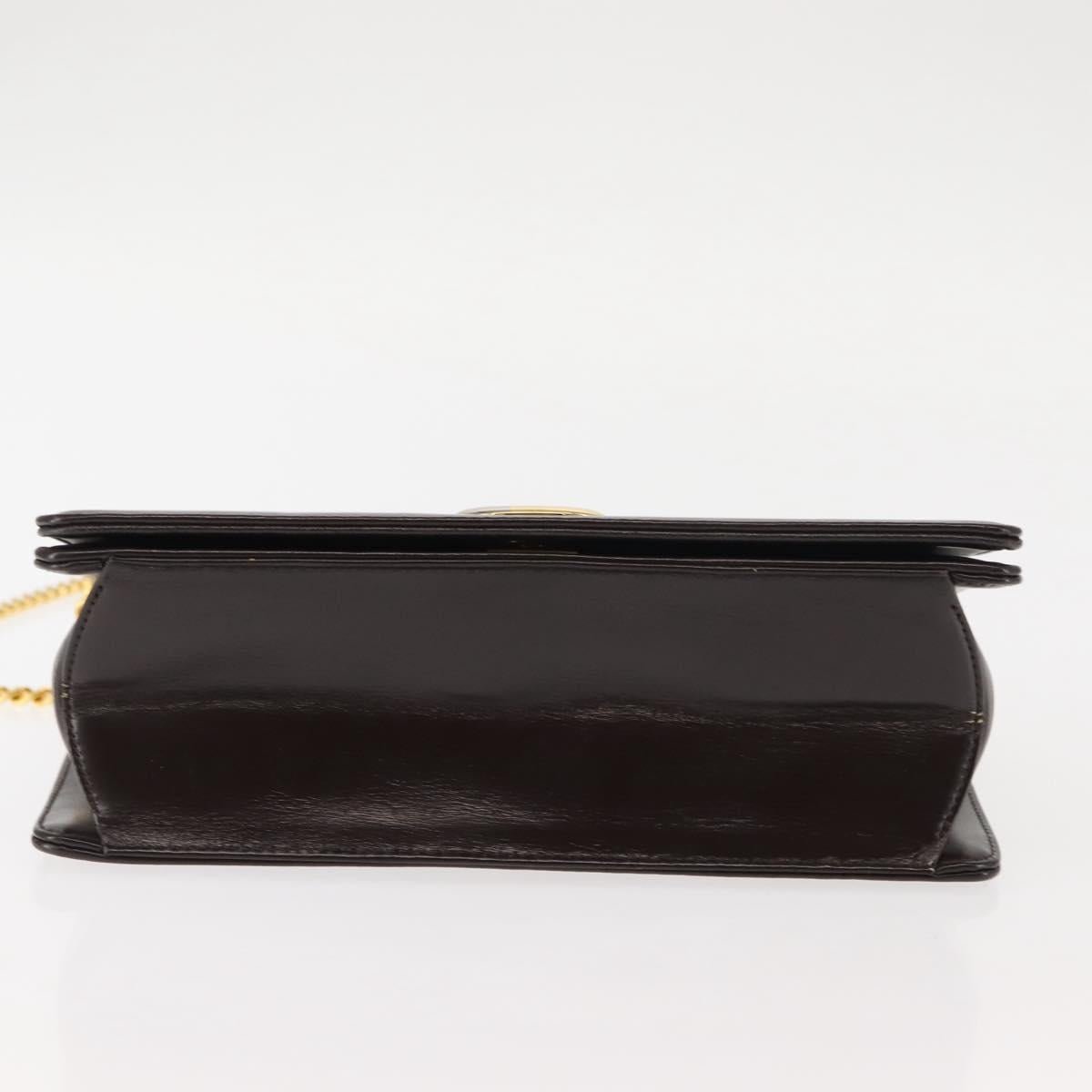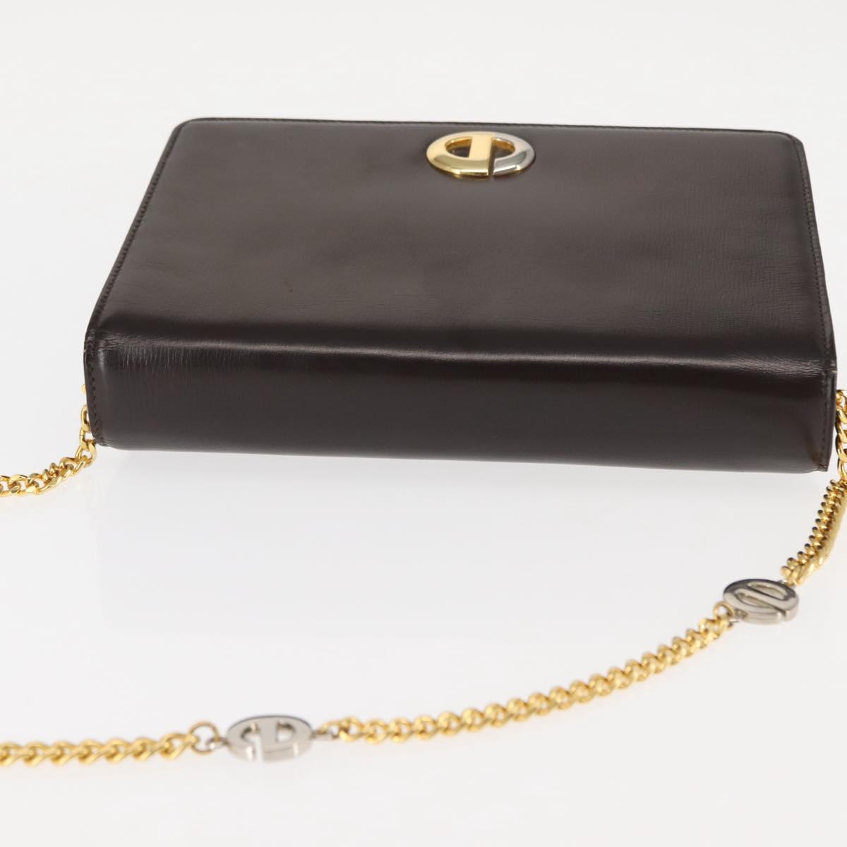 Christian Dior Chain Shoulder Bag Leather Brown Gold Auth fm4872