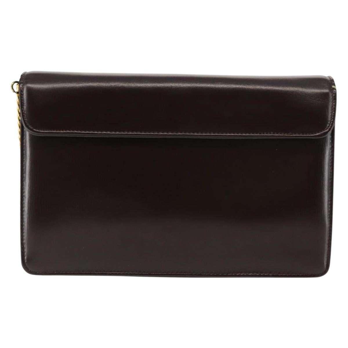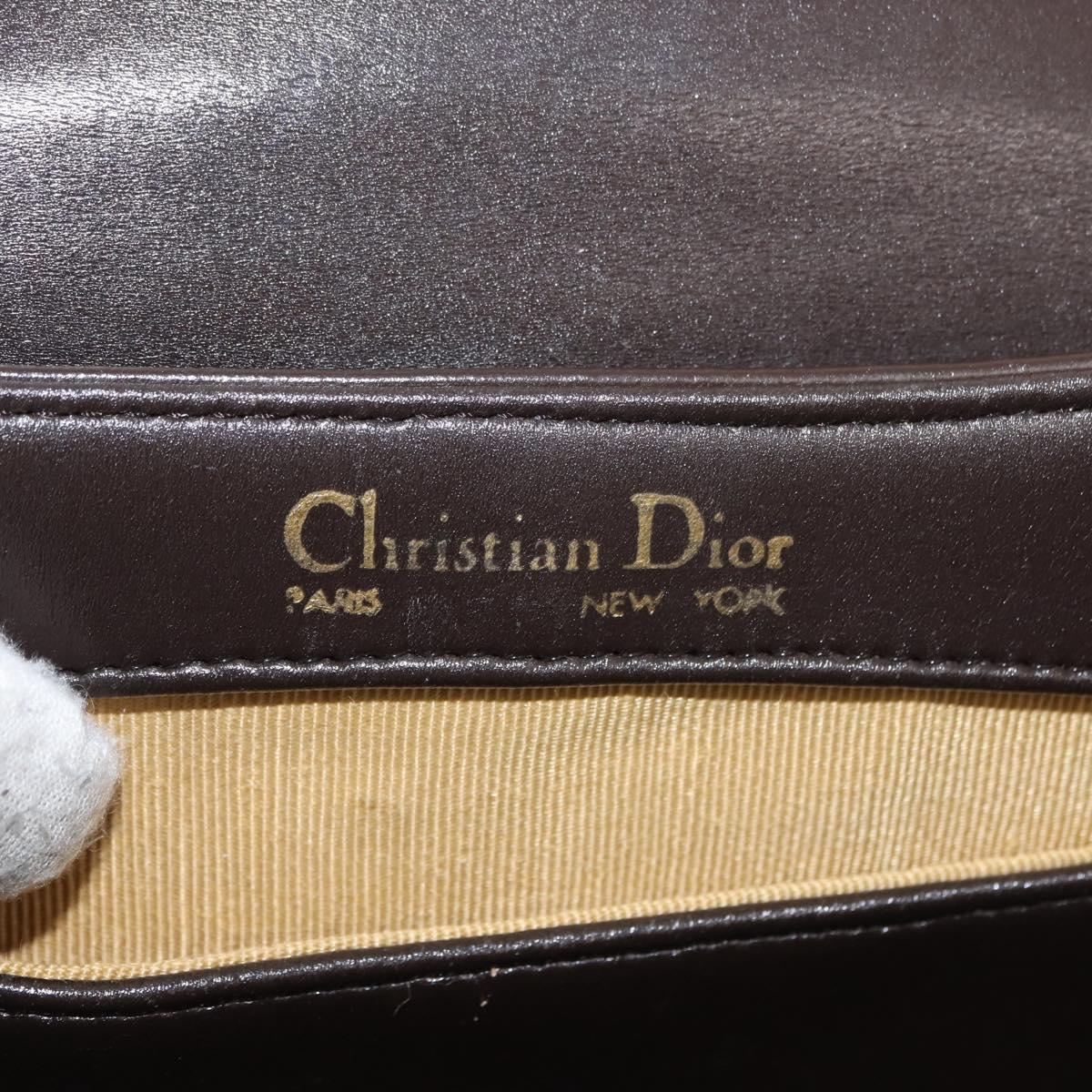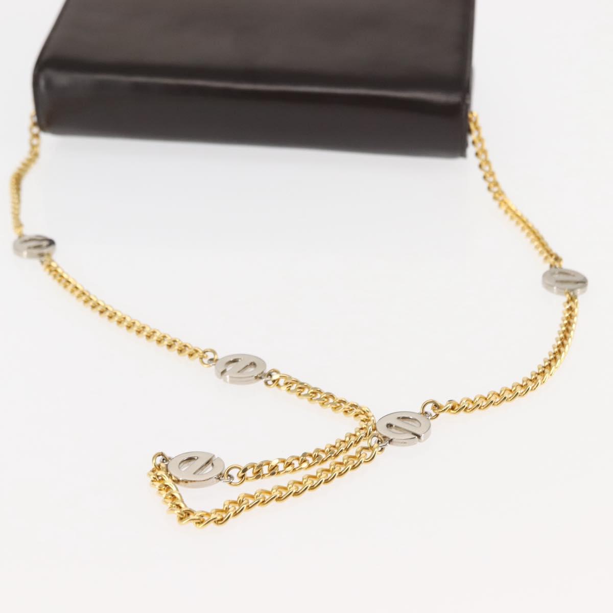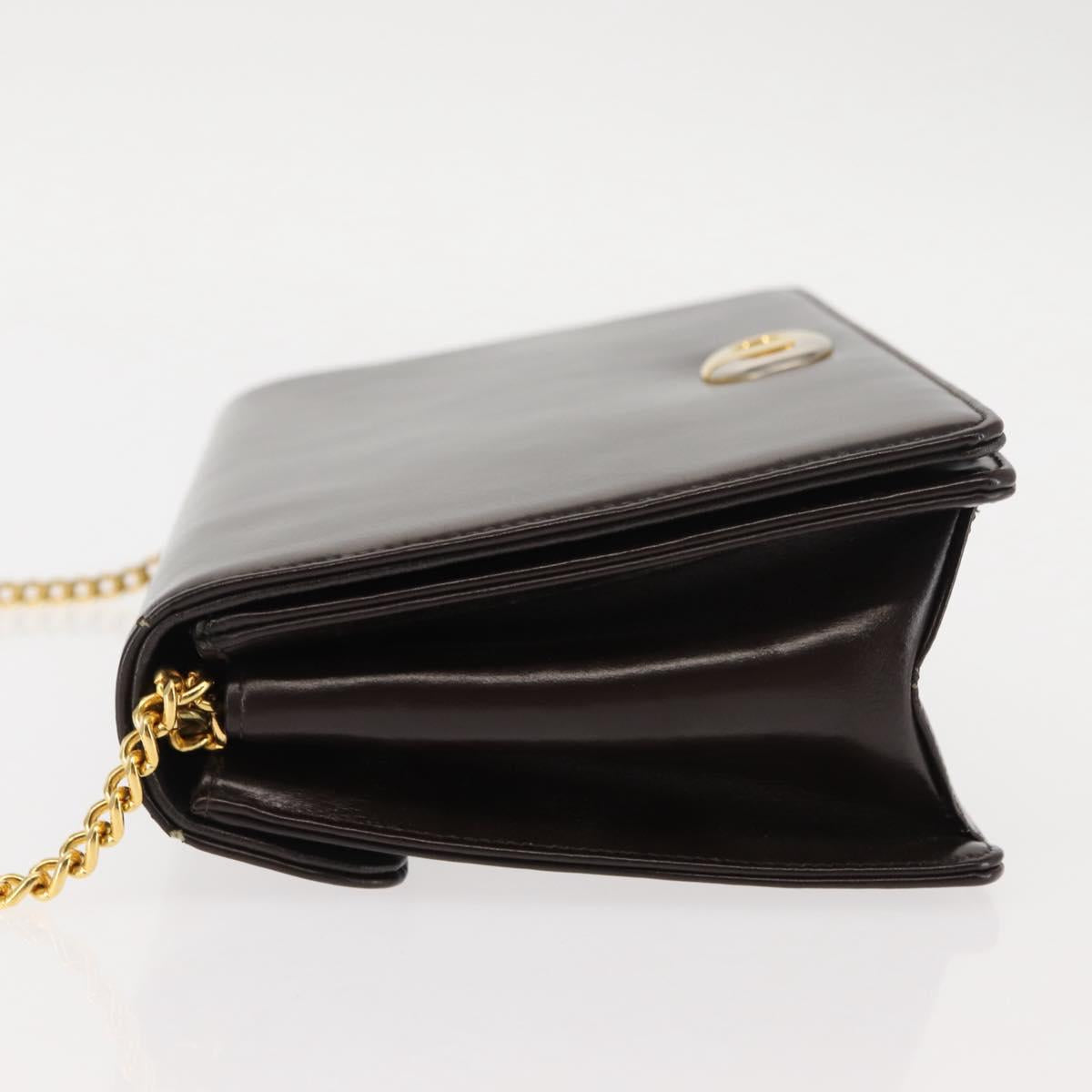 Christian Dior Chain Shoulder Bag Leather Brown Gold Auth fm4872