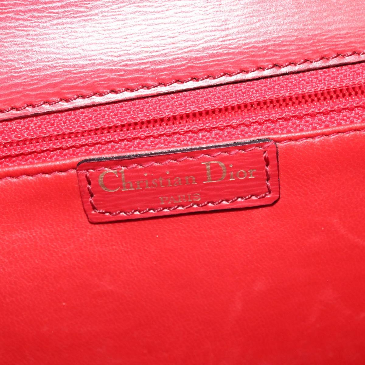 Christian Dior Chain Shoulder Bag Leather Red Gold Auth BA3452