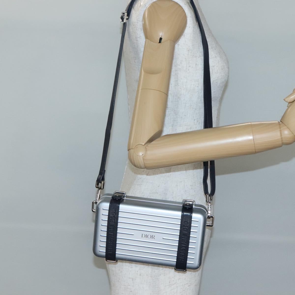 Christian Dior × RIMOWA Personal Clutch Aluminum Alloy Light Blue Auth BA4539