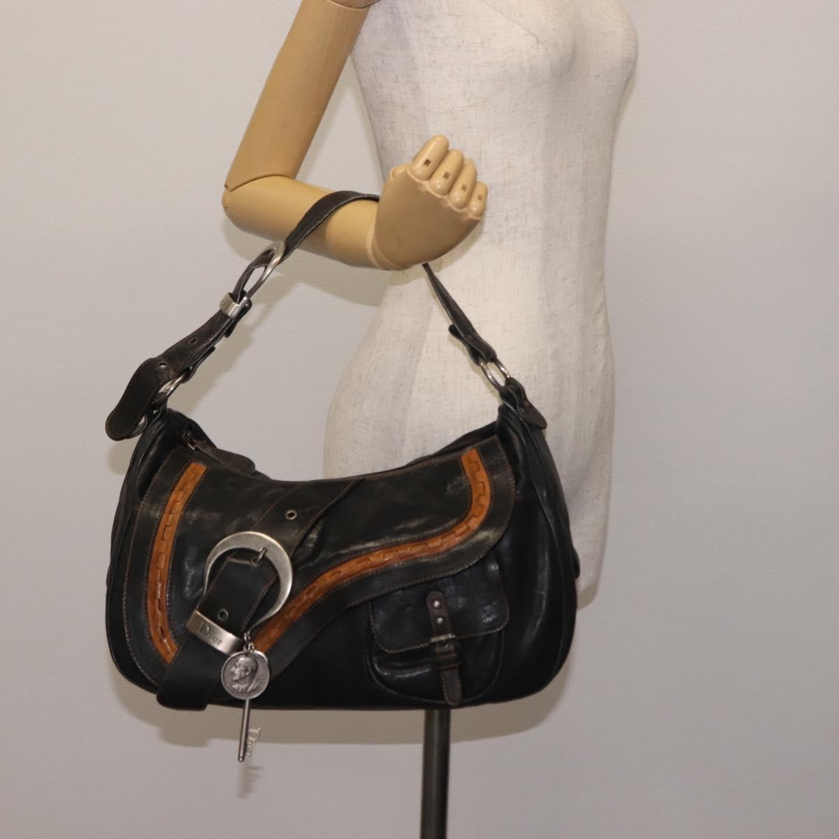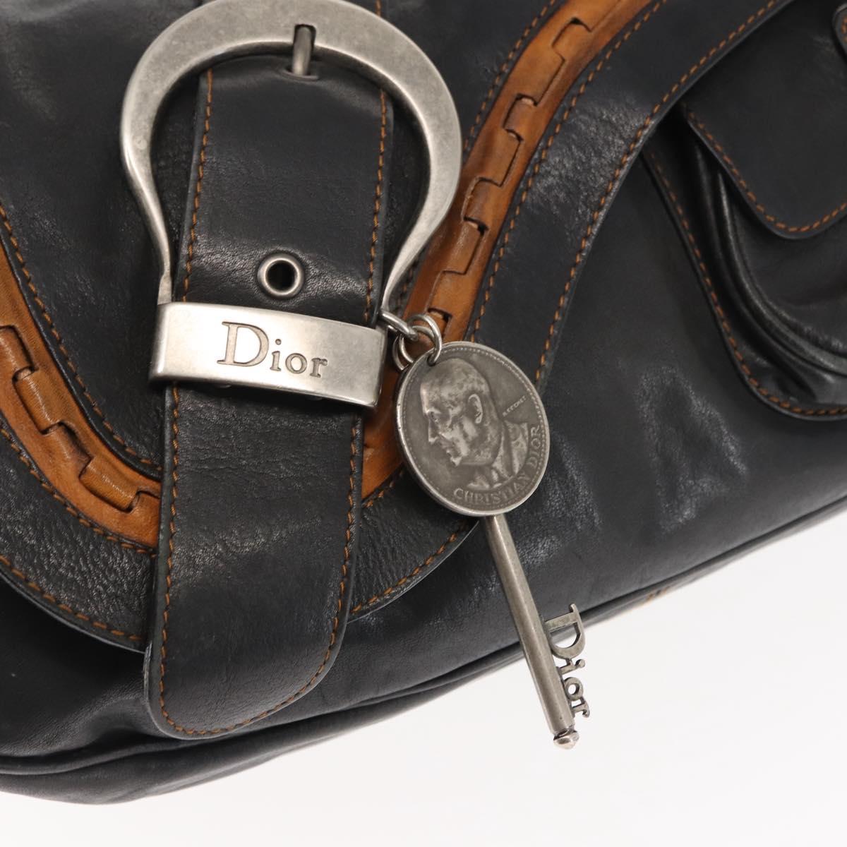 Christian Dior Gaucho Shoulder Bag Leather Black Auth 144647