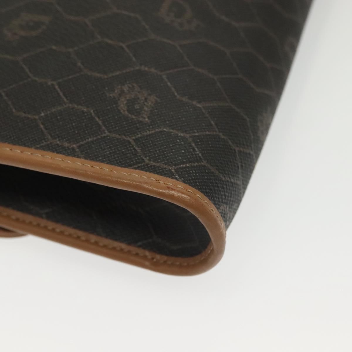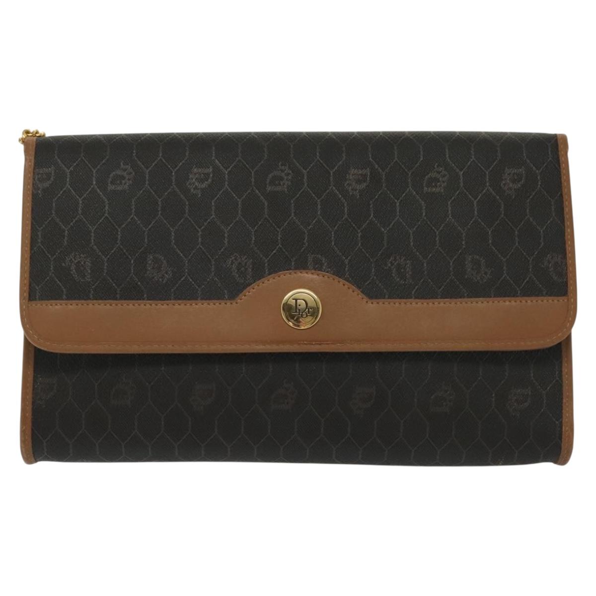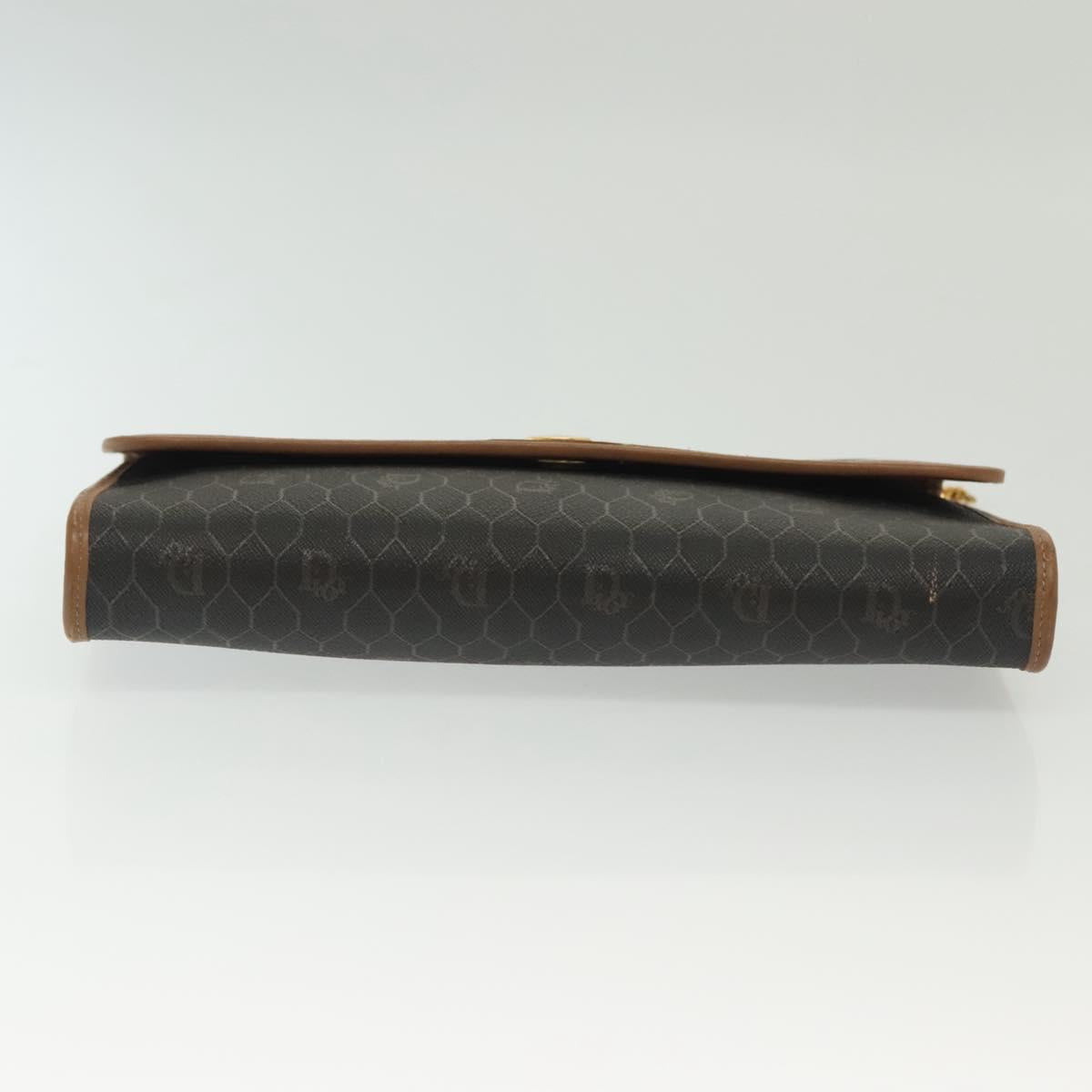 Christian Dior Honeycomb Canvas Chain Shoulder Bag PVC Black Gold Auth BA4863