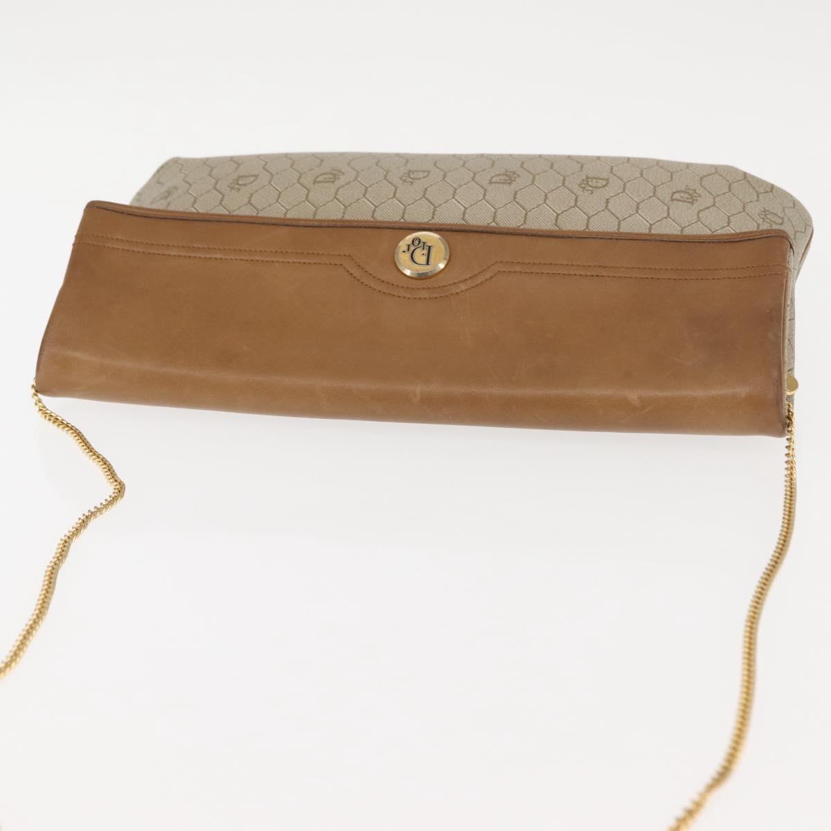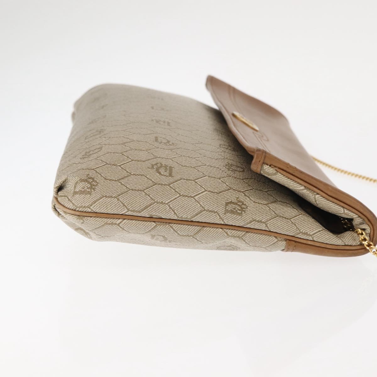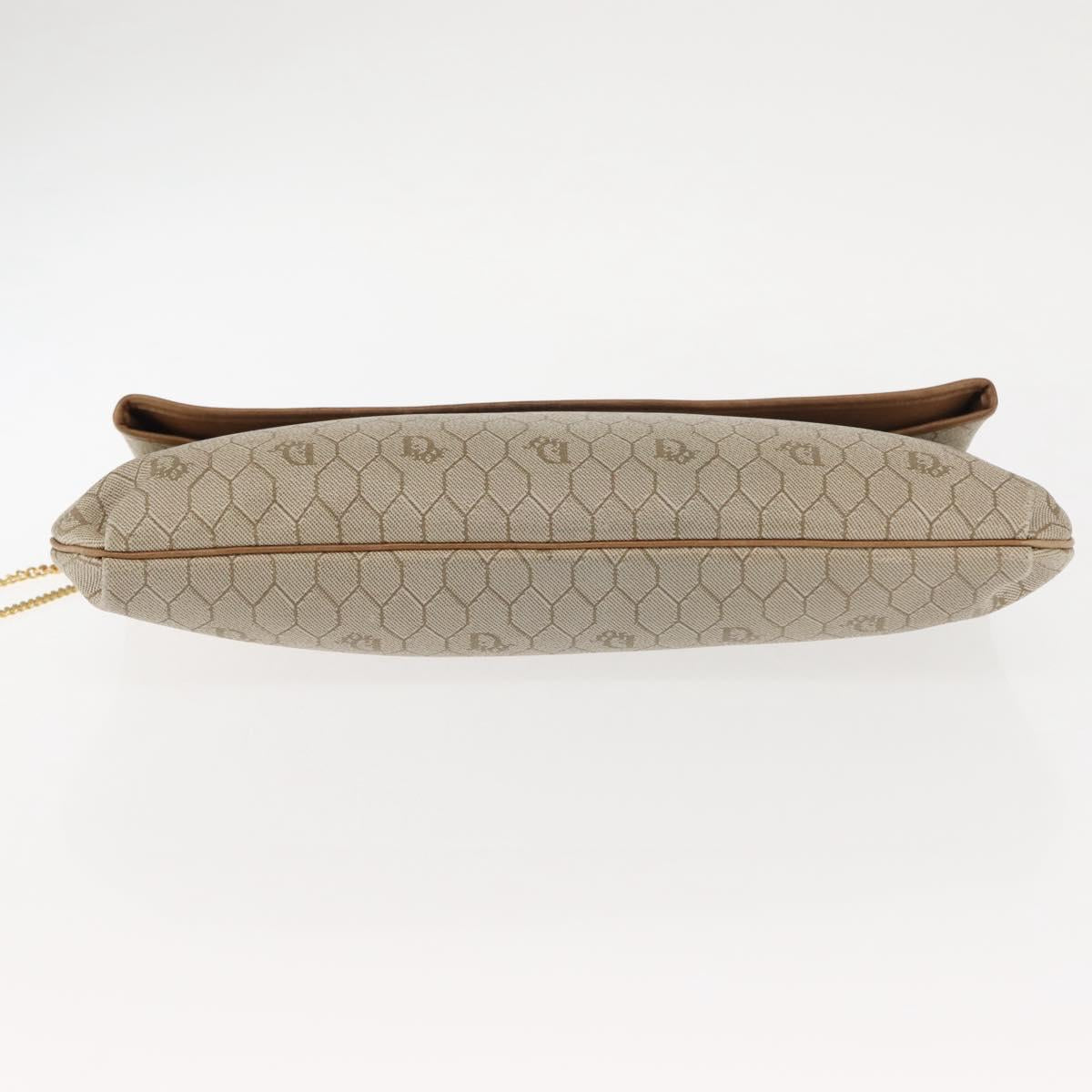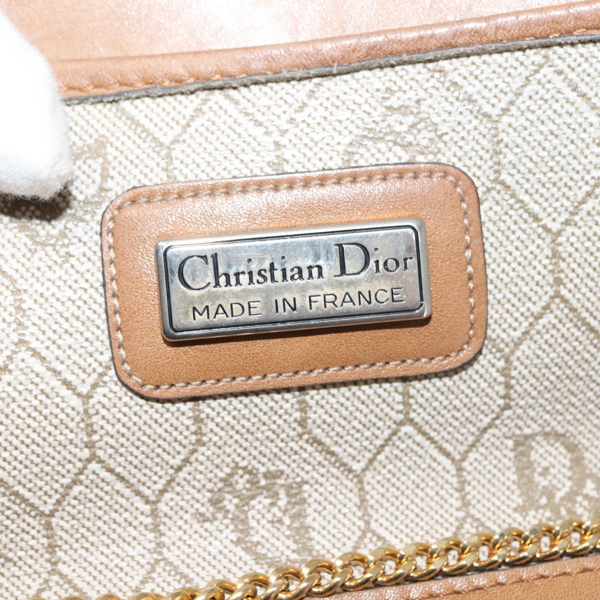 Christian Dior Honeycomb Canvas Chain Shoulder Bag PVC Leather Beige Auth ki6055