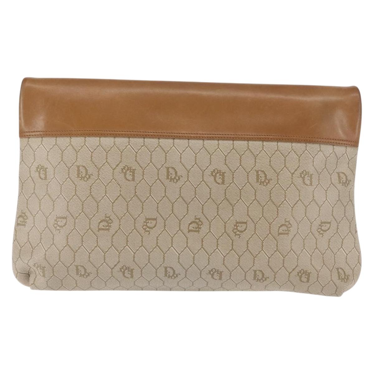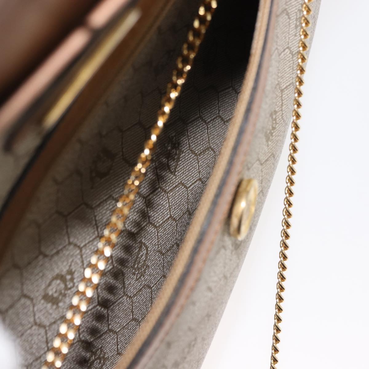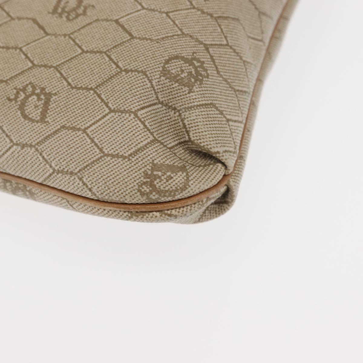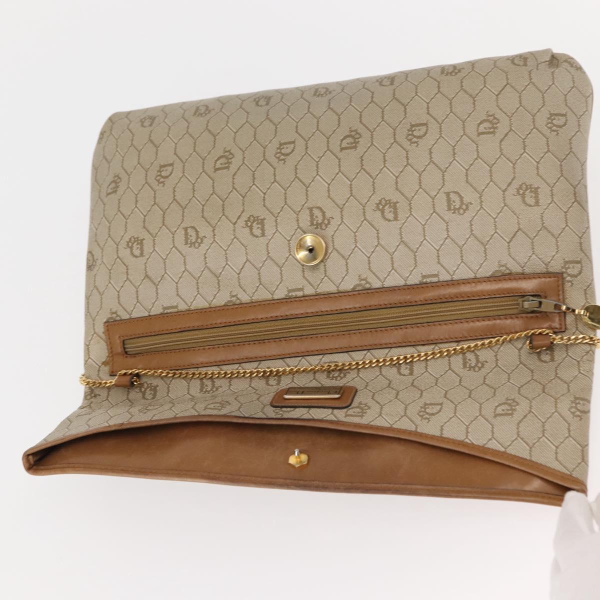 Christian Dior Honeycomb Canvas Chain Shoulder Bag PVC Leather Beige Auth ki6055