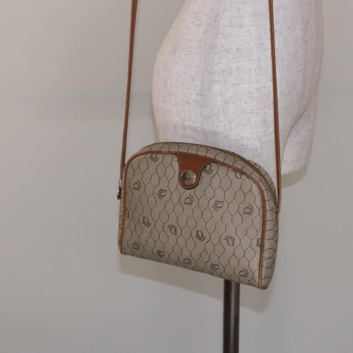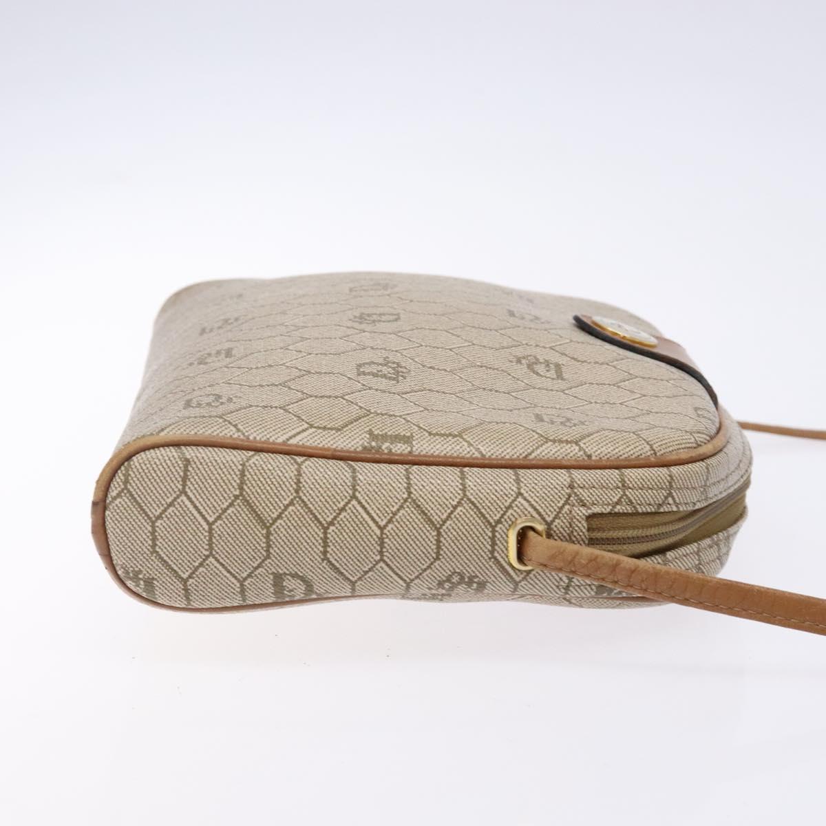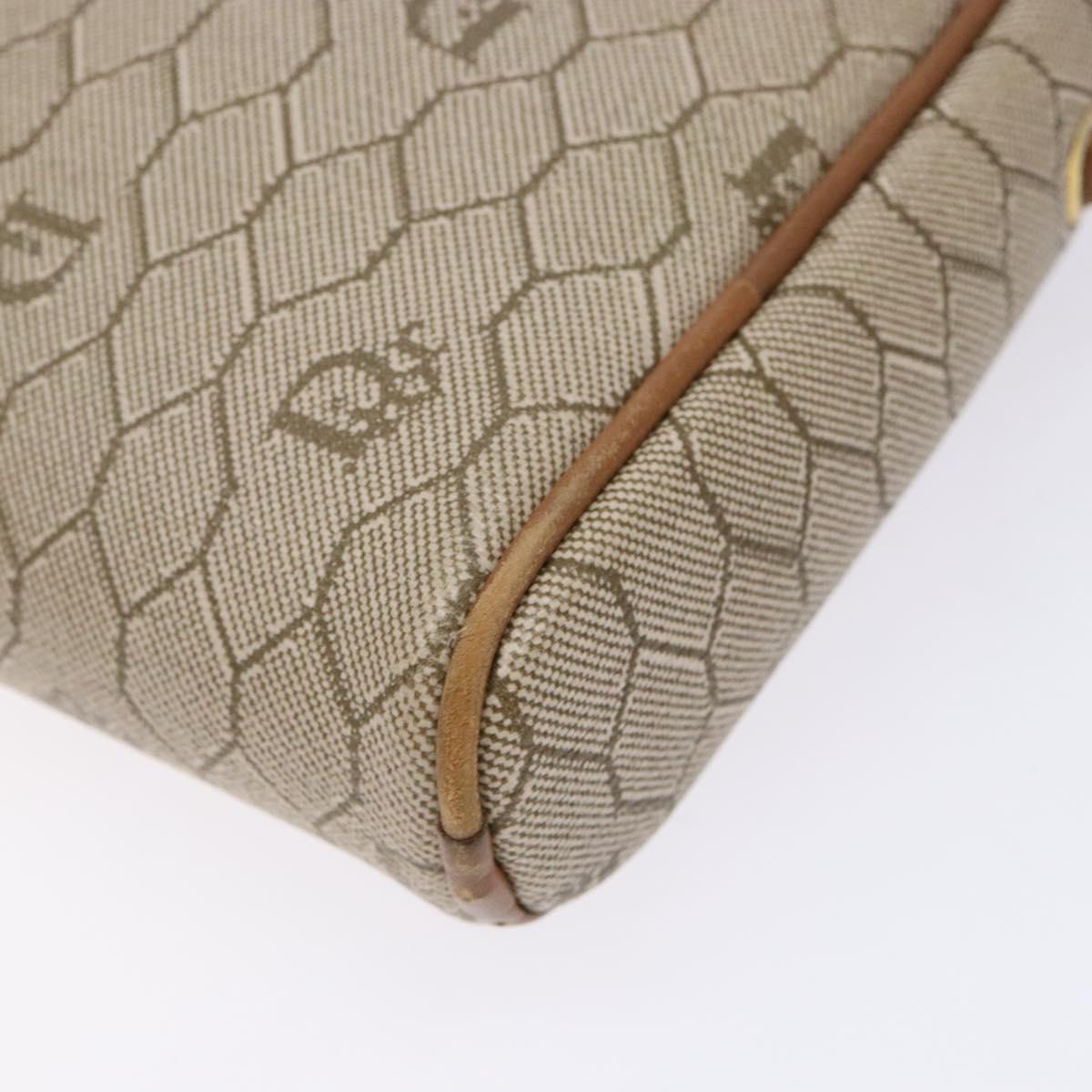 Christian Dior Honeycomb Canvas Shoulder Bag PVC Beige Gold Auth BA5167