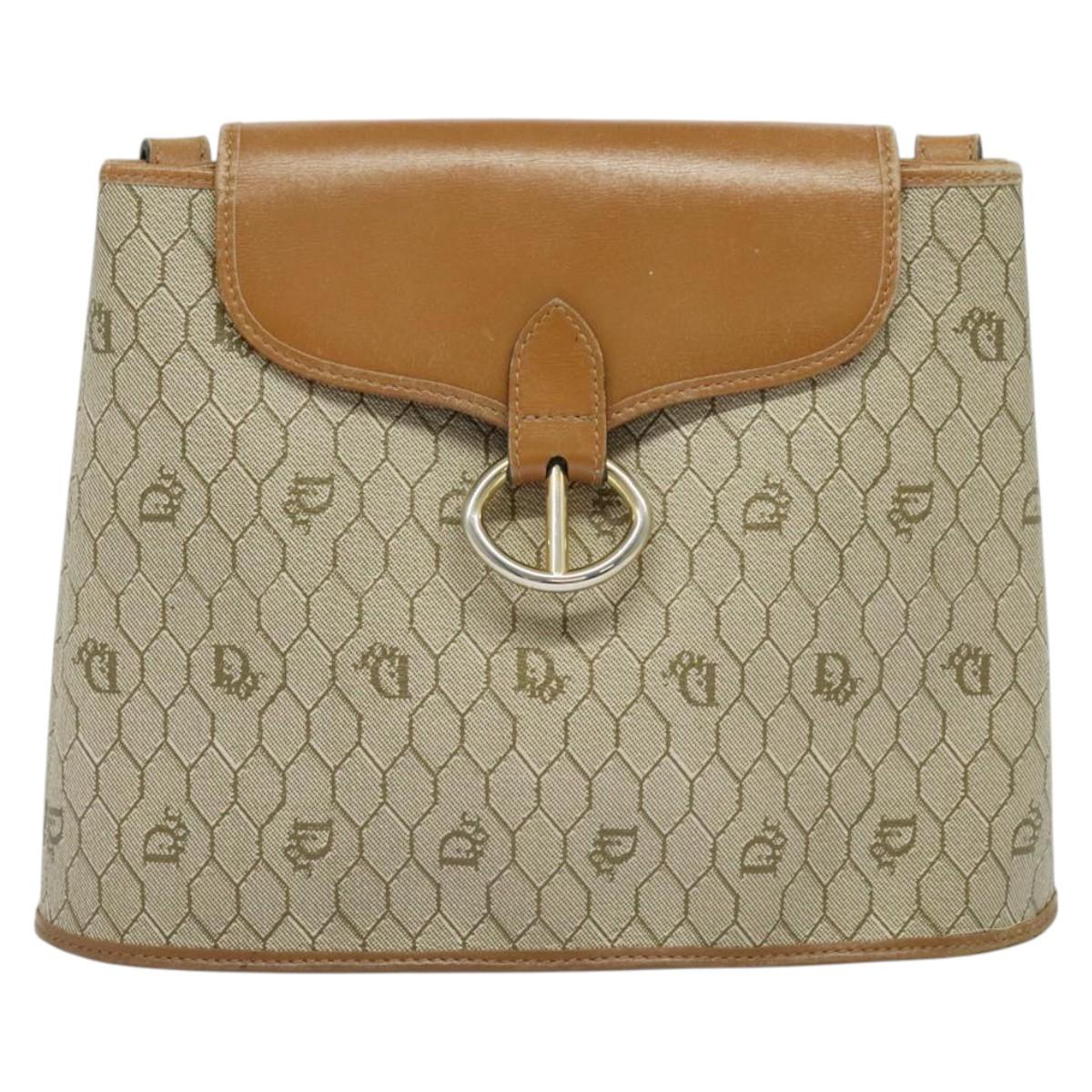 Christian Dior Honeycomb Canvas Shoulder Bag PVC Beige Gold Auth ti3385