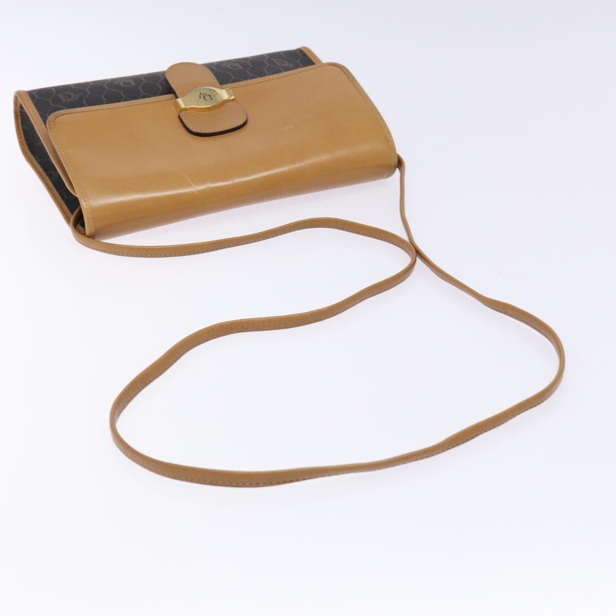 Christian Dior Honeycomb Canvas Shoulder Bag PVC Black Gold Auth BA4862
