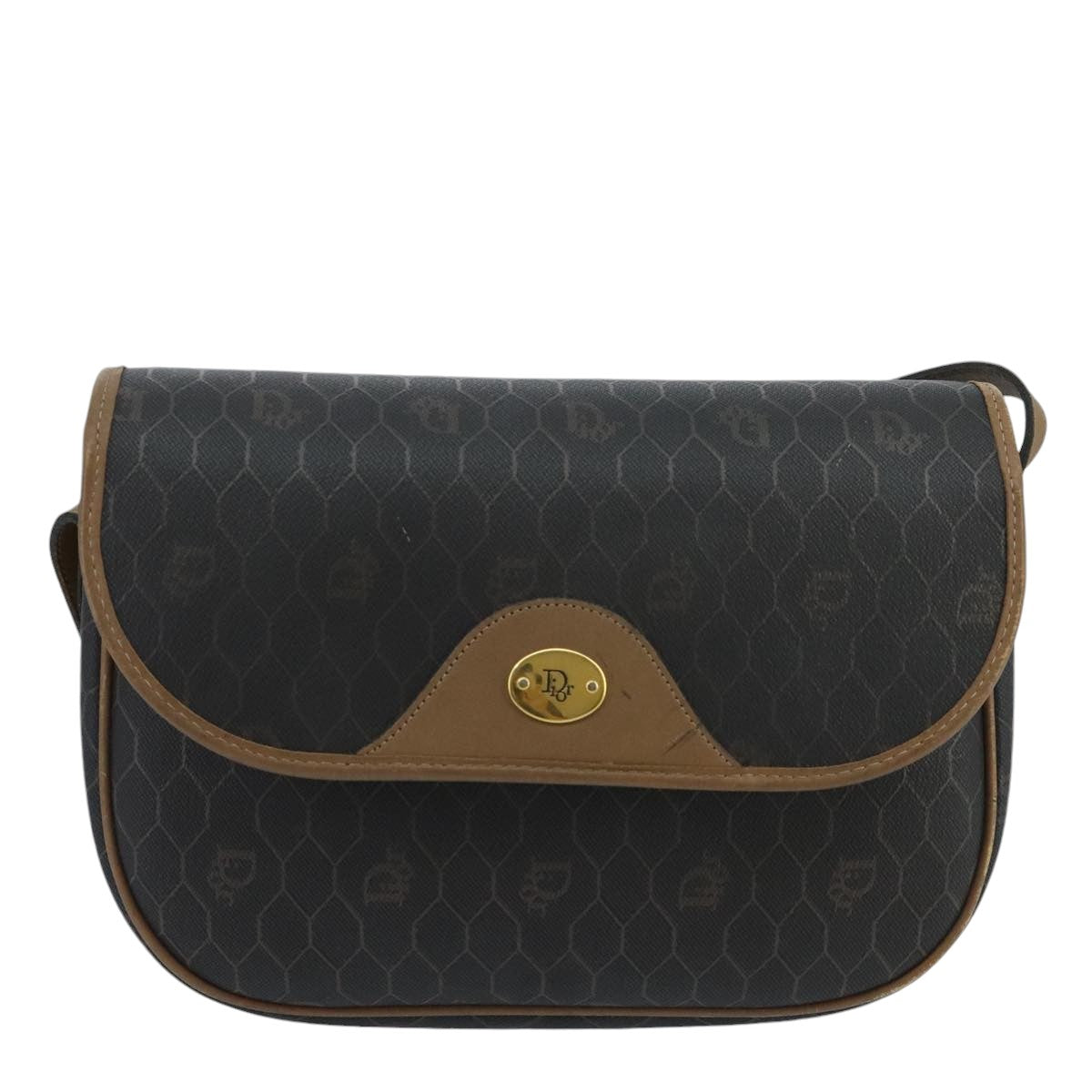 Christian Dior Honeycomb Canvas Shoulder Bag PVC Gold Black Auth 100296