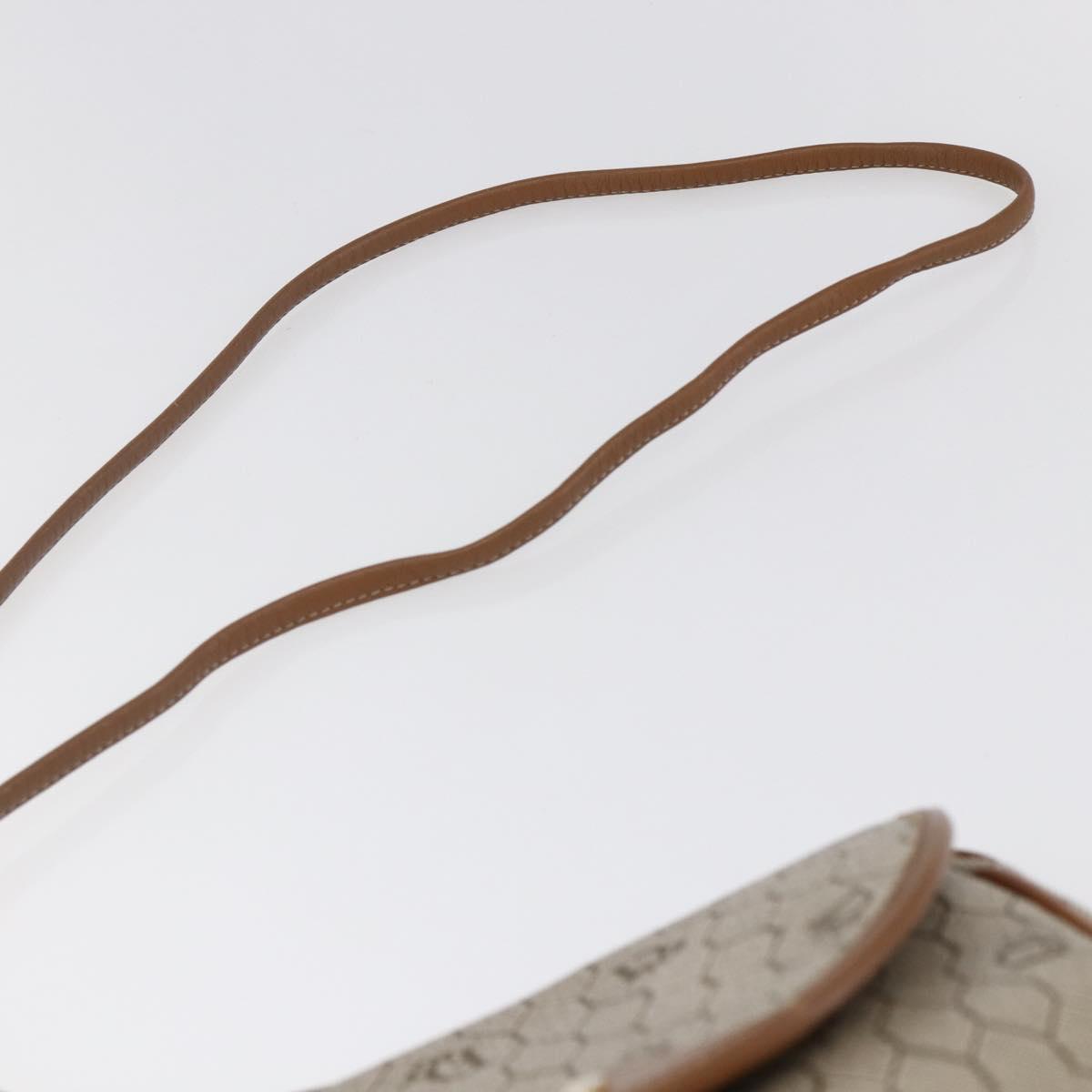 Christian Dior Honeycomb Canvas Shoulder Bag PVC Leather Beige Auth BA6819
