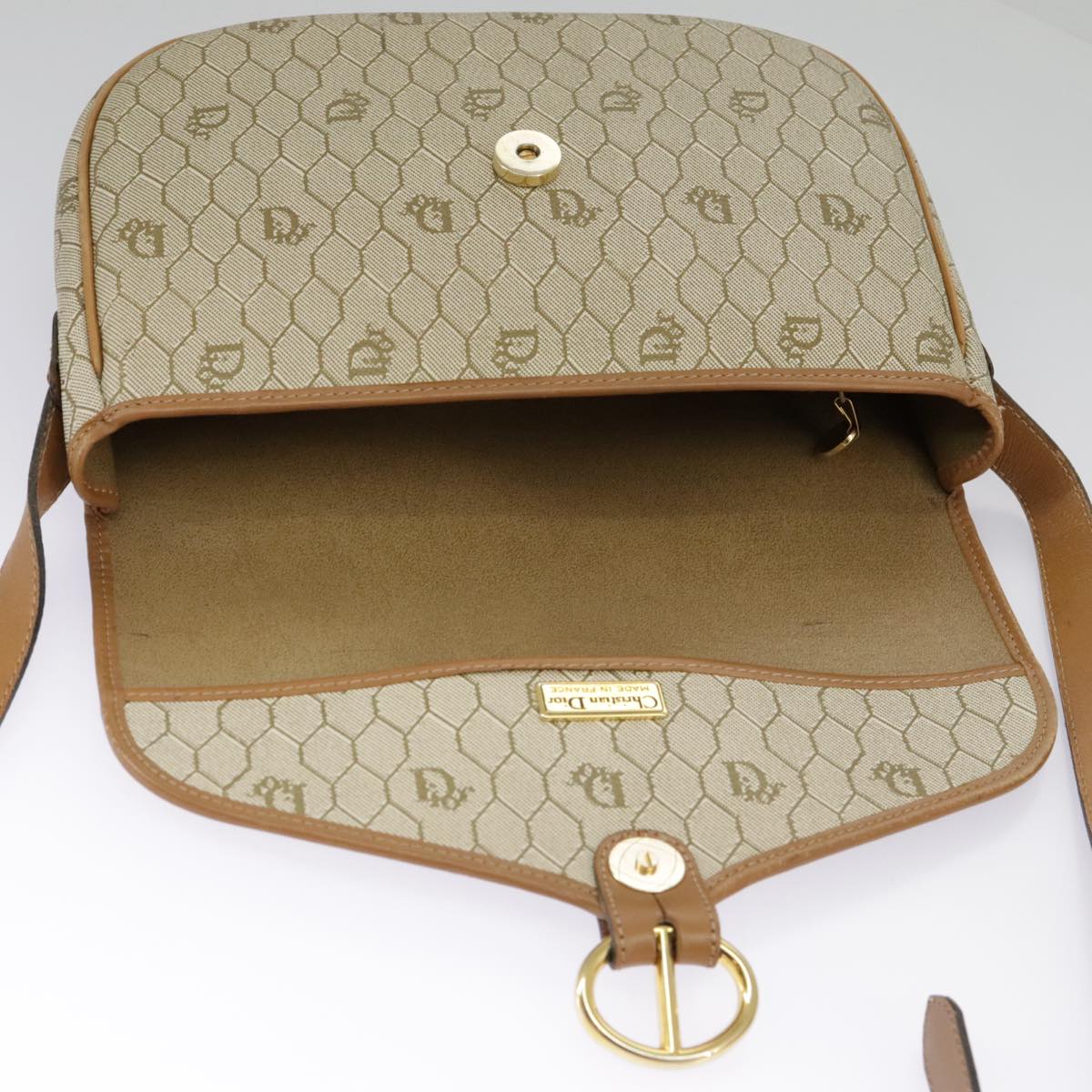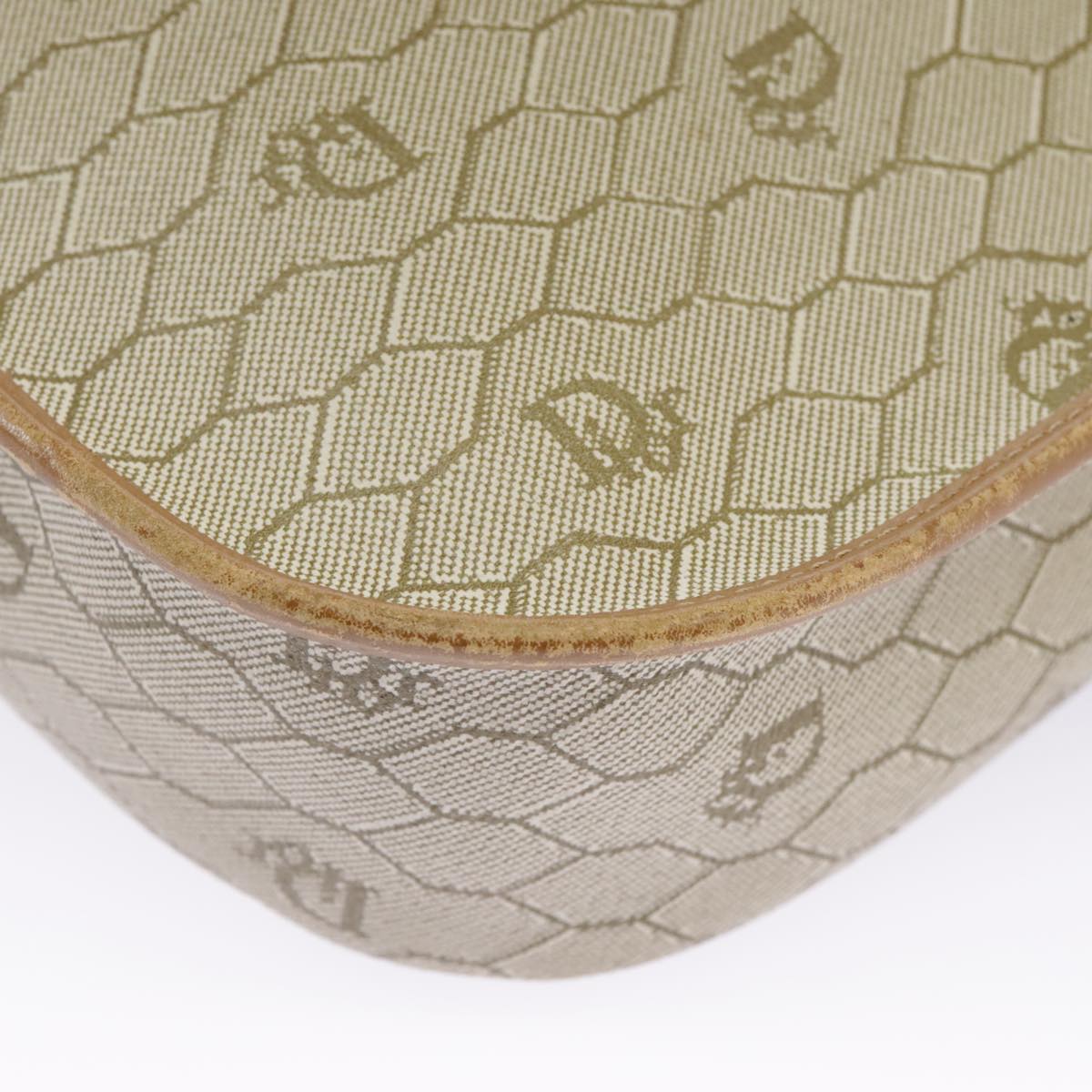 Christian Dior Honeycomb Canvas Shoulder Bag PVC Leather Beige Gold Auth ki5029