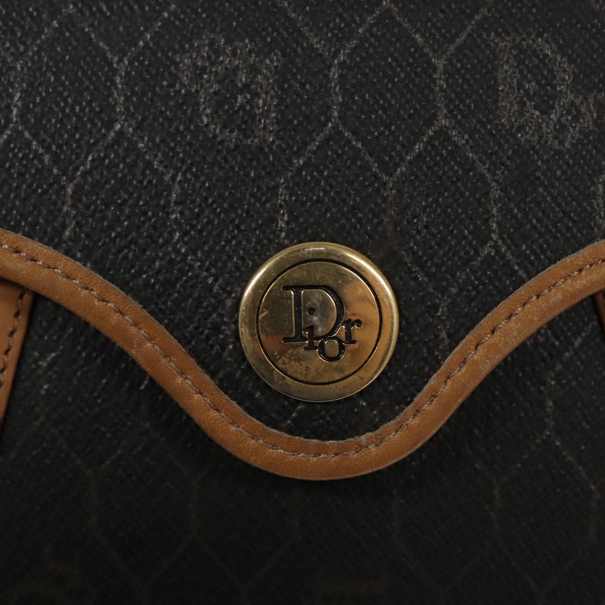 Christian Dior Honeycomb Canvas Shoulder Bag PVC Leather Black Auth ti2422
