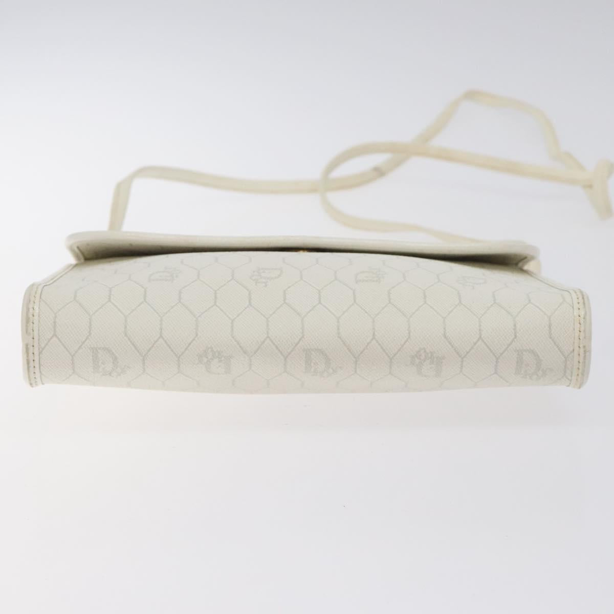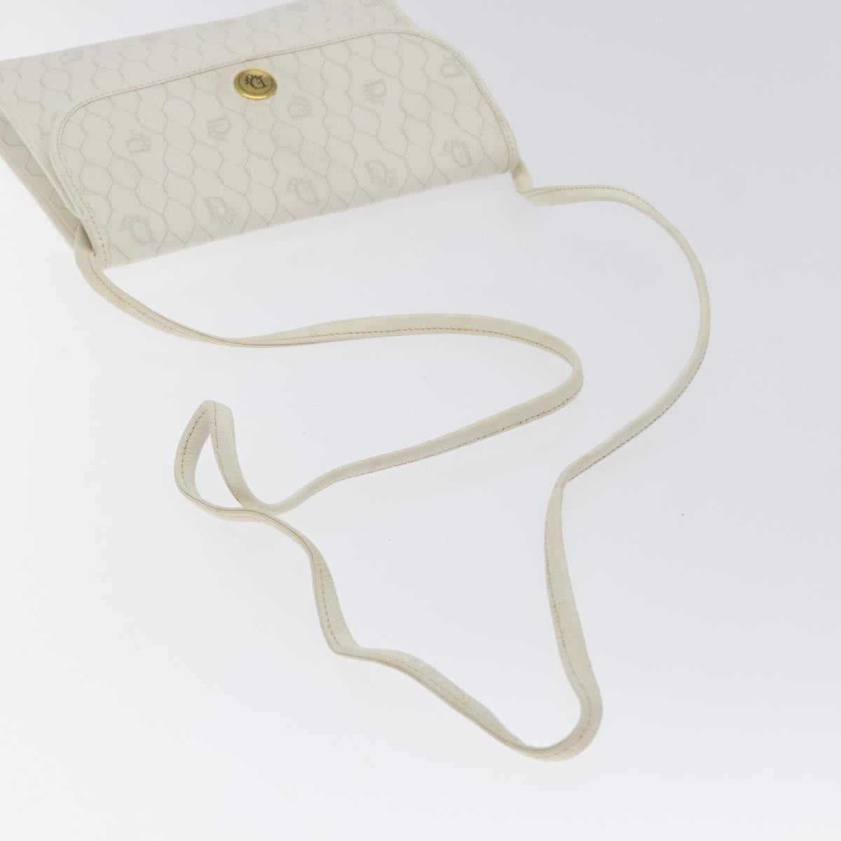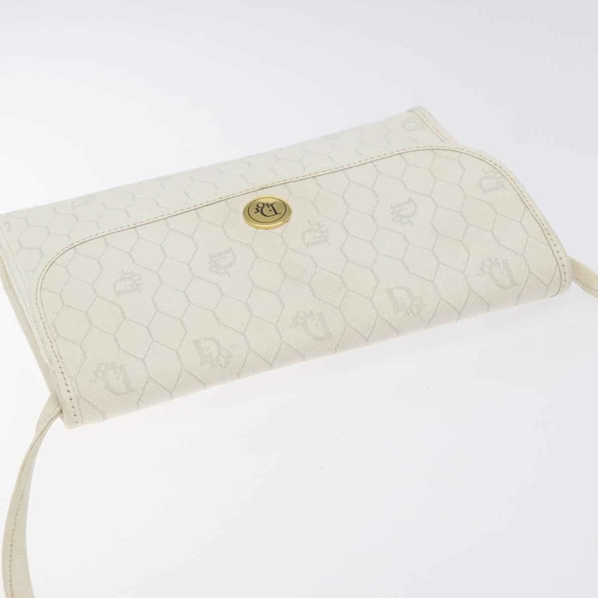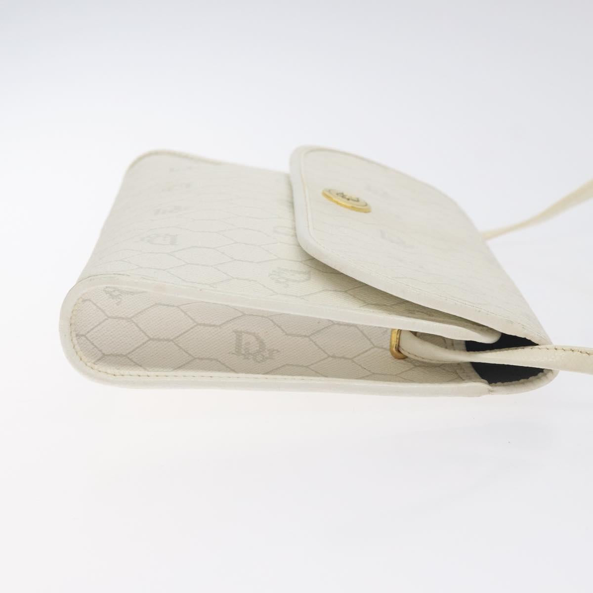 Christian Dior Honeycomb Canvas Shoulder Bag PVC White Gold Auth BA3542